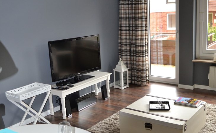 At the heart of the flat you will find a bedroom with a comfortable box-spring bed and a living/bedroom with a pull-out sofa bed that offers sleeping accommodation of 180x200 cm. For your self-catering, the flat is equipped with a fitted kitchen that leaves nothing to be desired: A ceramic hob, a filter coffee machine, a kettle and a dishwasher make preparing meals a pleasure. A washing machine for your sole use is also available for your convenience.