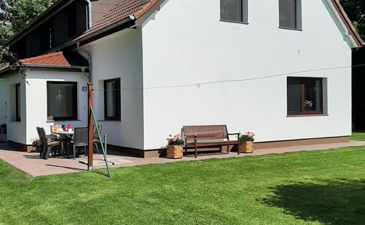 The generous and well-tended garden will entice you outside onto the 2500m² site. It is fully enclosed and is for your own exclusive use. You can enjoy meals outdoors on the terrace with an awning. There is a charcoal grill for preparing meals. Children can look forward to a swing and a gym corner. You can enjoy the sun on the separate seating areas. There is plenty of parking space right by the house.