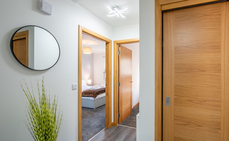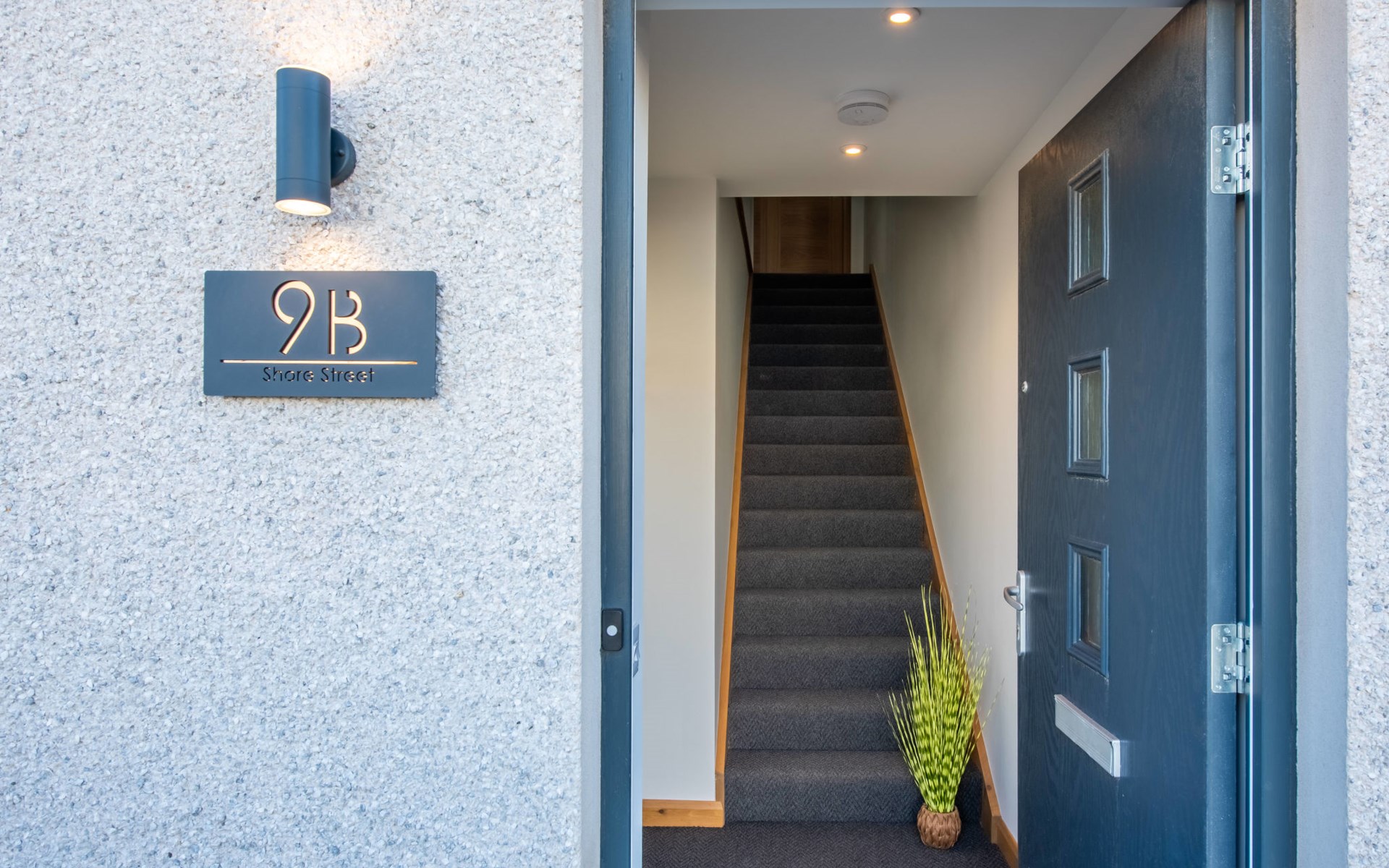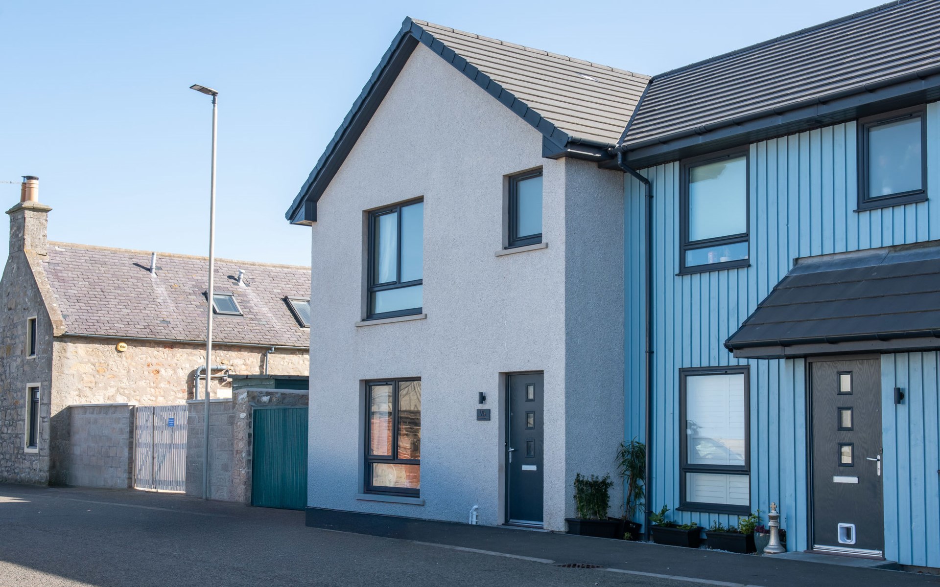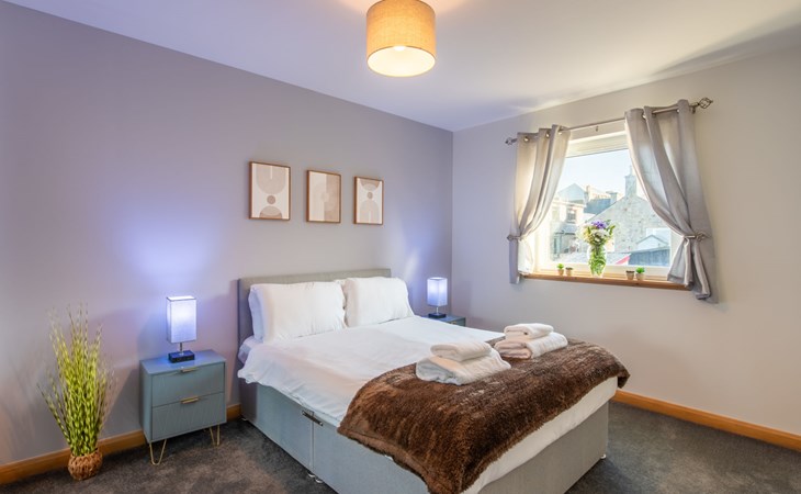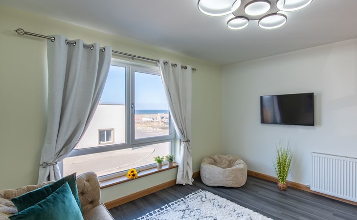Modern apartment block "Shore Street", 2 storeys, built in 2023. In the centre of Lossiemouth, in a central position in the residential district, 30 m from the sea, 400 m from the beach. Parking at the house. Shop, grocery 300 m, supermarket 180 m, restaurant, bar 90 m, bus stop "James Square" 200 m, railway station "Elgin" 10 km, sandy beach "Lossiemouth Beach" 350 m. Marina 90 m, golf course (18 hole) 100 m, tennis 50 m. Please note: Additional accommodations can be booked.