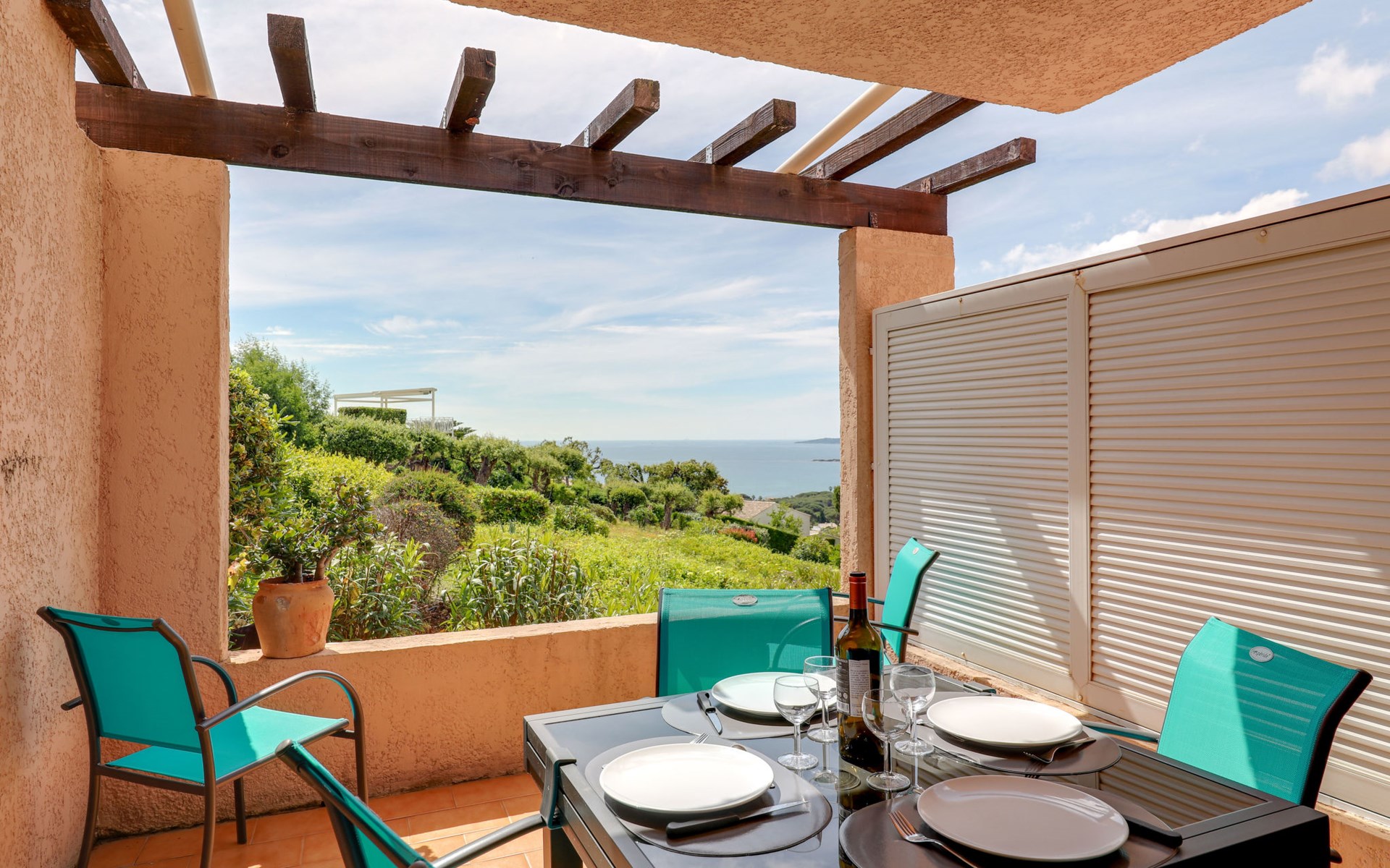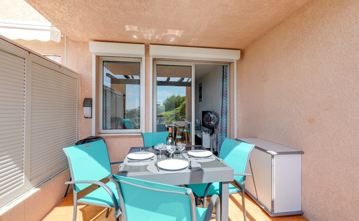 Residence "Les Coteaux de la Nartelle". Outside the resort, 5 km from the centre of Ste Maxime, in a sunny, elevated position on a slope, 400 m from the sea, 400 m from the beach. For shared use: park 10 ha with plants and trees, swimming pool (6 m diameter, depth 140 - 240 cm, seasonal availability: 01.Jun. - 30.Sep.). Table tennis, boccia. Stepped path to the house. Parking (limited number of spaces). Shop 5 km, supermarket 2.5 km, shopping centre 5 km, restaurant 400 m, bus stop 700 m, railway station "Saint-Raphael TGV" 20 km, sandy beach "Plage des Elephants" 400 m (small), thermal baths "ThalassothĂ©rapie Les Issambres" 7 km. Sports harbour 4 km, golf course (18 hole) 5 km, tennis 3 km. Nearby attractions: Aqualand waterpark 6 km, Azur Park attractions 16 km, Saint-Tropez/Ramatuelle 18 km, Port-Grimaud 13 km, Gorges du Verdon 95 km, Navette / shuttle boat St-Tropez 15min 4 km. Hiking paths: Massif des Maures 5 km, Massif de l'Esterel 25 km. Please note: car recommended, no lift. Residence with electric gates. The keysâ handover takes place by the agency Interhome in Sainte-Maxime, 5 km. Additional accommodations can be booked.