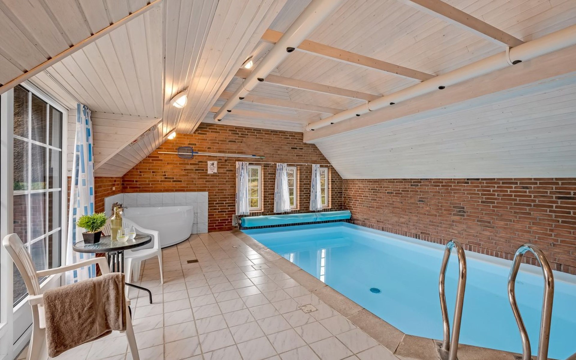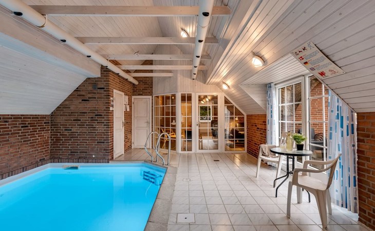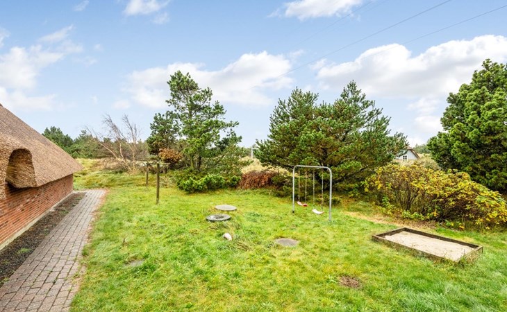 Single-family house, built in 1992. 700 m from the sea. Private: natural state property 2'001 m2, indoor pool (3 x 5 m, 1'8.5 m2, depth 140 - 140 cm). Children's playground (swing). In the house: sauna, washing machine, tumble dryer. Parking at the house. Grocery 6 km. Golf course 7 km. The owner does not accept any youth groups.
