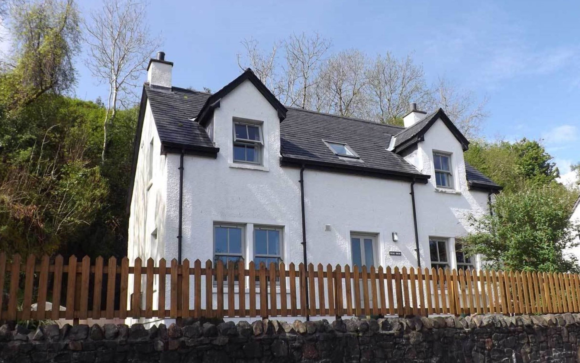 Portree 55 km from Kyle of Lochalsh: Large, modern cottage "Staffin Road", detached. In the centre of Portree, 500 m from the sea. For shared use: garden, parking (for 2 cars) at the house. E-charging station. Shop, grocery, restaurant, bar, café, bus stop 400 m, railway station "Kyle of Lochalsh" 55 km, ferry "Uig" 23 km. Golf course (18 hole) 20 km. Nearby attractions: White Wave Activities 30 km, Dunvegan Castle 35 km, Talisker Whisky Distillery 28 km, Kyle of Lochalsh - Skye Bridge 55 km.