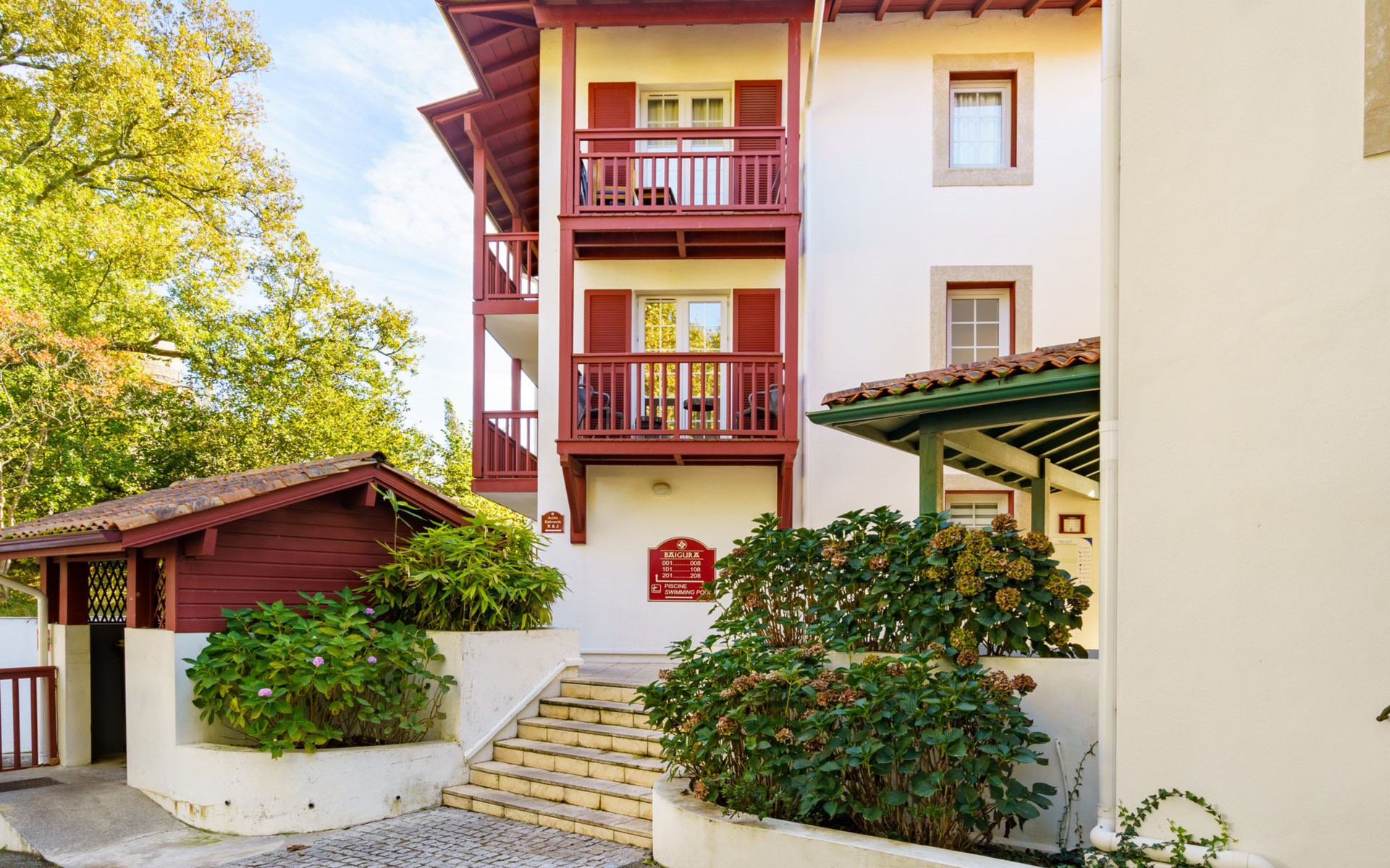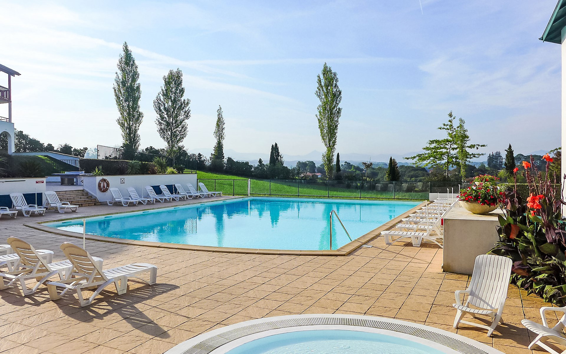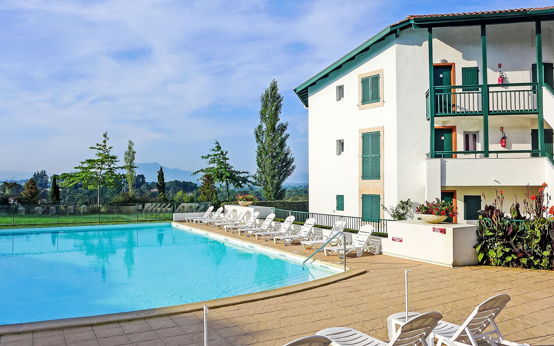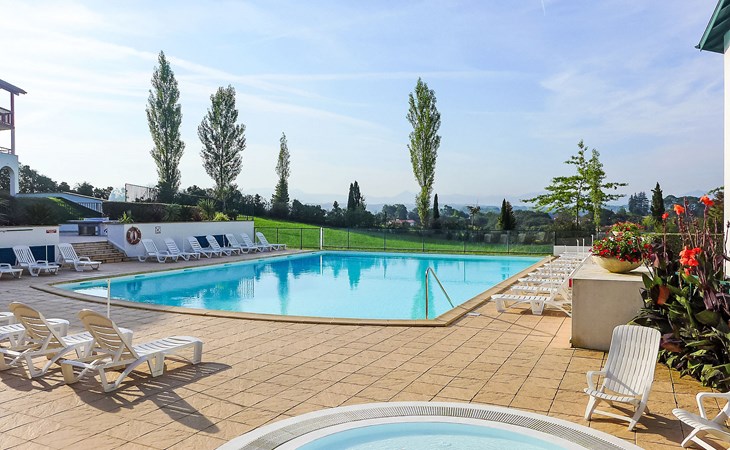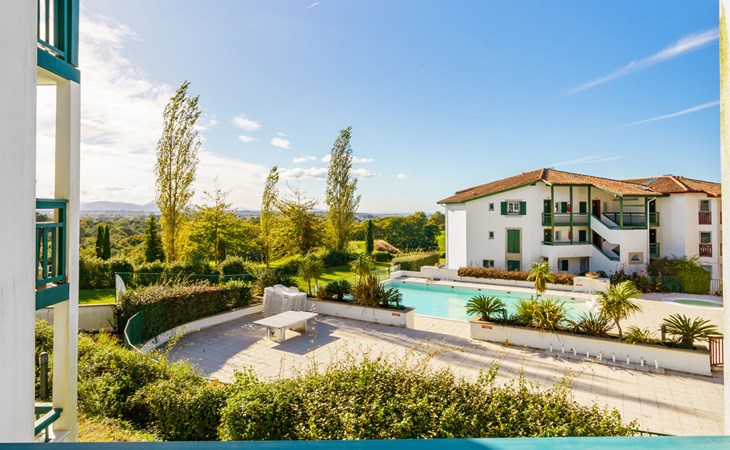 Arcangues 7 km from Bidart: Residence "Les Terrasses d'Arcangues". In the centre of Arcangues, in a busy position, 8 km from the sea, 8 km from the beach, on the golf course. For shared use: swimming pool (200 m2, depth 80 - 170 cm, seasonal availability: 01.Jun. - 01.Oct.). Children's pool, table tennis, terrace. In the house: drying room. Grocery 100 m, supermarket 6 km, restaurant 50 m, bar 200 m, café 50 m, pedestrian zone 150 m, bus stop "Arcangues Bourg" 500 m, railway station "Biarritz" 6 km, sandy beach "Milady" 8 km. Golf course (18 hole) 50 m, surf school 8 km. Nearby attractions: Golf d'Arcangues 50 m, Cité de l'Océan 7 km, Aquarium de Biarritz 8.5 km, Phare de Biarritz 9 km. Hiking paths: La Rhune 36 km. Please note: the keys‘ handover takes place by the agency Interhome in Bidart, 8 km. Additional accommodations can be booked.