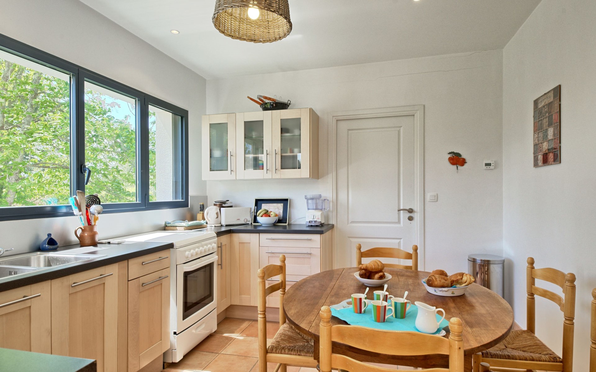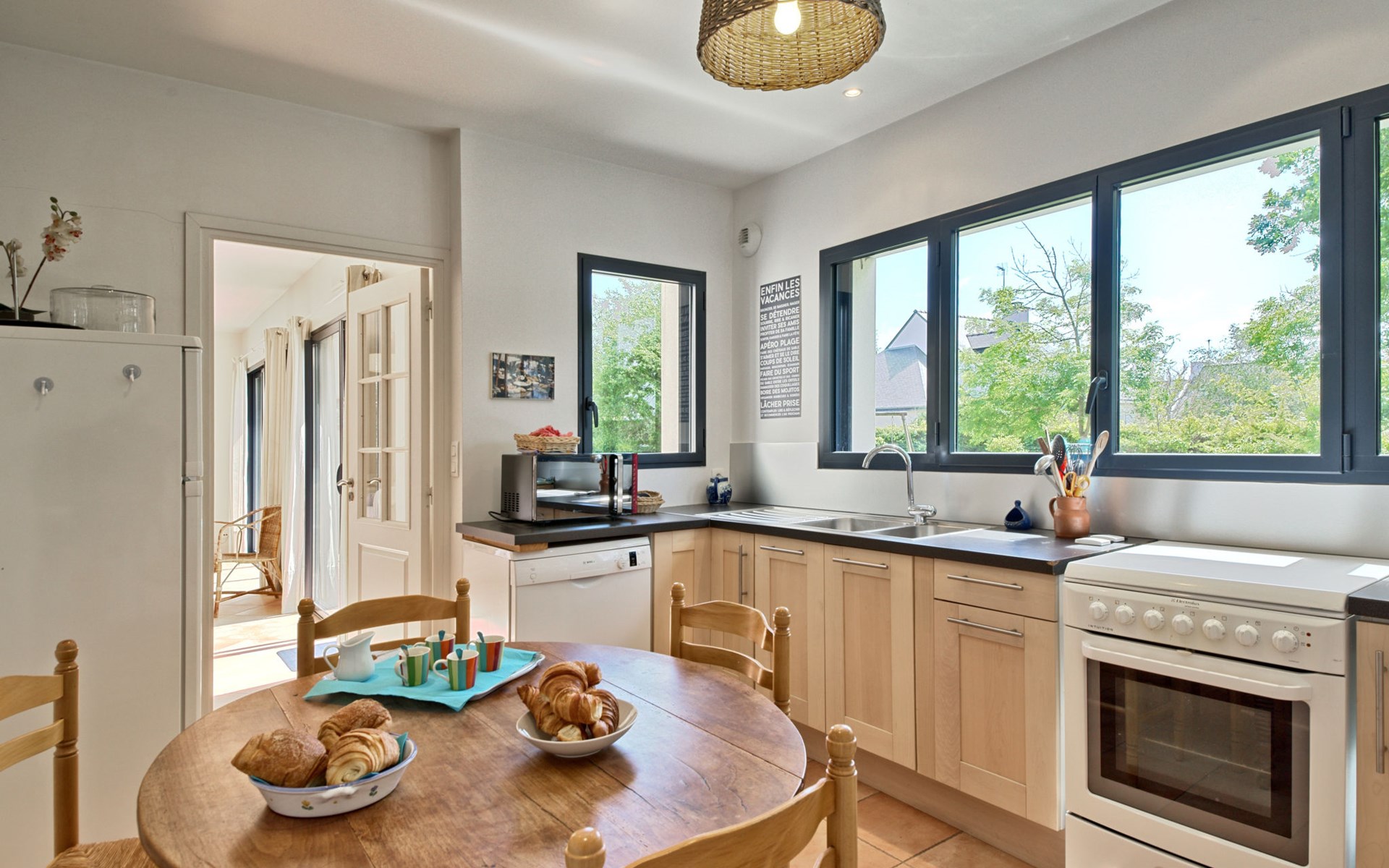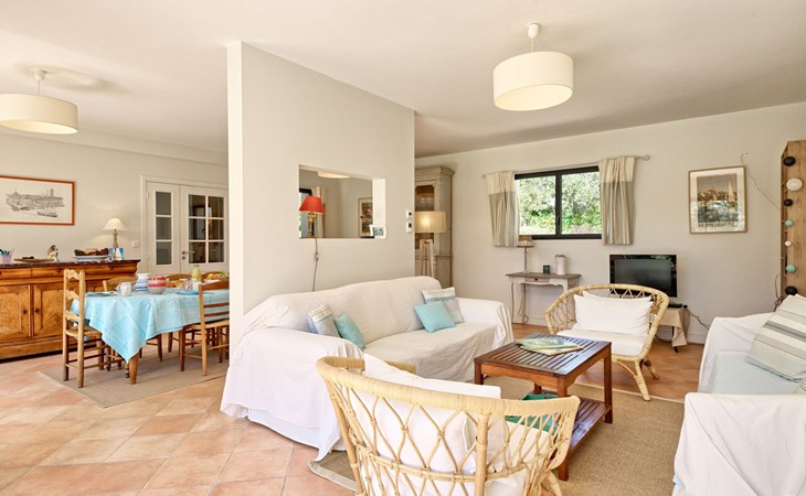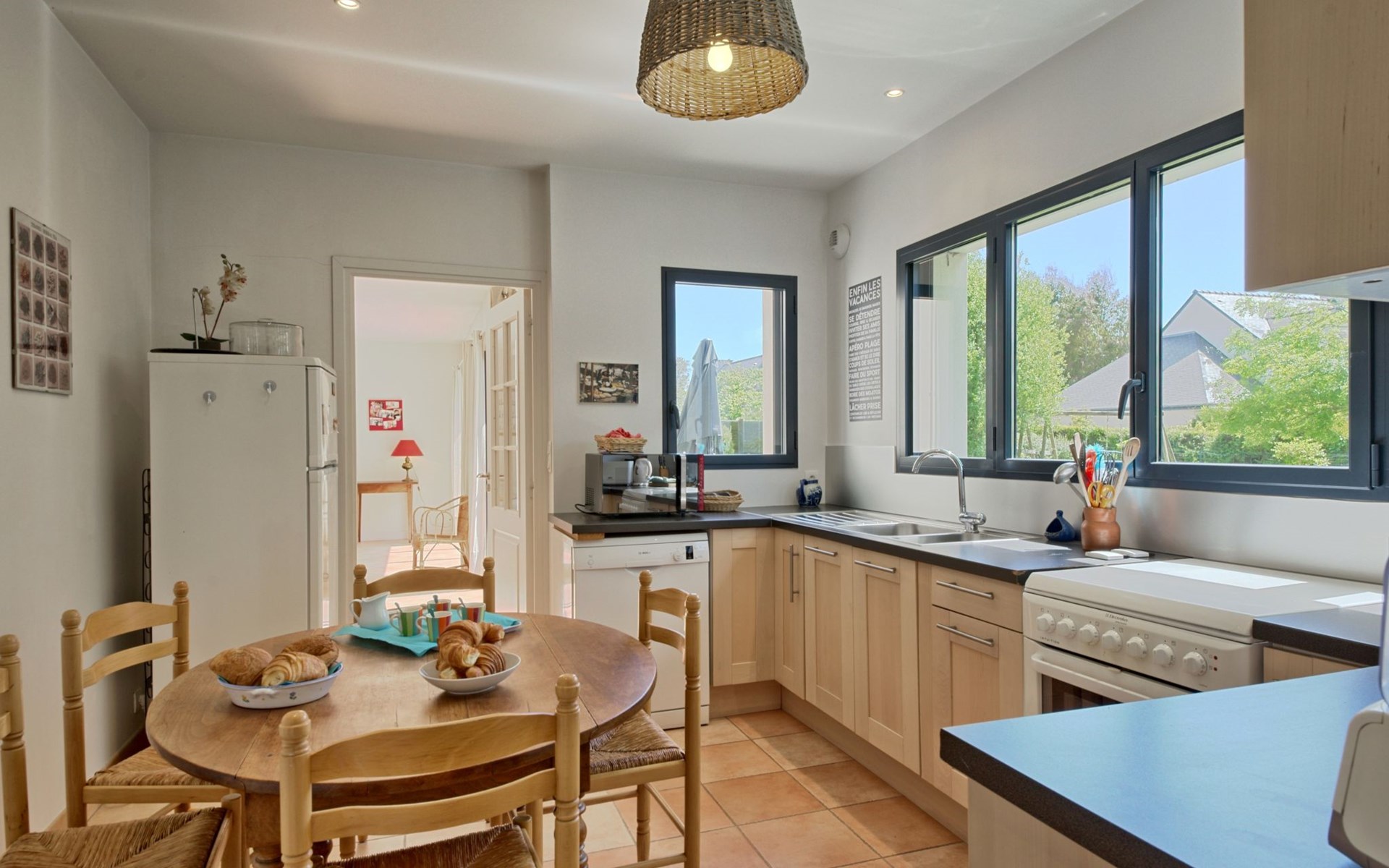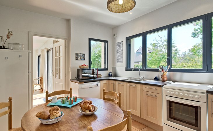 Large single-family house "Charme de Kerfago", built in 2013. In the district of Kerfago 800 m from the centre of Saint-Gildas-de-Rhuys, 7 km from the centre of Sarzeau, 350 m from the sea. Private: natural garden 850 m2 (fenced). In the house: storage room for bicycles. Storeroom available. Parking (for 3 cars) on the premises. Shop 800 m, supermarket 900 m, restaurant, bakery 600 m, bicycle rental 900 m, bus stop 800 m, sandy beach "Plage de Kerfago" 350 m. Sports harbour 400 m, sailing school 2 km, tennis 500 m. Nearby attractions: Golfe du Morbihan 5 km, Port-Crouesty-Arzon 9 km, Vannes 32 km, Carnac (Megalithes) 60 km. Hiking paths: GR34. The owner does not accept any youth groups.