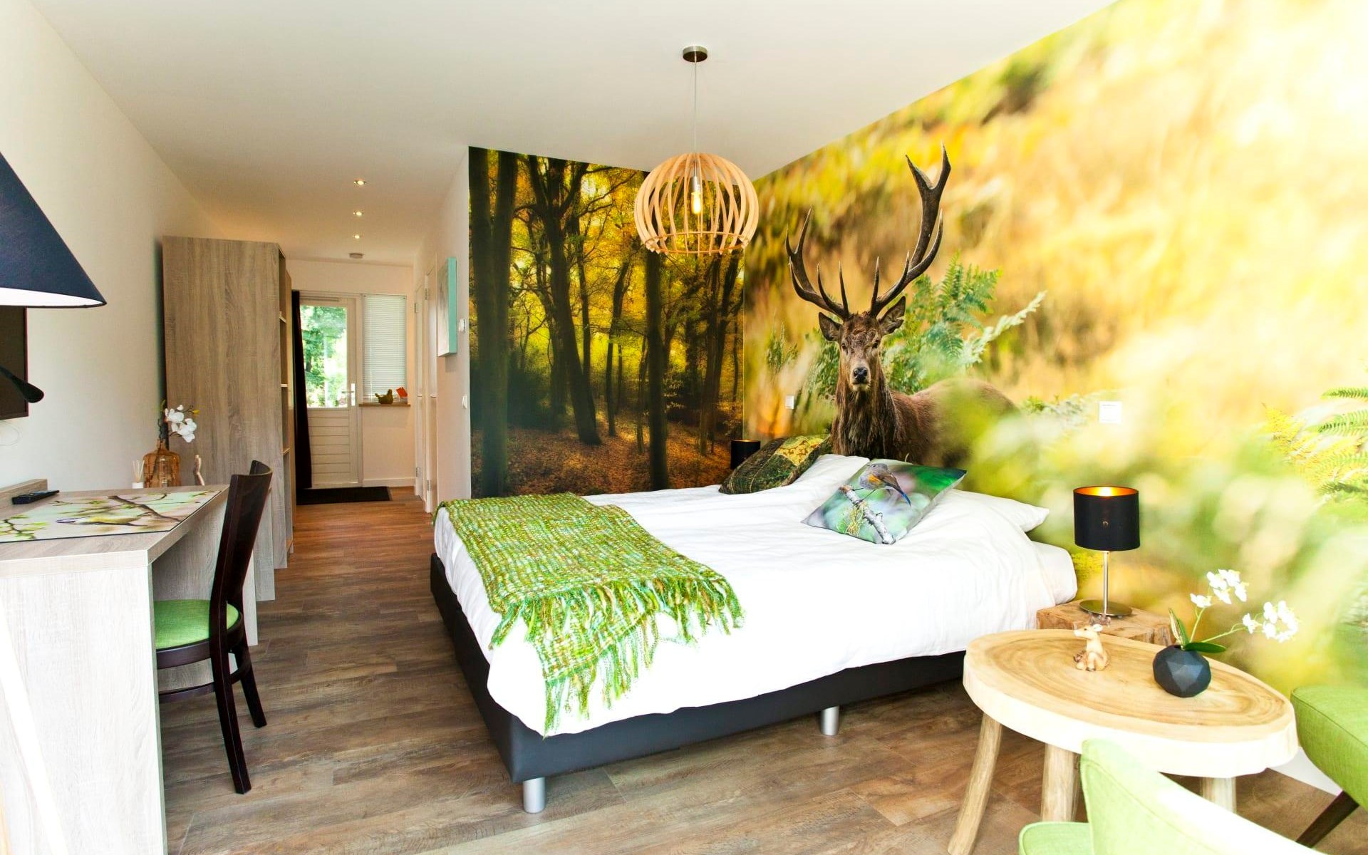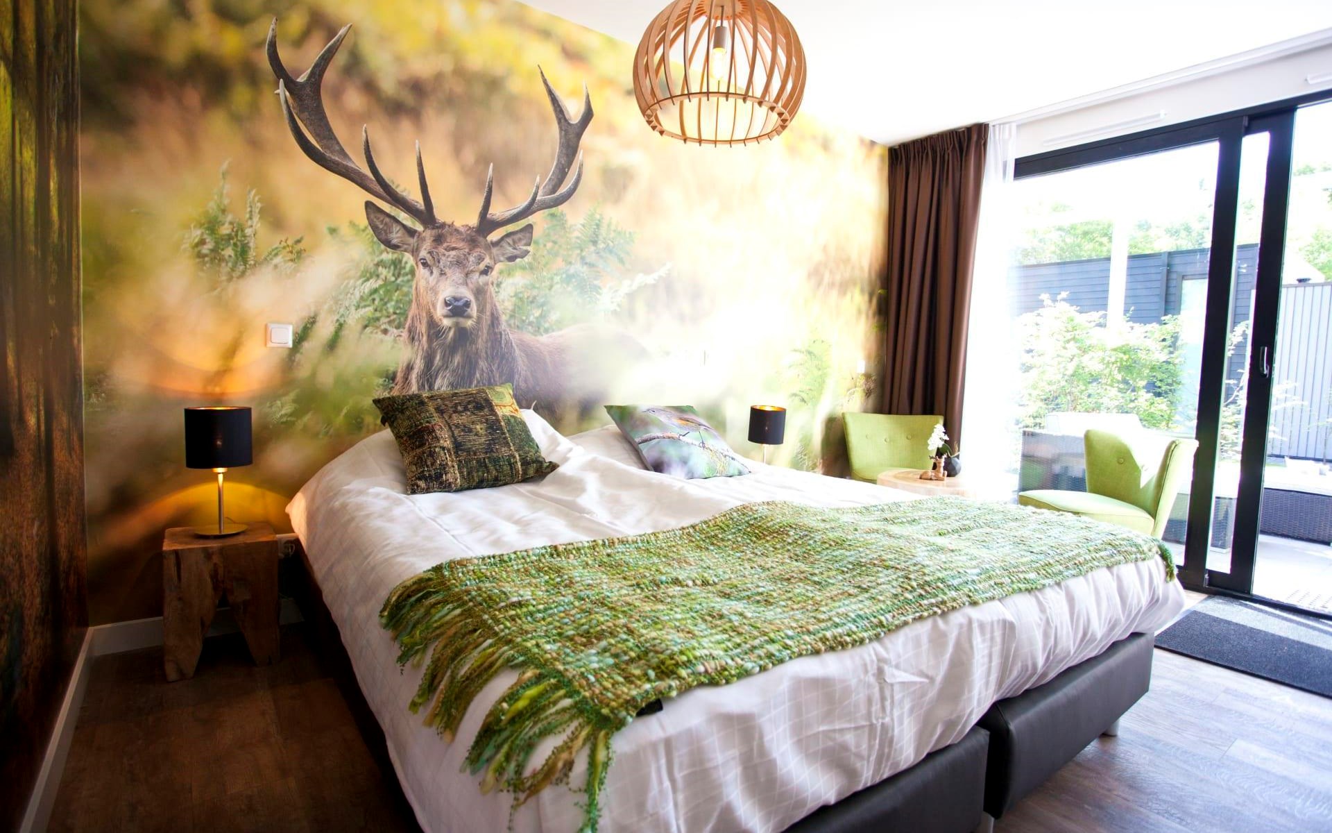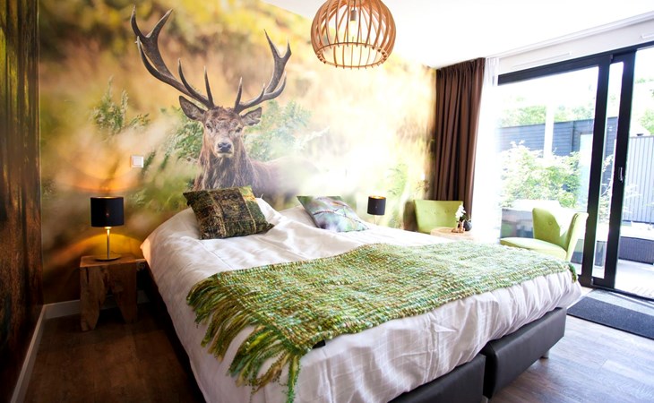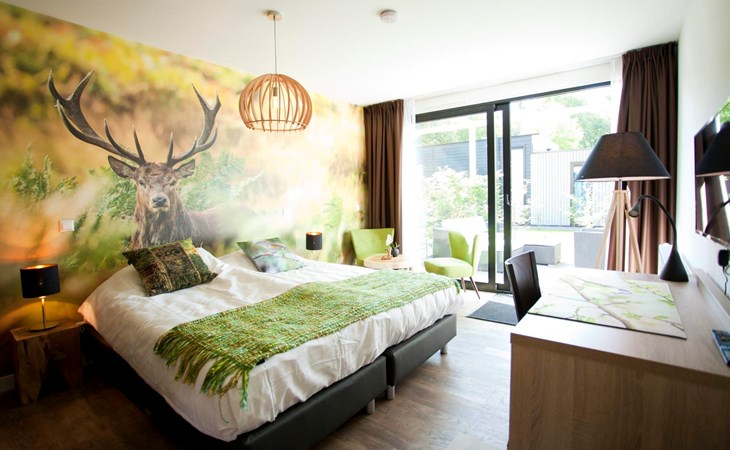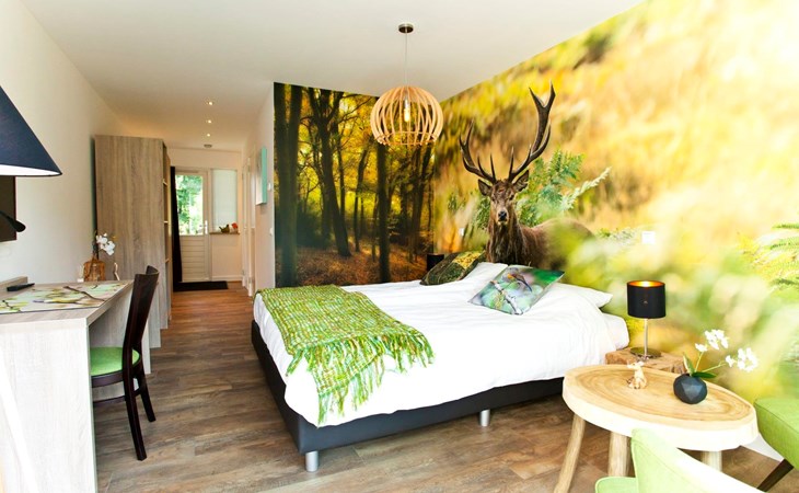 In our detached Comfort Room 2, you will enjoy the comfort and space around you. It is on the ground floor and suitable for a maximum of 2 persons. In the living/bedroom you will find 1 double bed, a television, a sitting area and a kitchenette with a fridge and coffee maker. The bathroom has a spacious shower cabin, a toilet and a washbasin. Outside, you can enjoy nature on the furnished terrace. You can park one car at the studio and there is free Wi-Fi available.