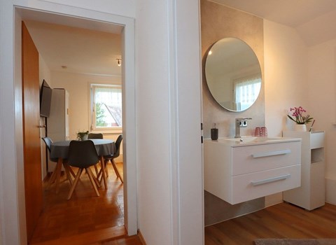 Very simple apartment house. In the centre of Norddeich, 400 m from the sea, 400 m from the beach, in a cul-de-sac. For shared use: patio. In the house: central heating system. Supermarket 1.7 km, restaurant 250 m, bakery 250 m, café, bus stop 500 m, railway station 1.5 km, ferry 1.5 km, sandy beach 400 m, outdoor swimming pool 14 km, indoor swimming pool 500 m. Golf course (18 hole) 8 km, surf school 750 m, tennis 2.5 km, minigolf 500 m, children's playground 600 m.