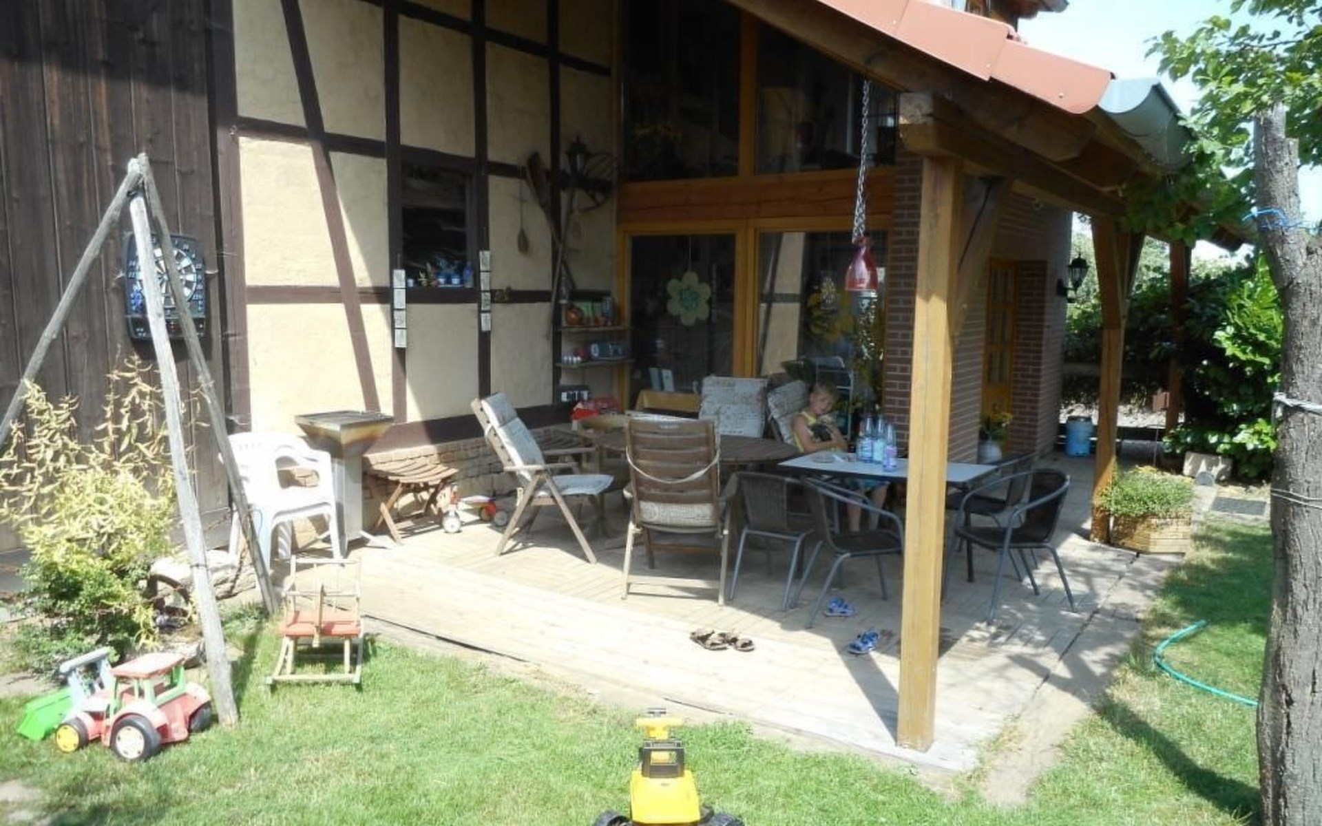Outside there is a large covered terrace, lots of play facilities in the barn and our animals. A one-hectare meadow orchard adjoins the residential property and makes our holiday farm a green oasis in the countryside. Our farm is especially prepared for families with small children, the most important things for toddler equipment are available free of charge. The farm is quietly situated on the south-eastern edge of a village of 400 souls in the Thuringian Hainichland. Sundhausen is a typical village with a unique village green in the centre.