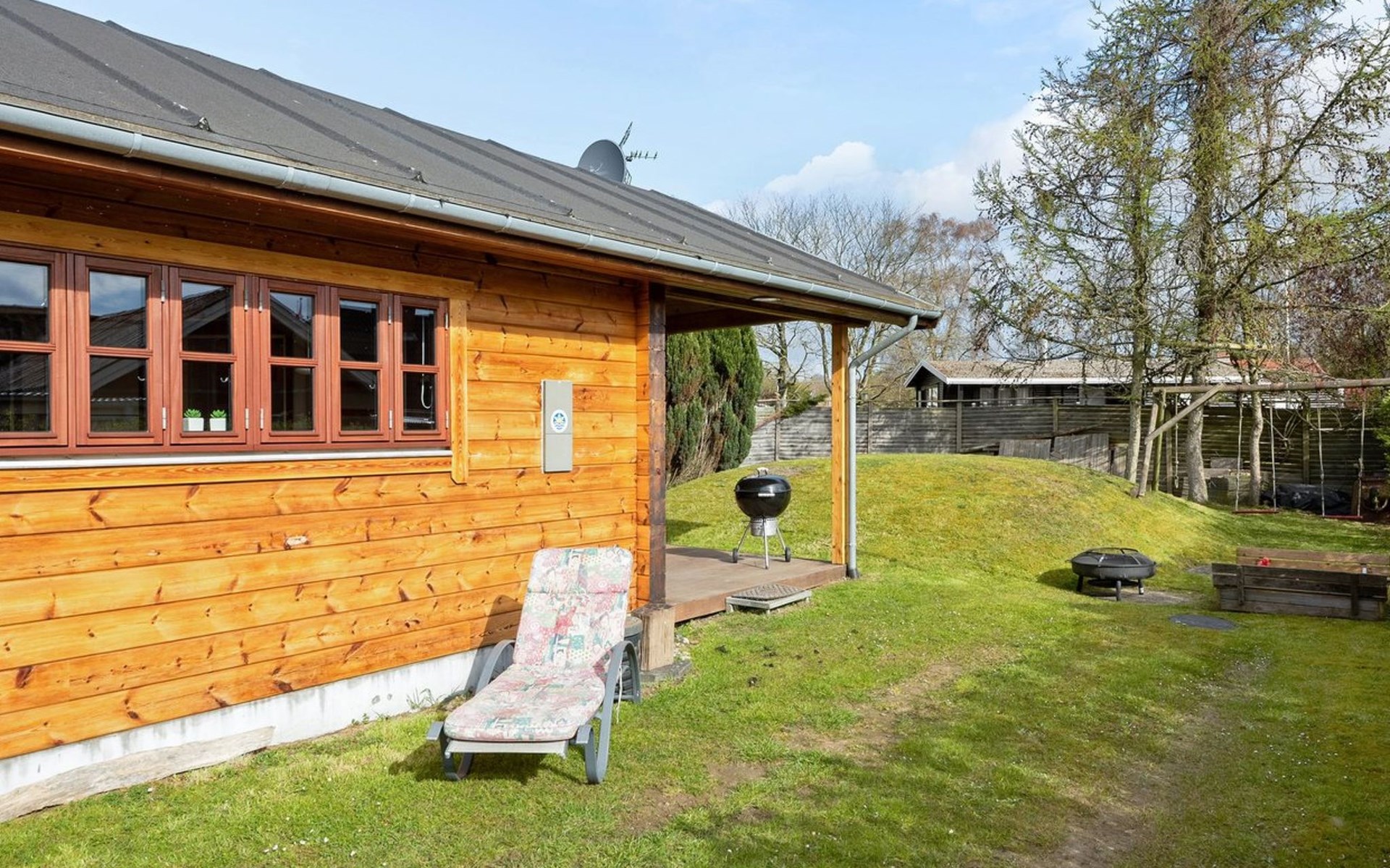 Single-family house, built in 2009. 200 m from the sea. Private: natural state property 396 m2. Terrace (40 m2), barbecue, children's playground (swing). In the house: washing machine, tumble dryer. Parking at the house. Grocery 2 km. The owner does not accept any youth groups.