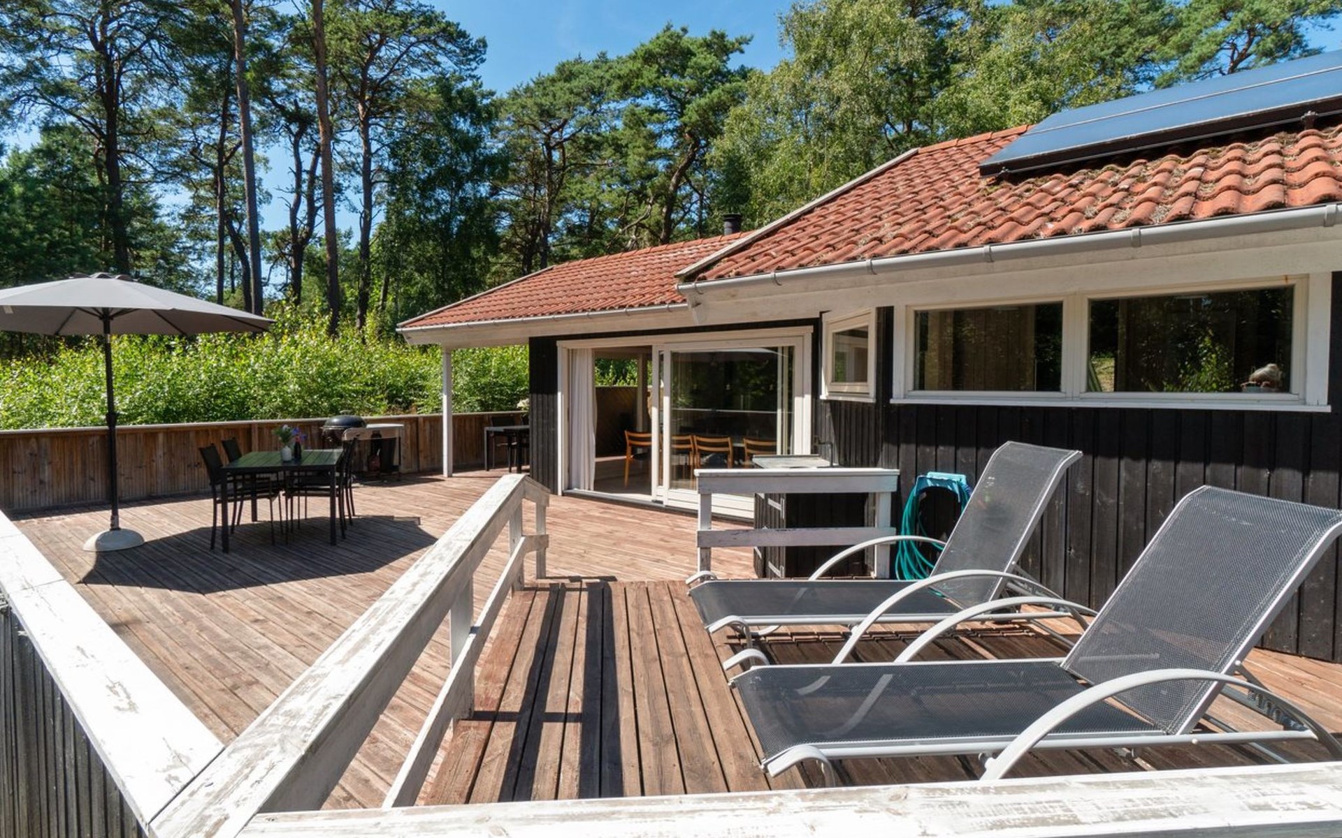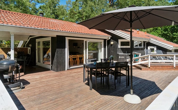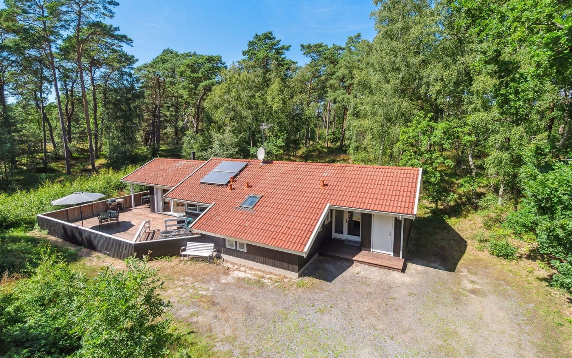 Single-family house, built in 1999. 600 m from the sea. Private: property 2'500 m2. Barbecue. In the house: sauna, washing machine, tumble dryer. Parking at the house. Grocery 4 km. Golf course 150 m. The owner does not accept any youth groups.