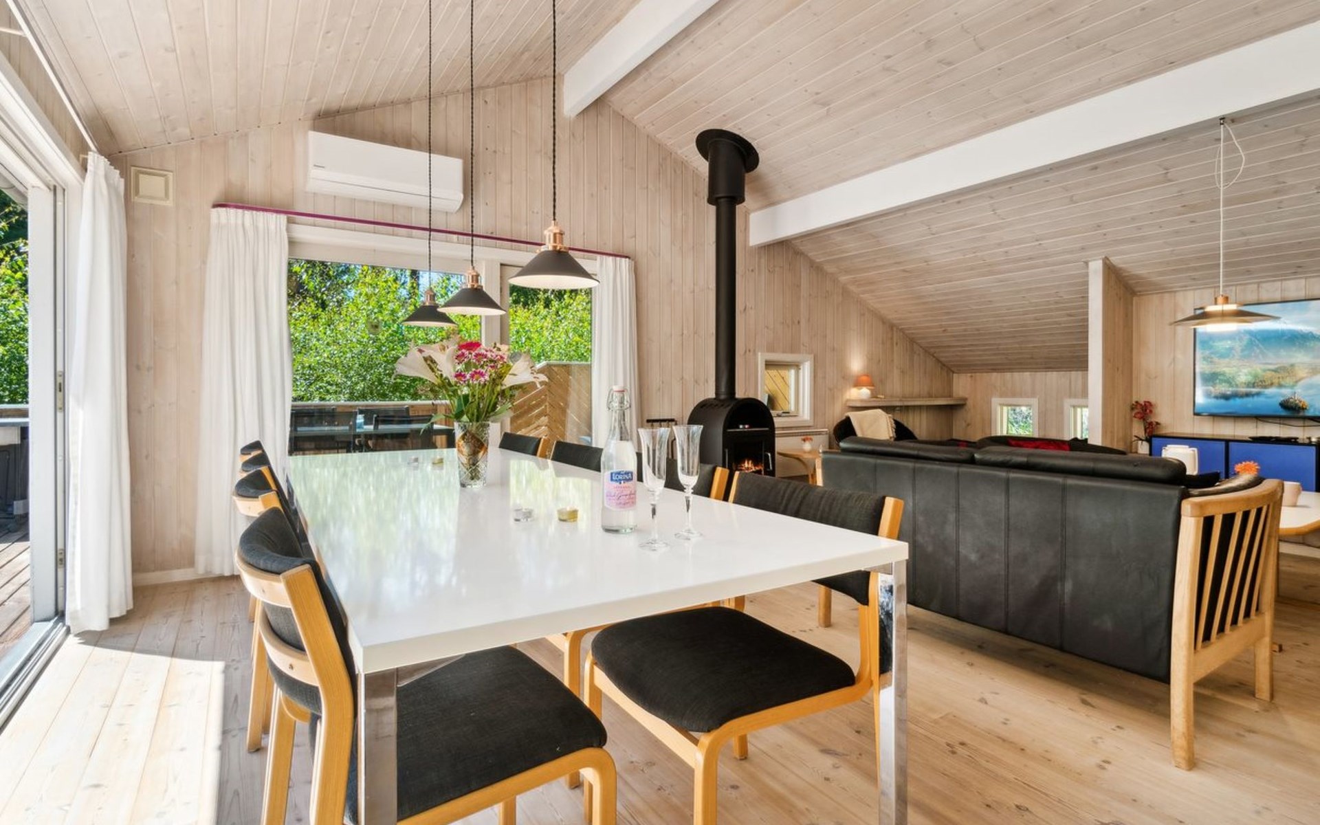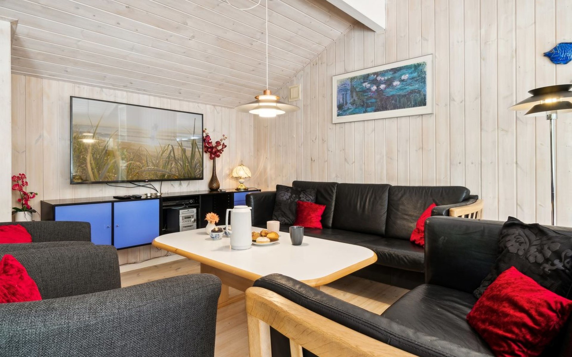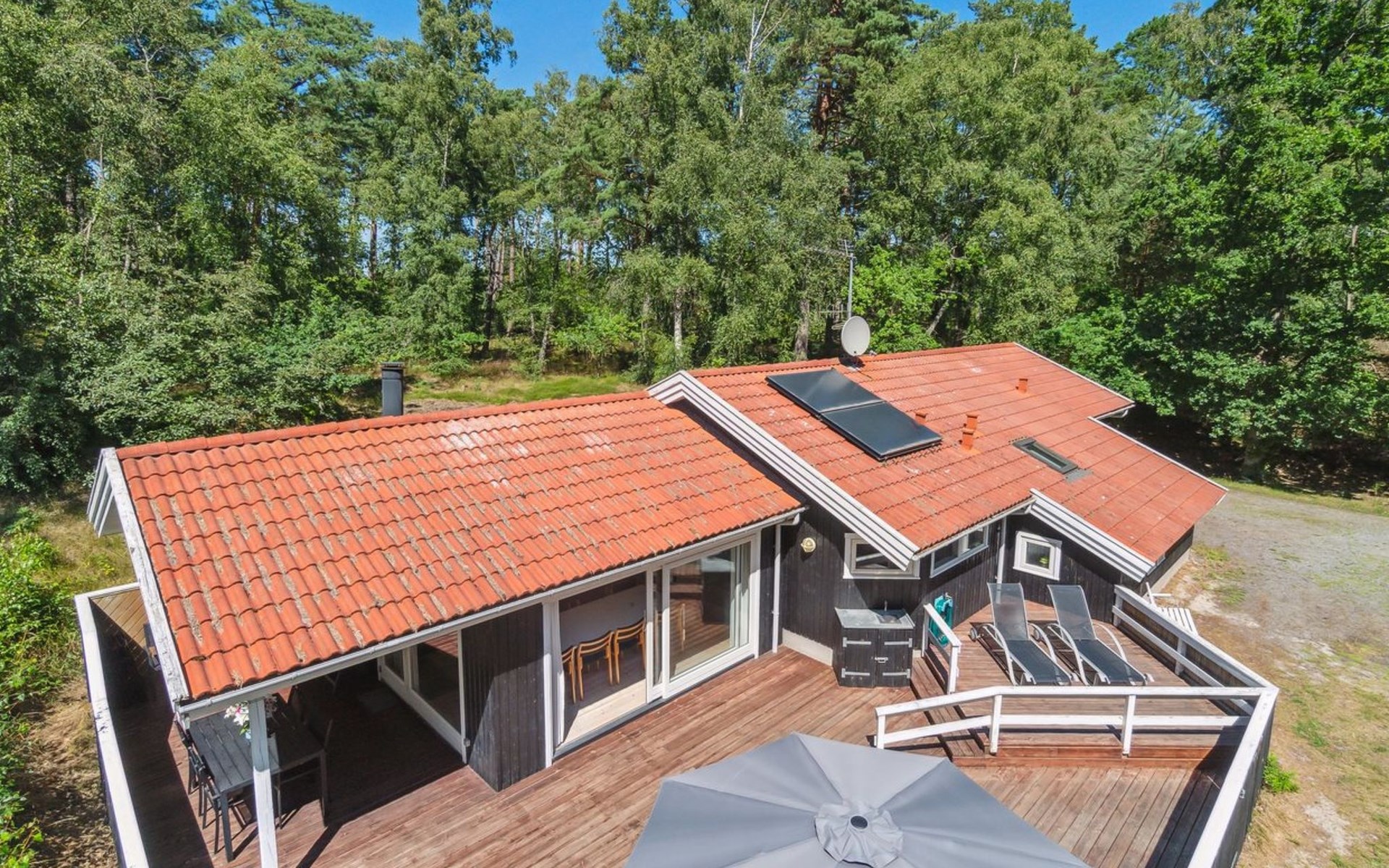 Single-family house, built in 1999. 600 m from the sea. Private: property 2'500 m2. Barbecue. In the house: sauna, washing machine, tumble dryer. Parking at the house. Grocery 4 km. Golf course 150 m. The owner does not accept any youth groups.