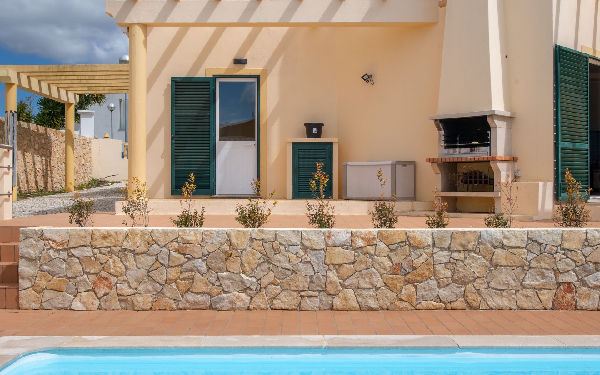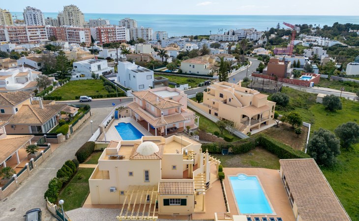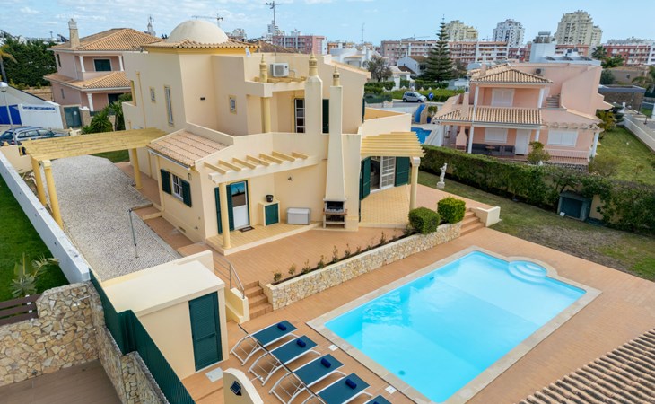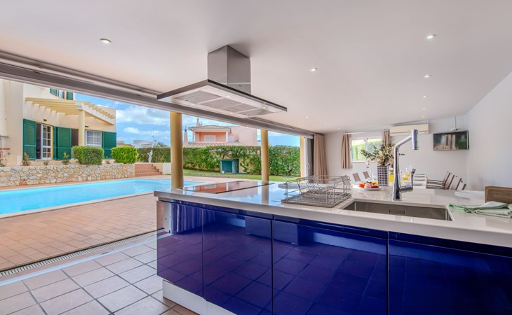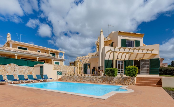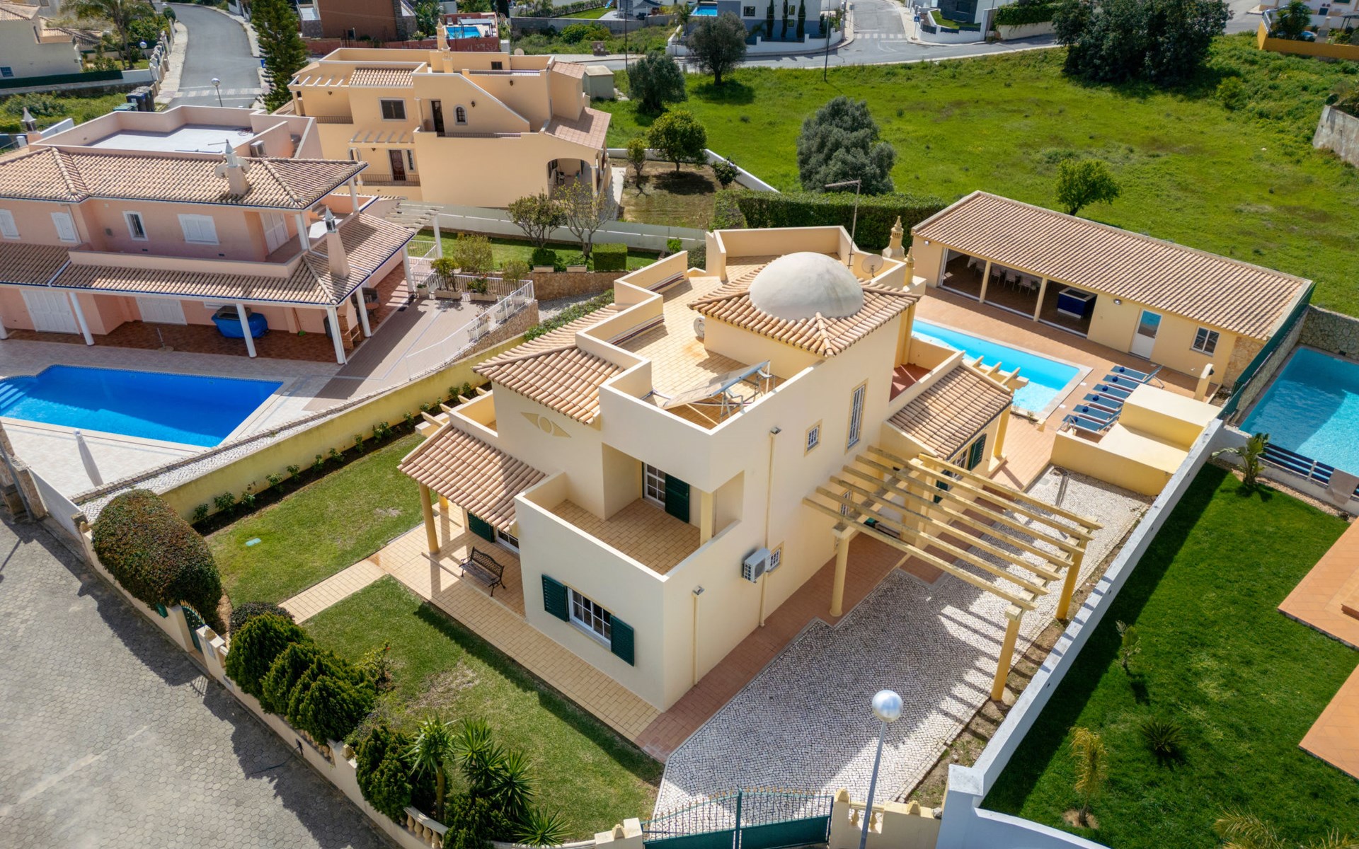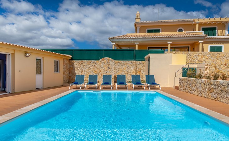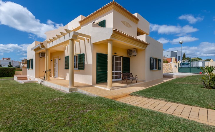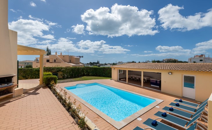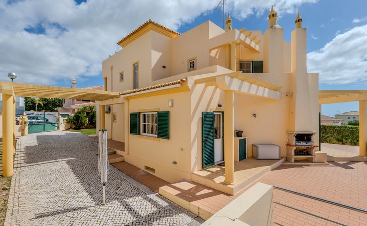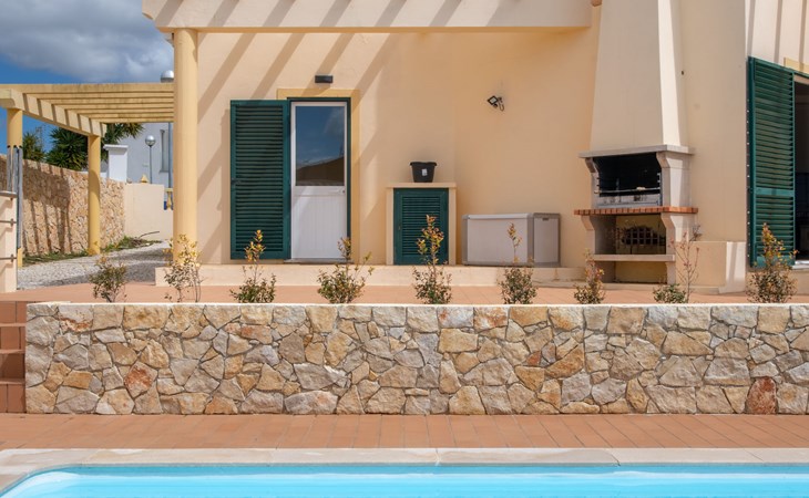 Very cosy villa "Mar", detached in 2025. Outside the resort, 1.7 km from the centre of Armação de Pêra, residential area (villas), 850 m from the sea. Private: natural state property (fenced), swimming pool angular (4 x 8 m, depth 80 - 190 cm, seasonal availability: 01.Jan. - 31.Dec.). Barbecue. In the house: WiFi, washing machine. Shop 1.3 km, grocery 1.3 km, supermarket 1.3 km, shopping centre 9.8 km, restaurant 700 m, bar 950 m, bakery 1.9 km, café 700 m, pedestrian zone 900 m, bicycle rental 10.2 km, bus stop 750 m, sandy beach "Praia do Olival" 850 m. Marina 11.7 km, golf course (18 hole) 7.2 km, surf school 8.8 km, tennis 1.4 km, children's playground 1.3 km. Nearby attractions: Zoomarine 10.3 km, Banzai boggan 6.6 km, Krazy World 14.9 km, Sand City 6.9 km, Algarve Shopping 11.1 km, Bowling Marina Albufeira 12.9 km. Hiking paths: Lagoa dos Salgados 7.4 km. Please note: car recommended. Suitable for families. Loading and unloading of baggage is possible at the holiday house. This house has a second kitchen that supports the pool.
