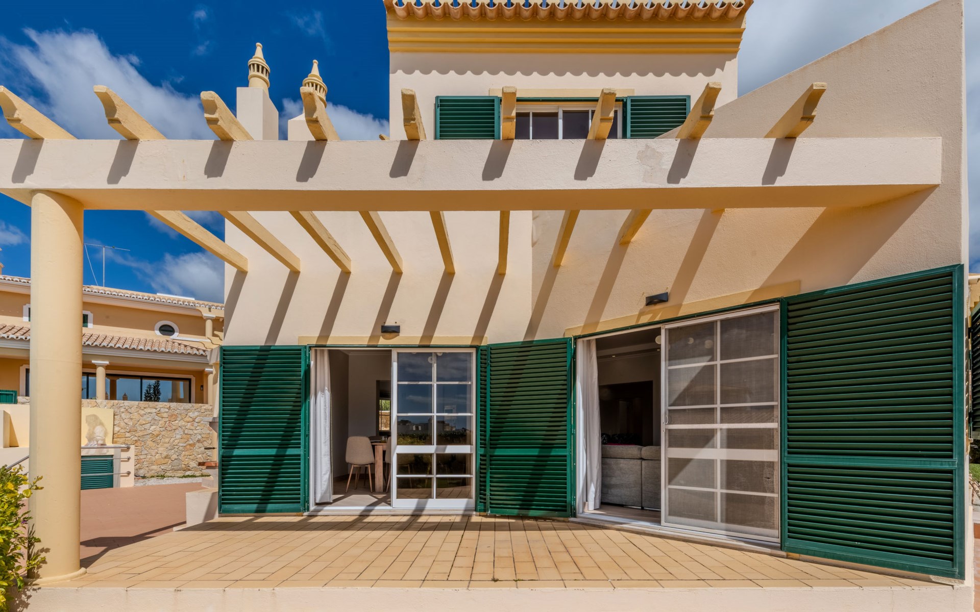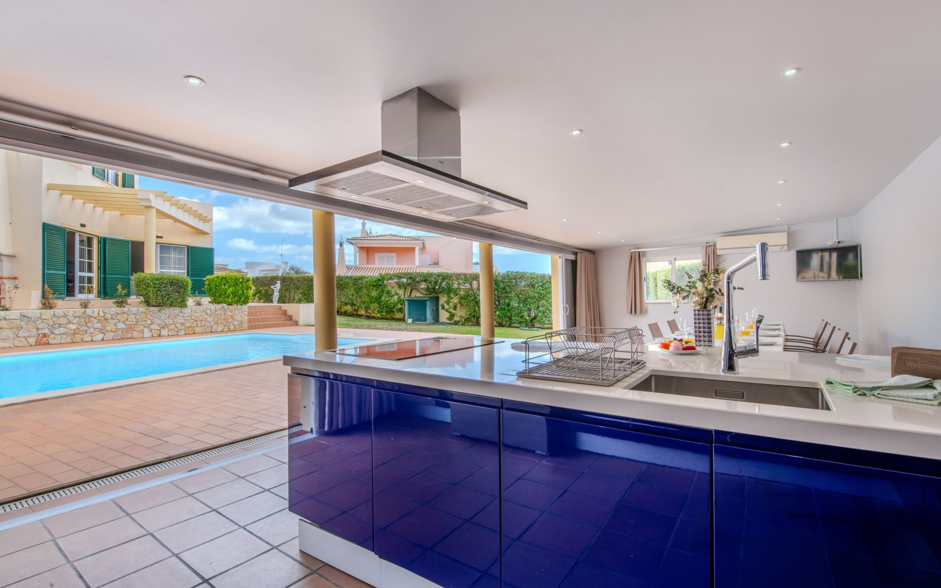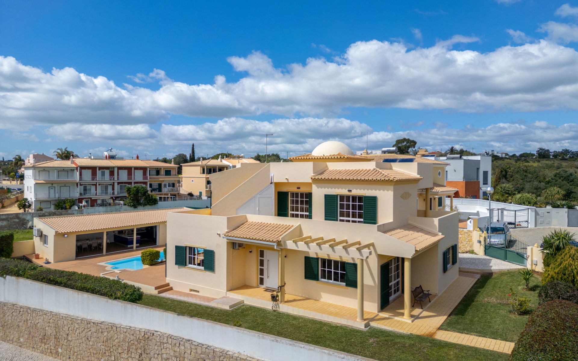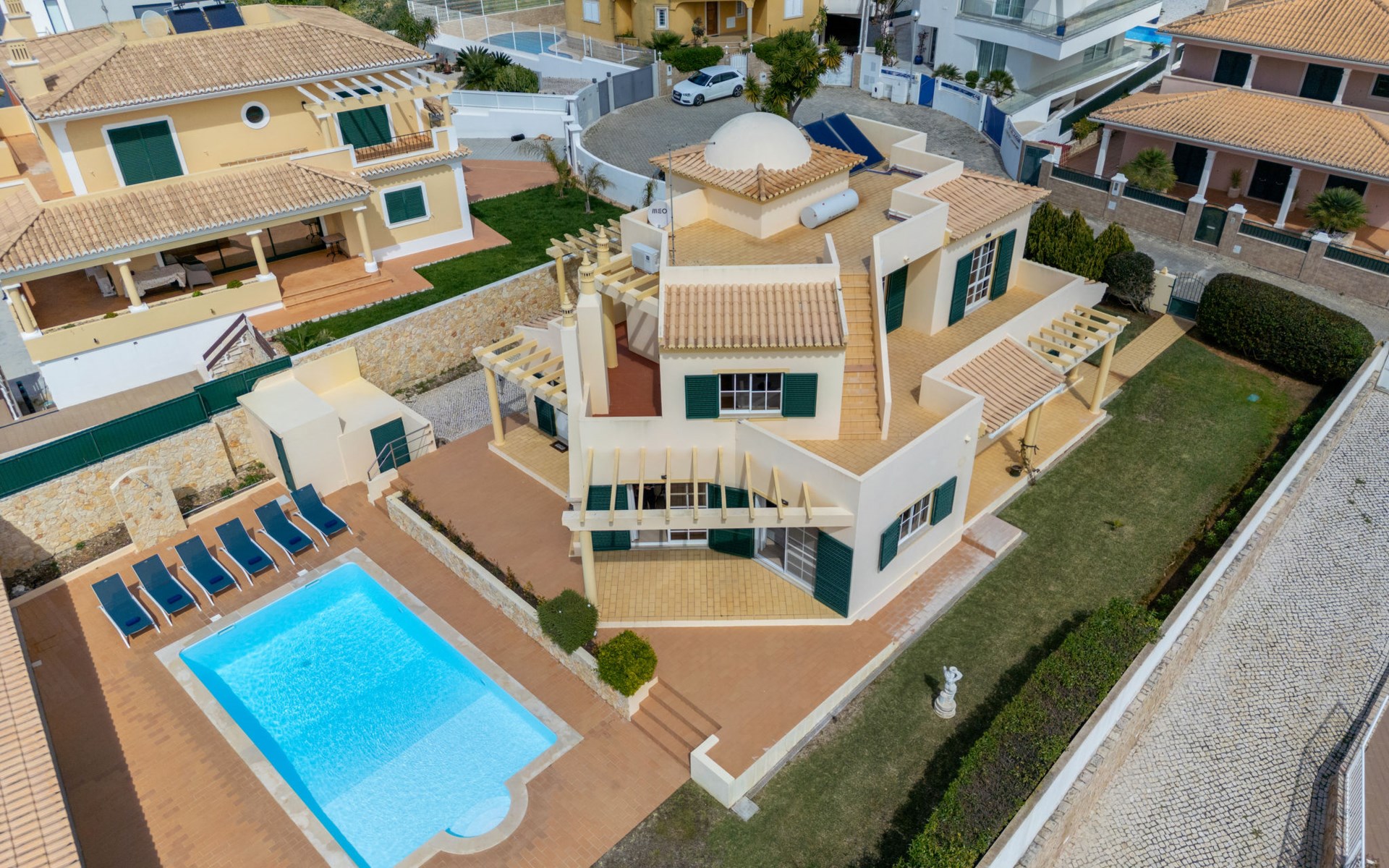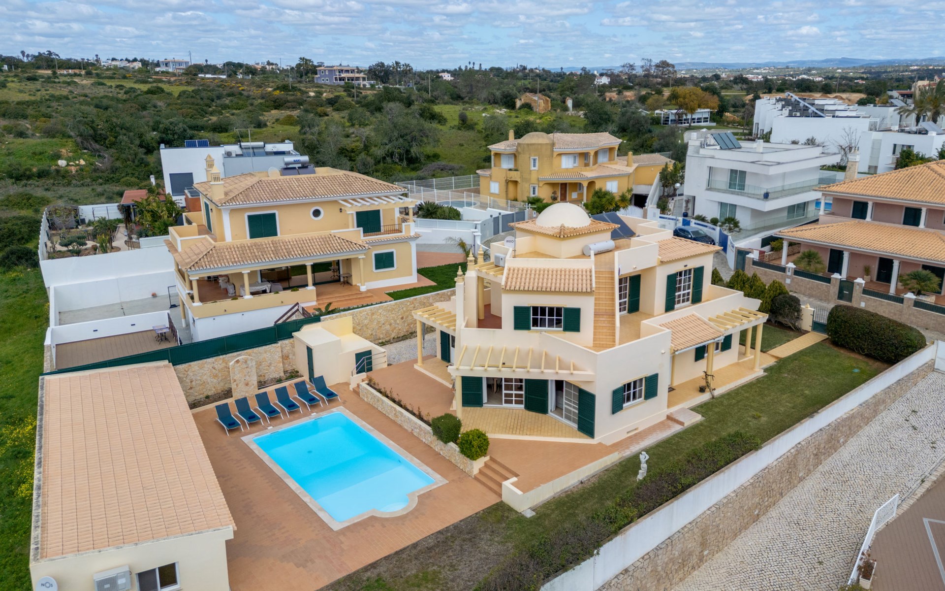 Very cosy villa "Mar", detached in 2025. Outside the resort, 1.7 km from the centre of Armação de Pêra, residential area (villas), 850 m from the sea. Private: natural state property (fenced), swimming pool angular (4 x 8 m, depth 80 - 190 cm, seasonal availability: 01.Jan. - 31.Dec.). Barbecue. In the house: WiFi, washing machine. Shop 1.3 km, grocery 1.3 km, supermarket 1.3 km, shopping centre 9.8 km, restaurant 700 m, bar 950 m, bakery 1.9 km, café 700 m, pedestrian zone 900 m, bicycle rental 10.2 km, bus stop 750 m, sandy beach "Praia do Olival" 850 m. Marina 11.7 km, golf course (18 hole) 7.2 km, surf school 8.8 km, tennis 1.4 km, children's playground 1.3 km. Nearby attractions: Zoomarine 10.3 km, Banzai boggan 6.6 km, Krazy World 14.9 km, Sand City 6.9 km, Algarve Shopping 11.1 km, Bowling Marina Albufeira 12.9 km. Hiking paths: Lagoa dos Salgados 7.4 km. Please note: car recommended. Suitable for families. Loading and unloading of baggage is possible at the holiday house. This house has a second kitchen that supports the pool.