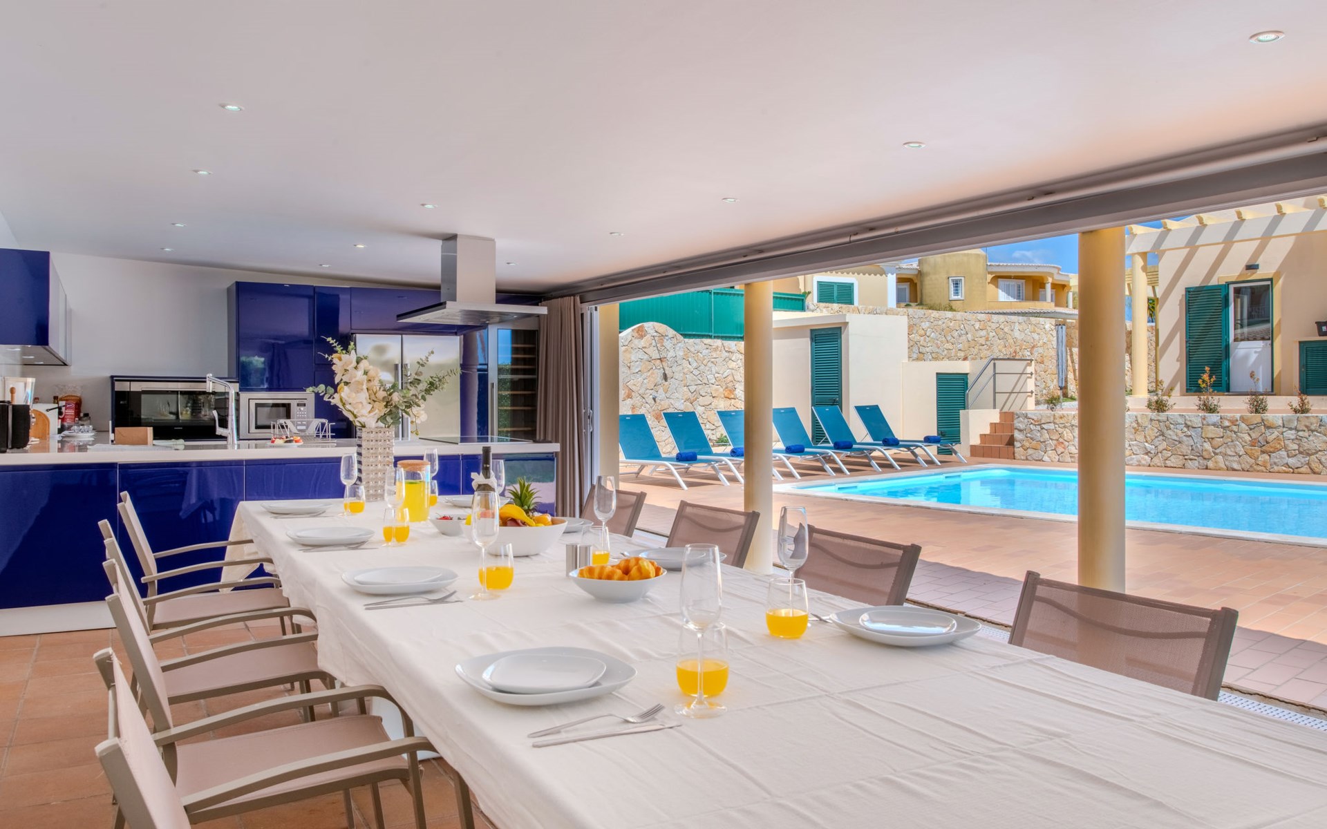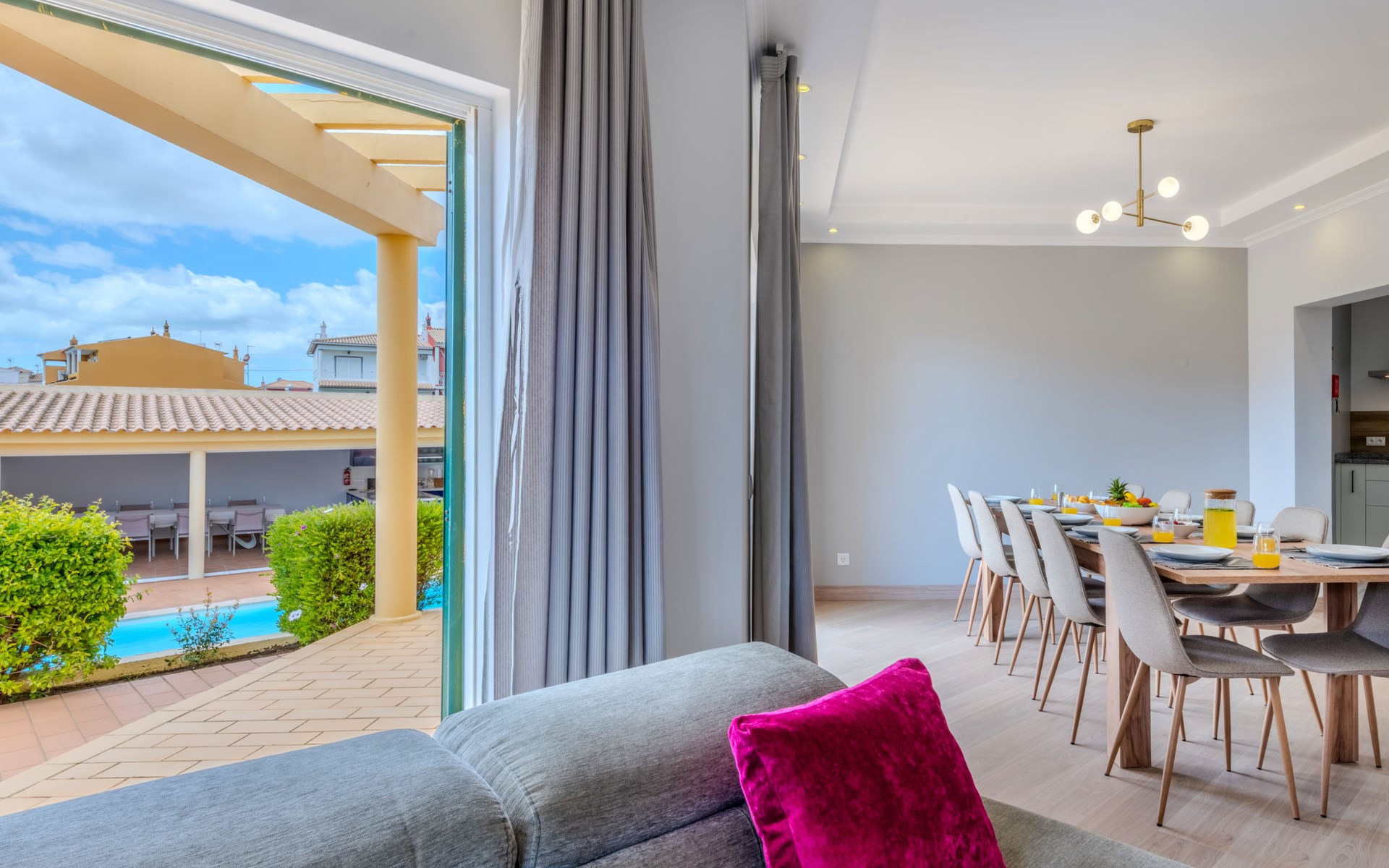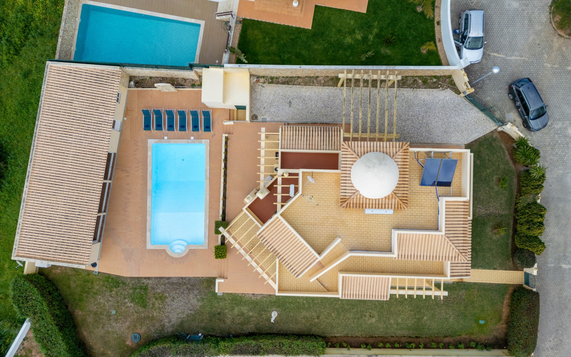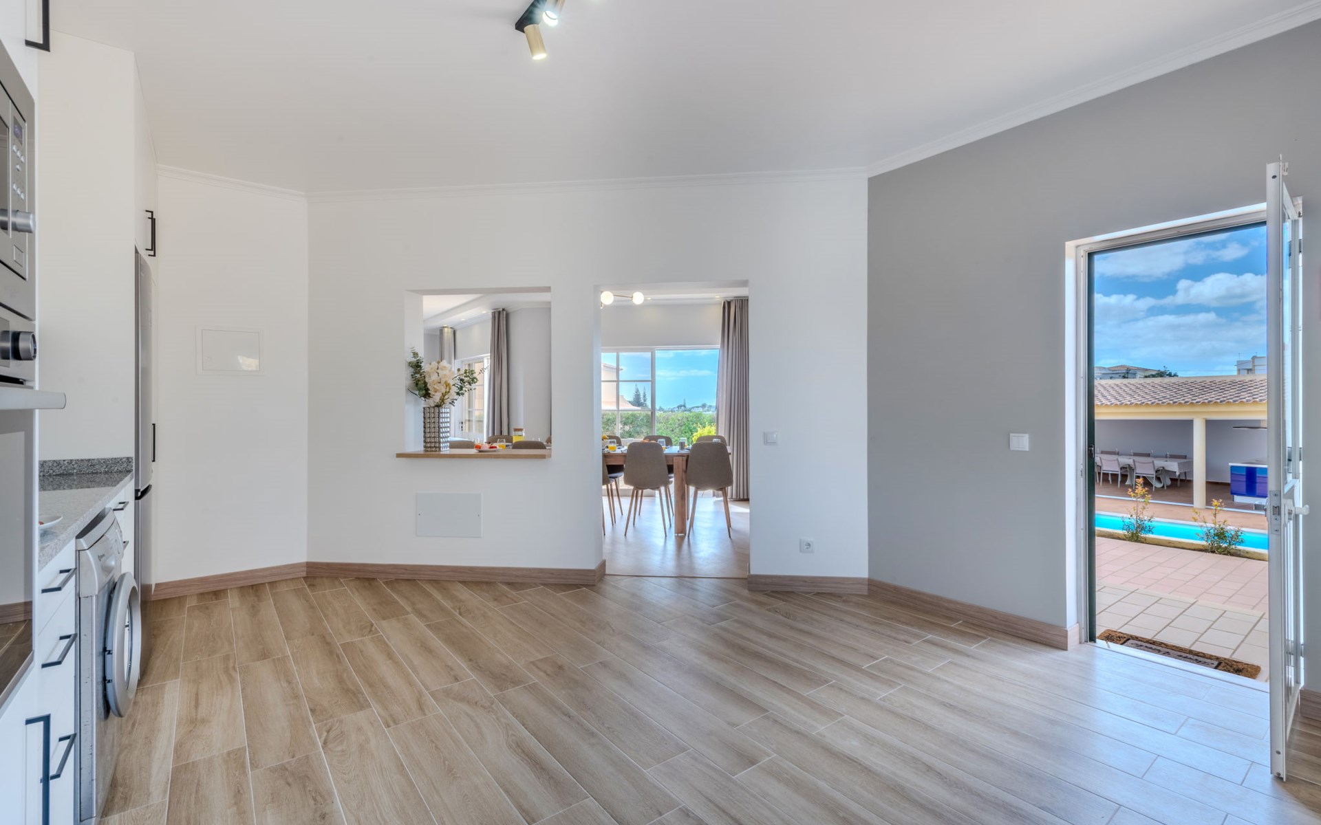 Very cosy villa "Mar", detached in 2025. Outside the resort, 1.7 km from the centre of Armação de Pêra, residential area (villas), 850 m from the sea. Private: natural state property (fenced), swimming pool angular (4 x 8 m, depth 80 - 190 cm, seasonal availability: 01.Jan. - 31.Dec.). Barbecue. In the house: WiFi, washing machine. Shop 1.3 km, grocery 1.3 km, supermarket 1.3 km, shopping centre 9.8 km, restaurant 700 m, bar 950 m, bakery 1.9 km, café 700 m, pedestrian zone 900 m, bicycle rental 10.2 km, bus stop 750 m, sandy beach "Praia do Olival" 850 m. Marina 11.7 km, golf course (18 hole) 7.2 km, surf school 8.8 km, tennis 1.4 km, children's playground 1.3 km. Nearby attractions: Zoomarine 10.3 km, Banzai boggan 6.6 km, Krazy World 14.9 km, Sand City 6.9 km, Algarve Shopping 11.1 km, Bowling Marina Albufeira 12.9 km. Hiking paths: Lagoa dos Salgados 7.4 km. Please note: car recommended. Suitable for families. Loading and unloading of baggage is possible at the holiday house. This house has a second kitchen that supports the pool.