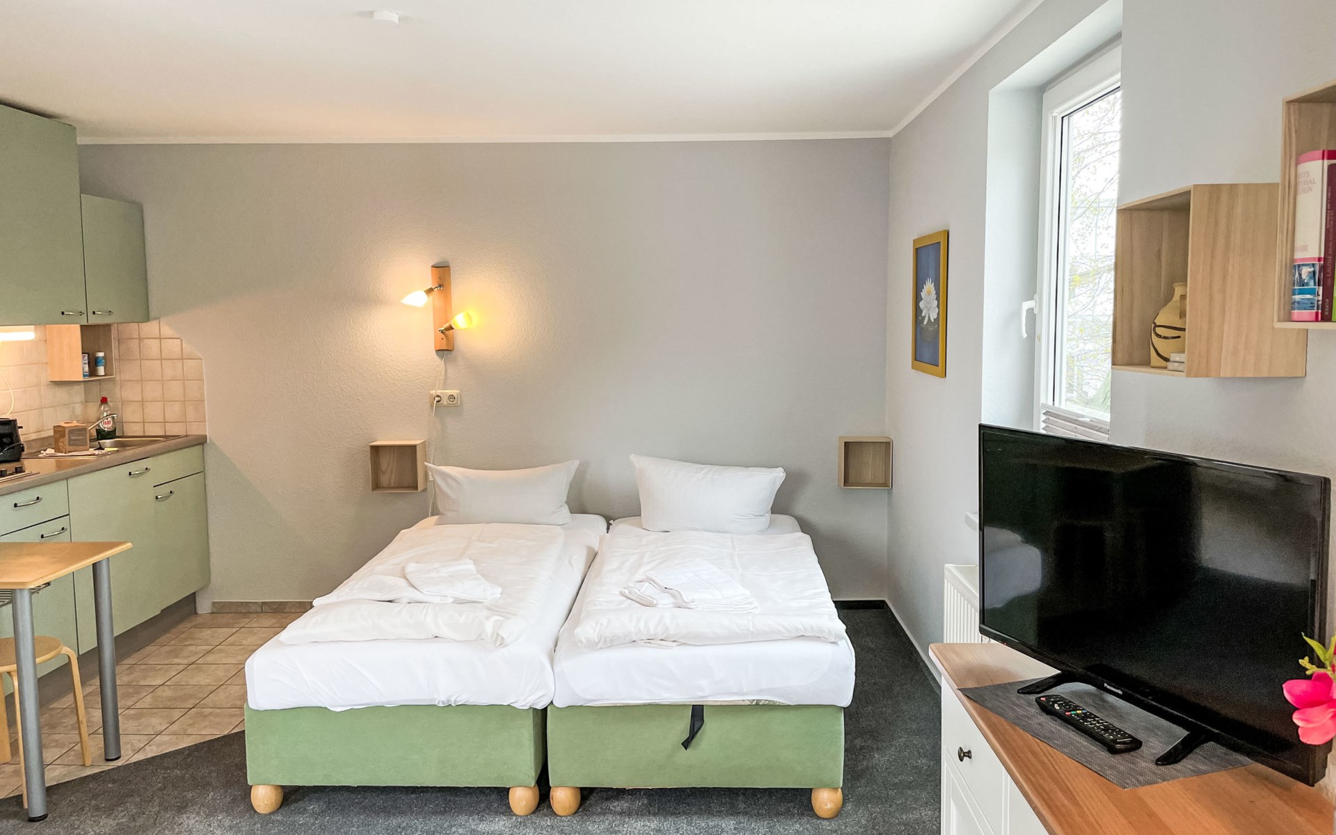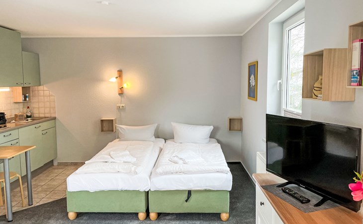 Apartment block "Lisa". In the resort 200 m from the centre of Zinnowitz, 400 m from the sea, from the beach. In the house: central heating system. Parking on the premises. Supermarket 110 m, restaurant 50 m, bakery 170 m, café 170 m, bus stop 170 m, railway station 900 m, sandy beach 400 m, thermal baths "Bernsteintherme" 800 m. Marina 2 km, golf course (18 hole) 25 km, surf school 800 m, tennis 170 m, minigolf 500 m.