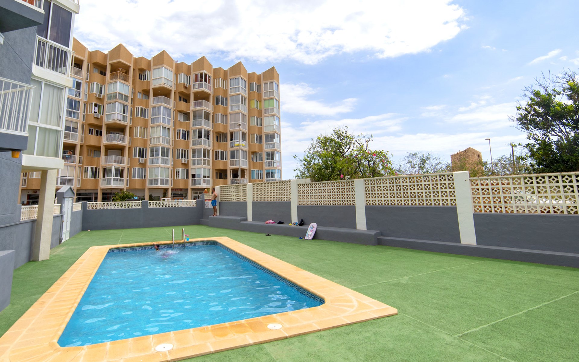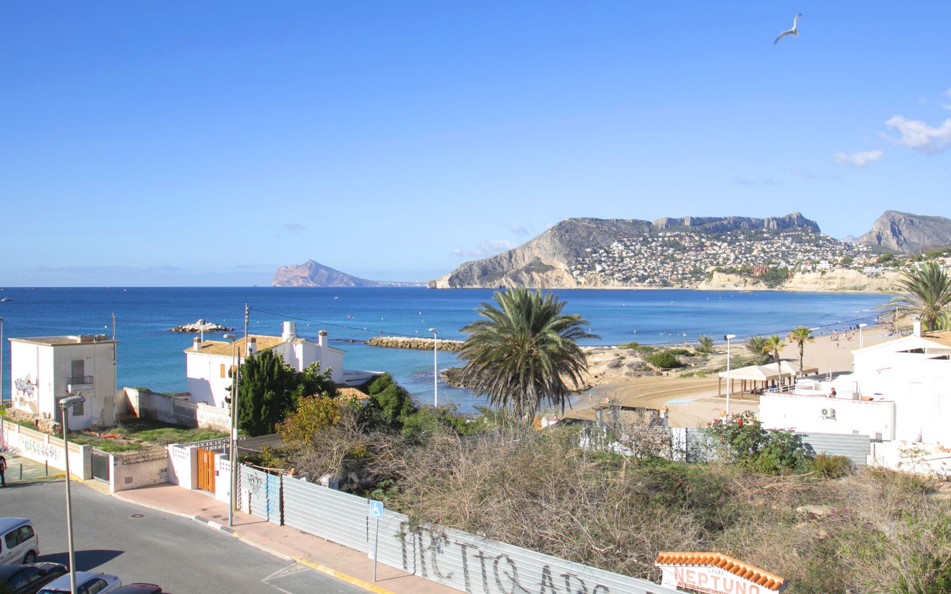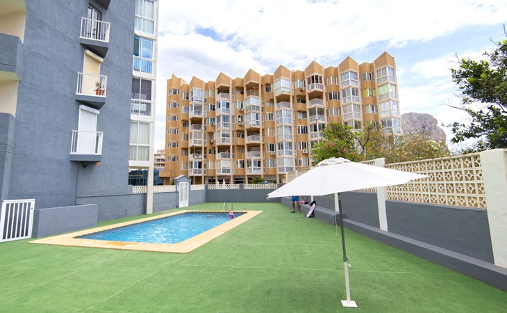 Apartment block "Hernando I", 6 storeys. 1.5 km from the centre of Calpe, 100 m from the sea, 150 m from the beach. For shared use: swimming pool (10 x 4 m, depth 60 - 200 cm, seasonal availability: 15.Apr. - 15.Oct.). Outdoor shower. In the house: lift. Parking (limited number of spaces). Grocery, supermarket 600 m, restaurant 250 m, bus stop 180 m, sandy beach "Playa del Cantal Roig" 200 m. Sports harbour 1 km, golf course (9 hole) 11 km, sailing school 1 km. Nearby attractions: Aqualandia, Mundomar, Terra MÃtica, Terra Natura, Benidorm Palace (Benidorm), Les Fonts de l'Algar, Castillo de Guadalest.
