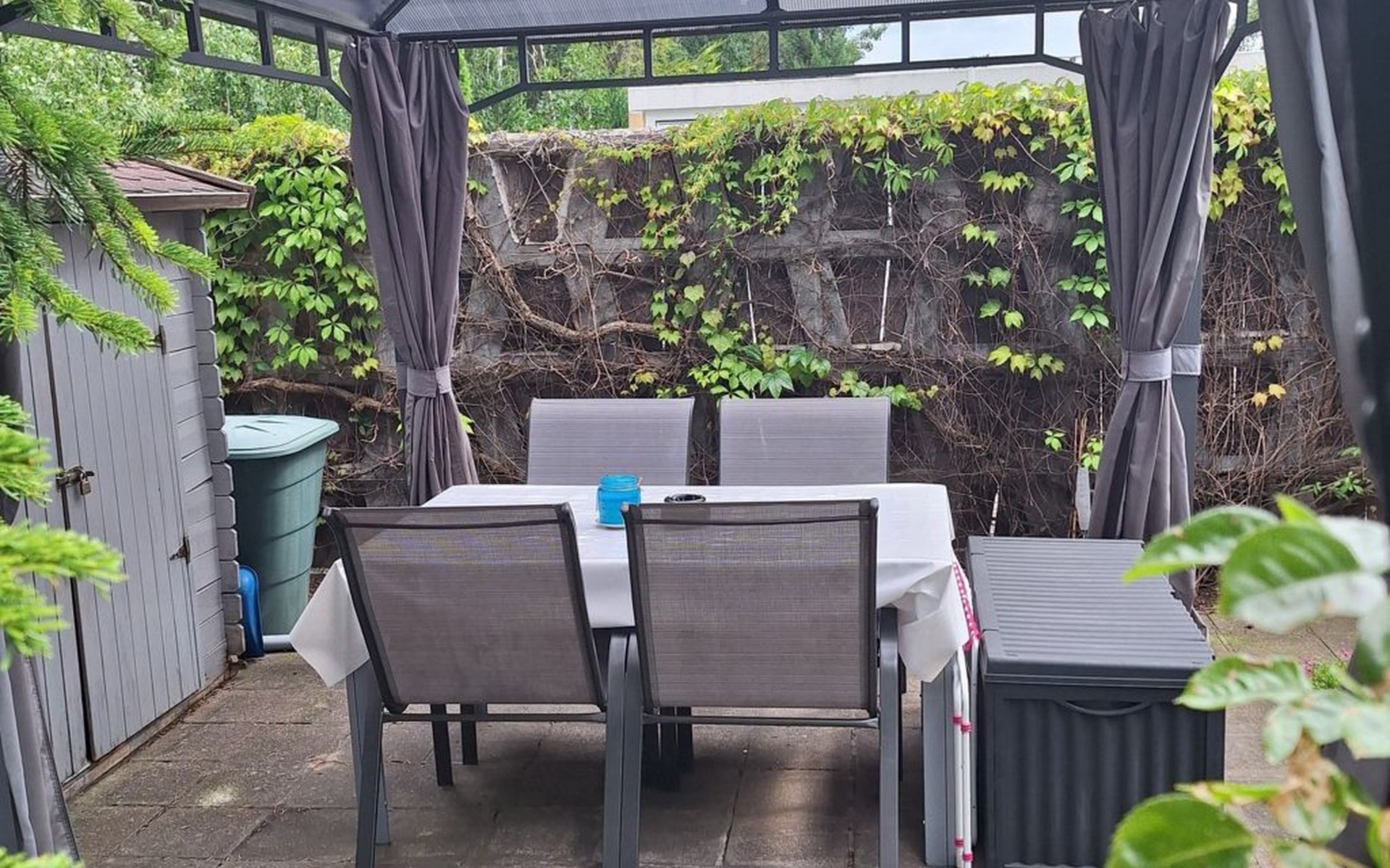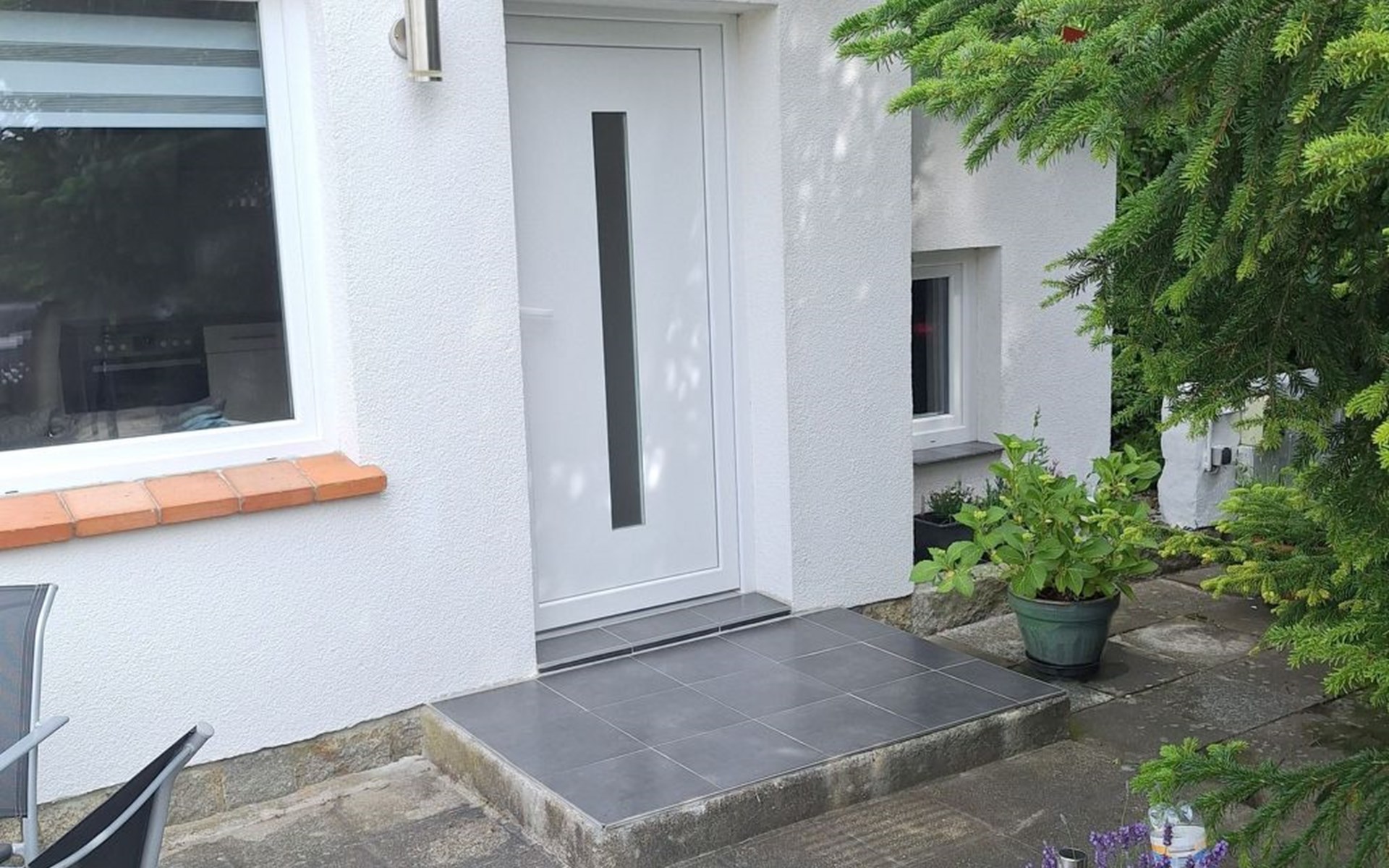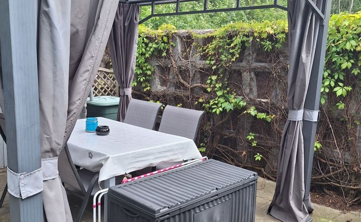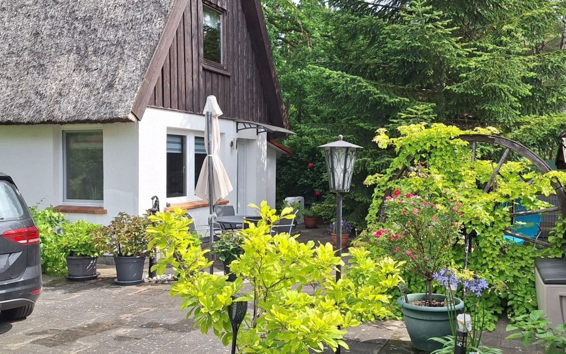 The holiday home is located on a spacious 1000m² plot right on the edge of the forest, where peace and relaxation are paramount. A large, covered terrace and a separate sun terrace are at your exclusive disposal. Both terraces are furnished and promise private hours in the open air. Barbecue fans have the option of using an electric barbecue. You can park your car right next to the holiday home.