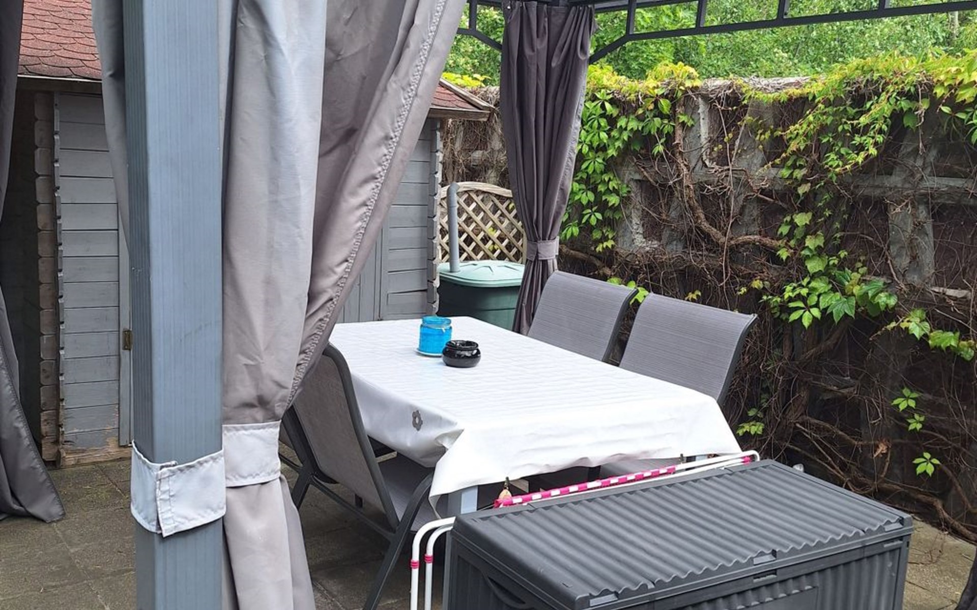 - completely enclosed (by wall, fence or hedge)