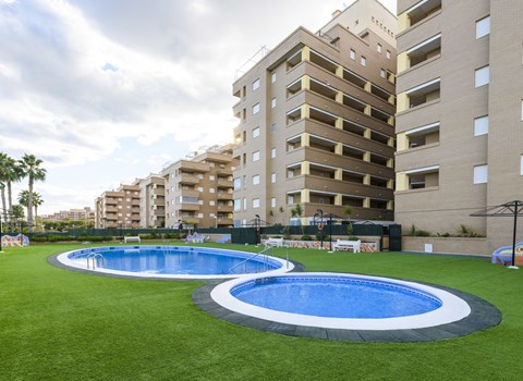 Your garden seating area surrounded by palm trees and cacti invites you to relax and unwind. A charcoal barbecue invites you to cosy barbecue evenings.