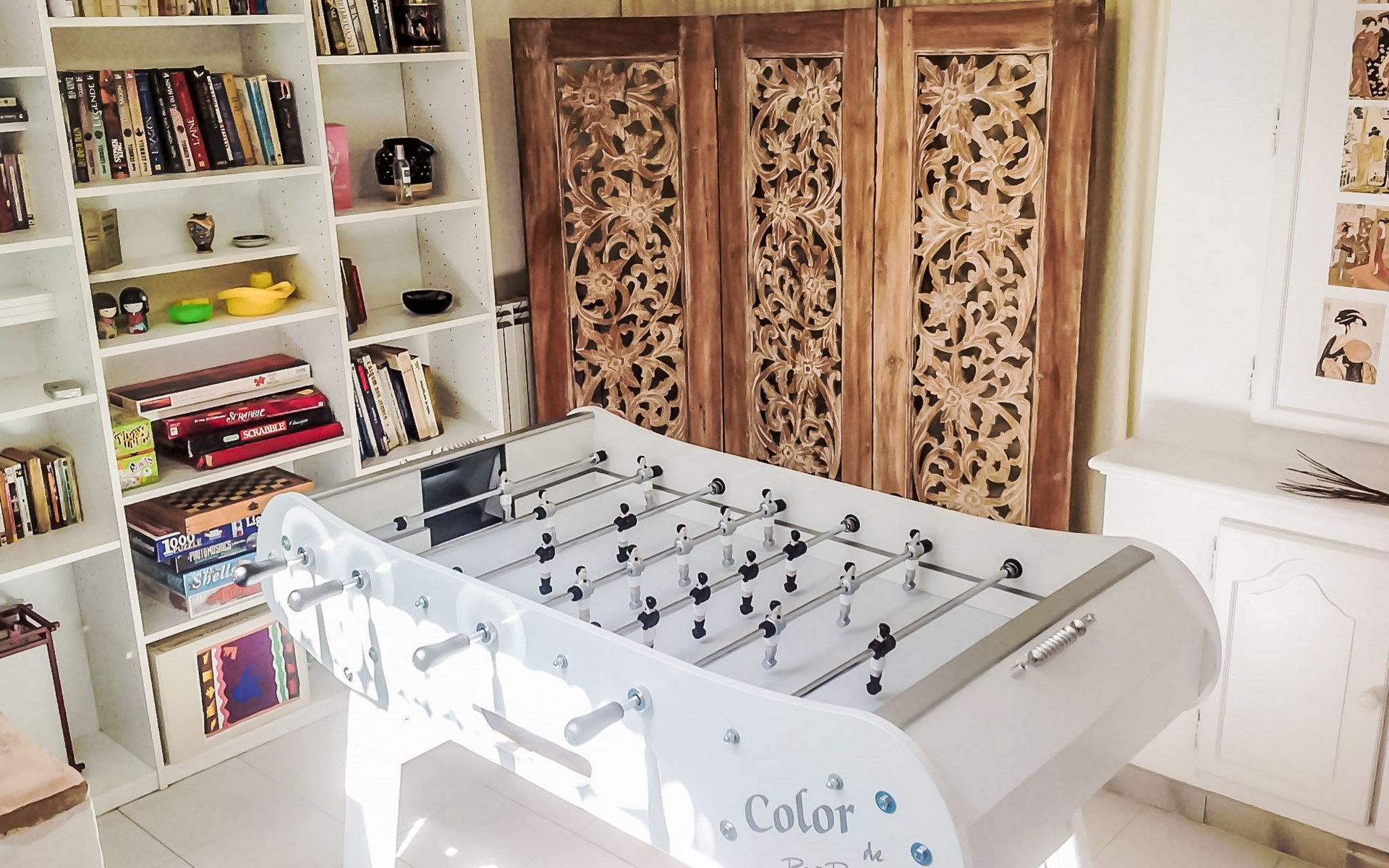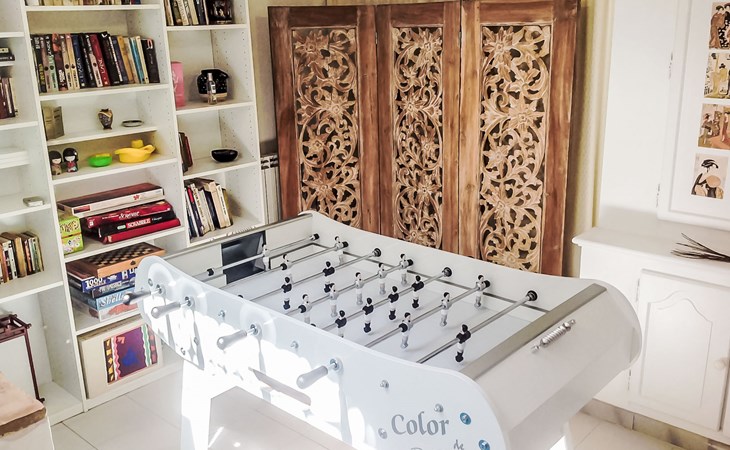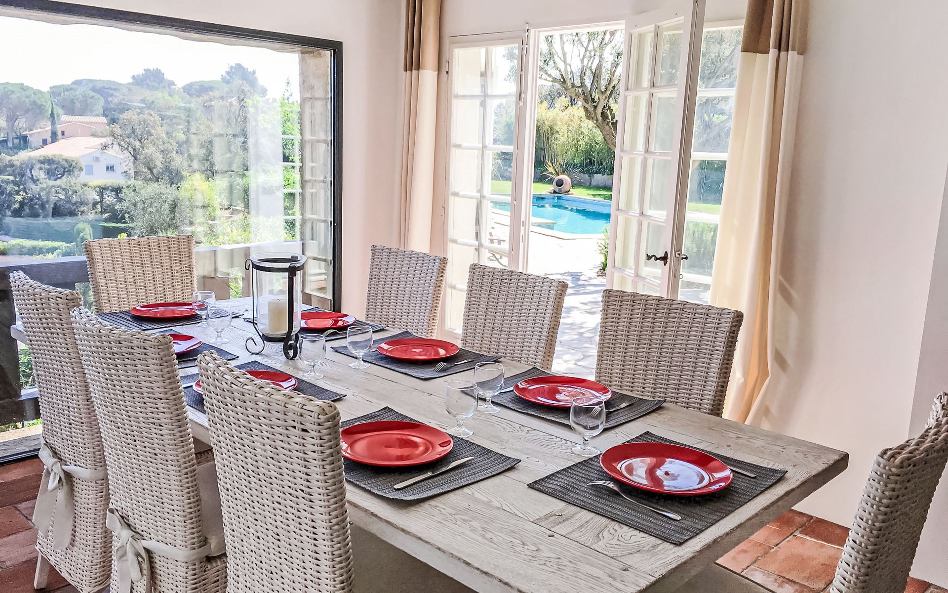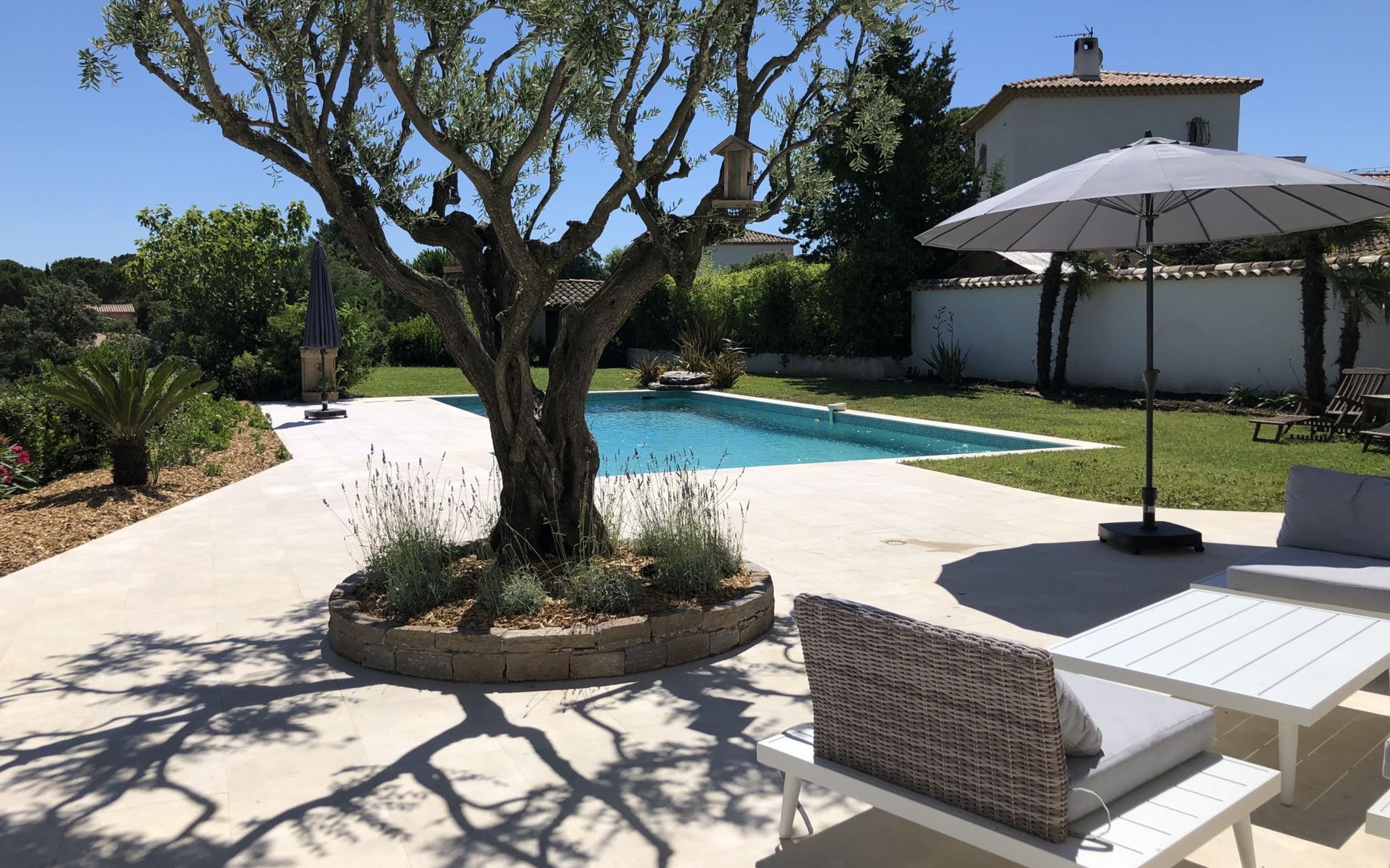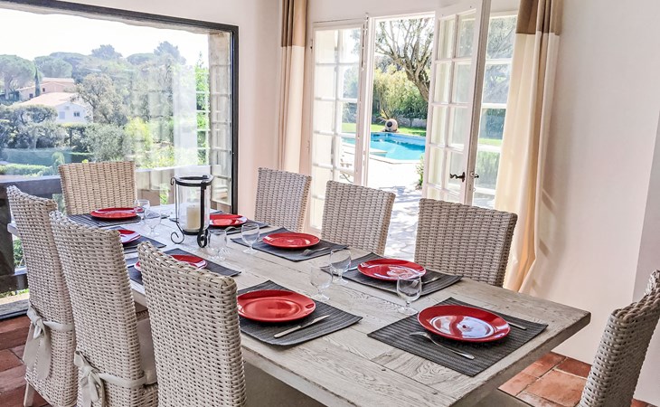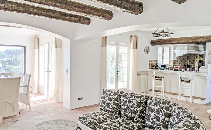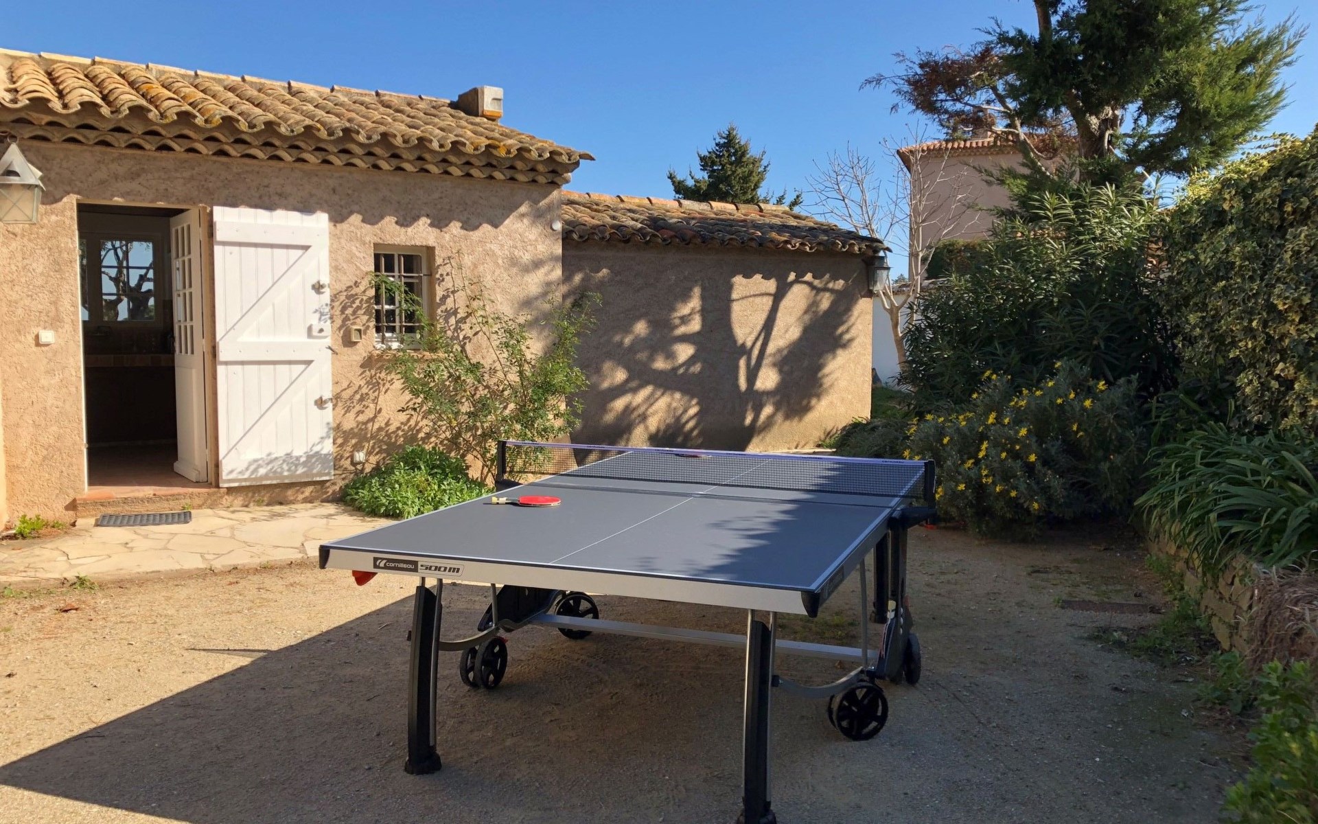 Very comfortable single-family house "La Canopée", 2 storeys. In the district of Sémaphore, in the resort 2 km from the centre of Sainte-Maxime, in a quiet position on top of a hill, in the residential district, 2 km from the sea, 2 km from the beach. Private: property 1'500 m2 (fenced) with flowers and trees, swimming pool (11 x 6 m, depth 220 cm, seasonal availability: 01.Jun. - 30.Sep.). Outdoor shower, pool house, table tennis, boules, terrace, garden furniture, barbecue, parking on the premises. Shop 2 km, supermarket 4 km, restaurant 2 km, bakery 2 km, pedestrian zone 2 km, bus stop 3 km, railway station "TGV Saint-Raphael" 20 km, ferry "Les Bateaux Verts Saint-Tropez" 2 km, sandy beach 2 km, thermal baths "Thalasso Spa Les Issambres" 7 km. Sports harbour 2 km, golf course (18 hole) 5 km, tennis 3 km. Nearby attractions: Aqualand Waterpark 4 km, Saint-Tropez, Ramatuelle 16 km, Port-Grimaud 10 km, Gorges du Verdon 75 km, Navette / shuttle boat St-Tropez 15min 2 km. Hiking paths: Massif de l'Esterel 25 km, Massif des Maures 10 km. Please note: car recommended. Residence with electric gates. The keys‘ handover takes place by the agency Interhome in Sainte-Maxime.
