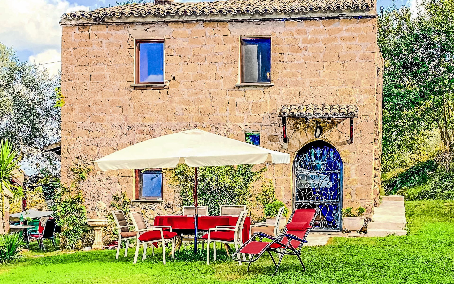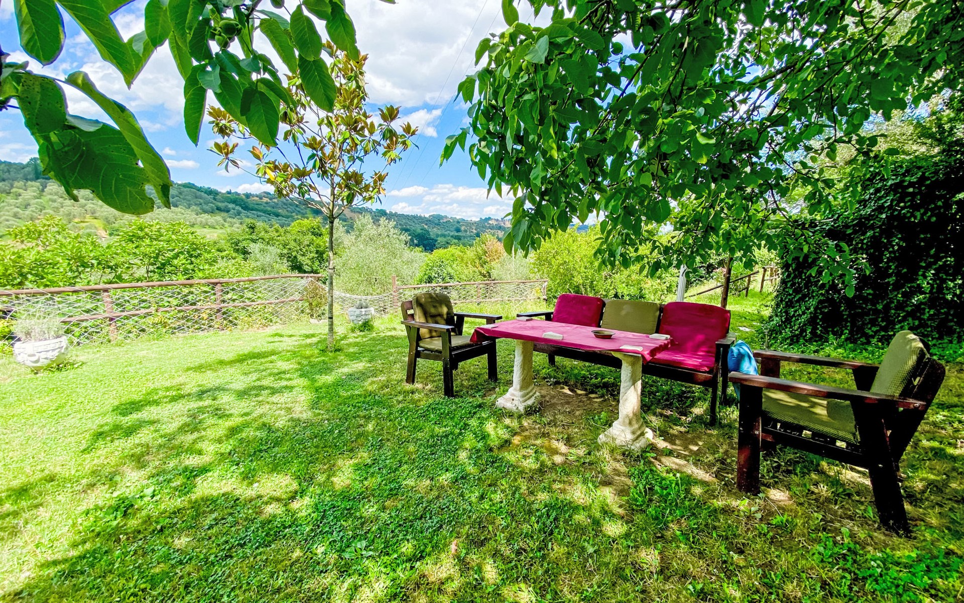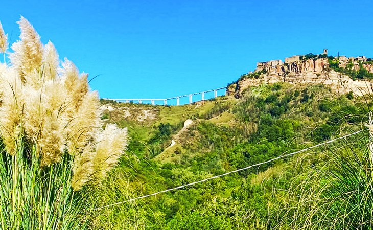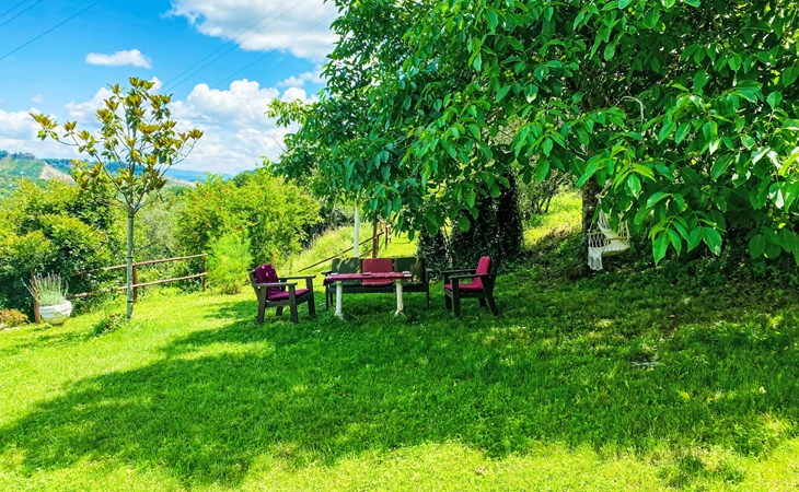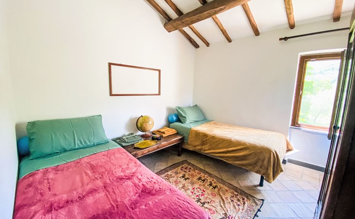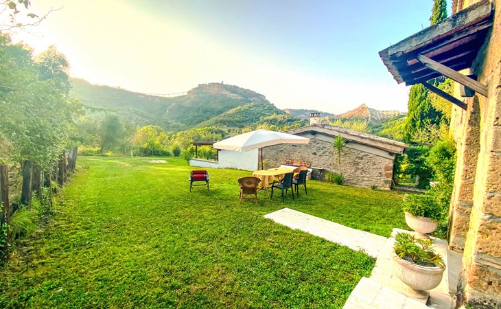 Cosy, comfortable country house "Dimora Bella Civita", detached, surrounded by fields. 5 km from the centre of Bagnoregio, in a secluded position. For shared use: property 2 ha (fenced). Private: natural garden 1'000 m2. Garden furniture, barbecue. Motor access (500 m via unmade road). Parking on the premises. Shop 5 km, grocery 5 km, shopping centre 5 km, restaurant 5 km, bus stop 500 m, lake Bolsena 17 km. Nearby attractions: Bolsena 17 km, Montefiascone 18 km, Orvieto 21 km, Marta 28 km, Capodimonte 30 km, Viterbo 30 km. Please note: car recommended. The owner lives on the same property. Owner lives in separate semi-detached house.