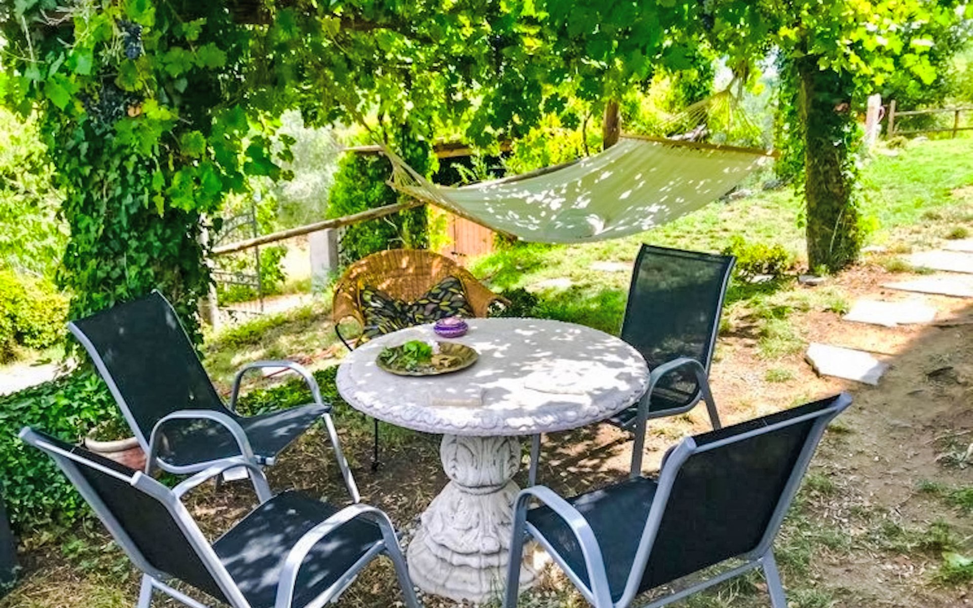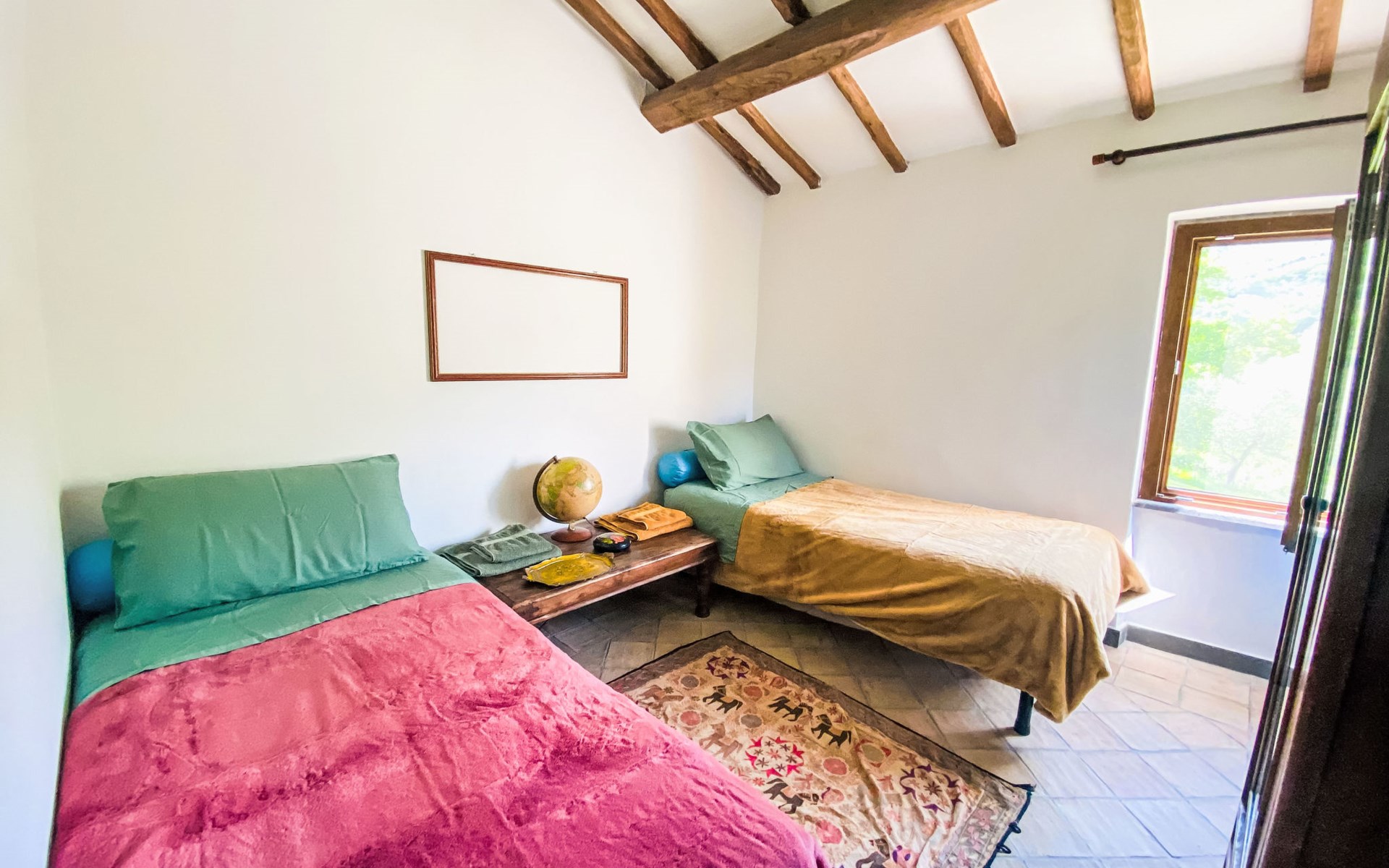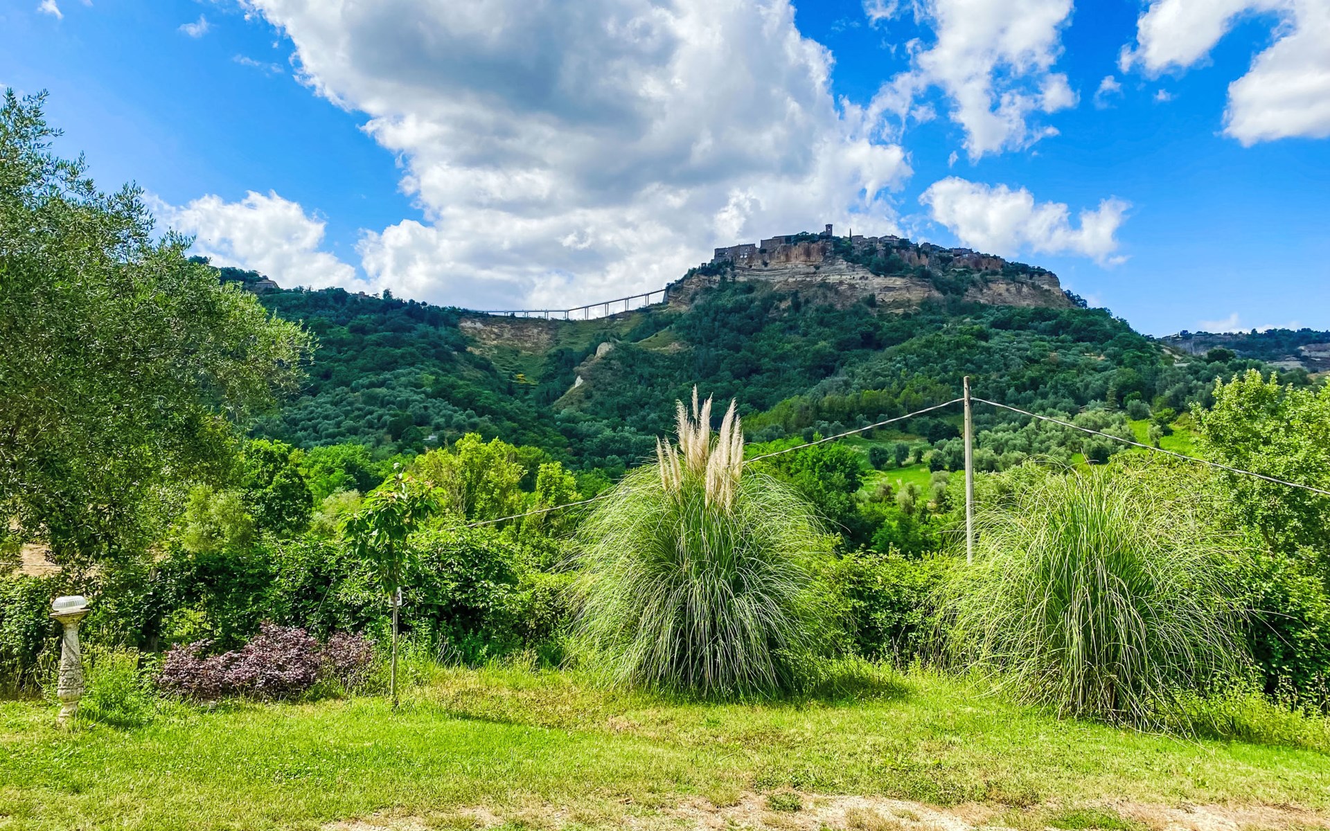 Cosy, comfortable country house "Dimora Bella Civita", detached, surrounded by fields. 5 km from the centre of Bagnoregio, in a secluded position. For shared use: property 2 ha (fenced). Private: natural garden 1'000 m2. Garden furniture, barbecue. Motor access (500 m via unmade road). Parking on the premises. Shop 5 km, grocery 5 km, shopping centre 5 km, restaurant 5 km, bus stop 500 m, lake Bolsena 17 km. Nearby attractions: Bolsena 17 km, Montefiascone 18 km, Orvieto 21 km, Marta 28 km, Capodimonte 30 km, Viterbo 30 km. Please note: car recommended. The owner lives on the same property. Owner lives in separate semi-detached house.