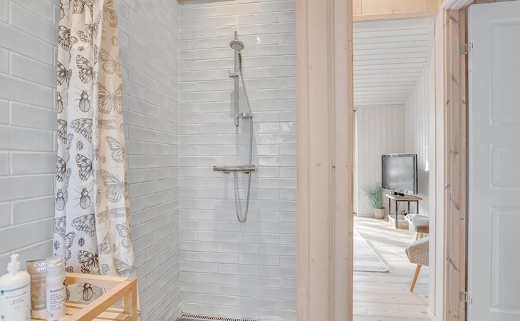 Single-family house, built in 2020. 50 m from the sea. For shared use: garden. Private: natural state property 1'307 m2, garden (fenced). Outdoor shower, barbecue, children's playground (swing). In the house: sauna, washing machine. Parking at the house. Grocery 4 km. The owner does not accept any youth groups.