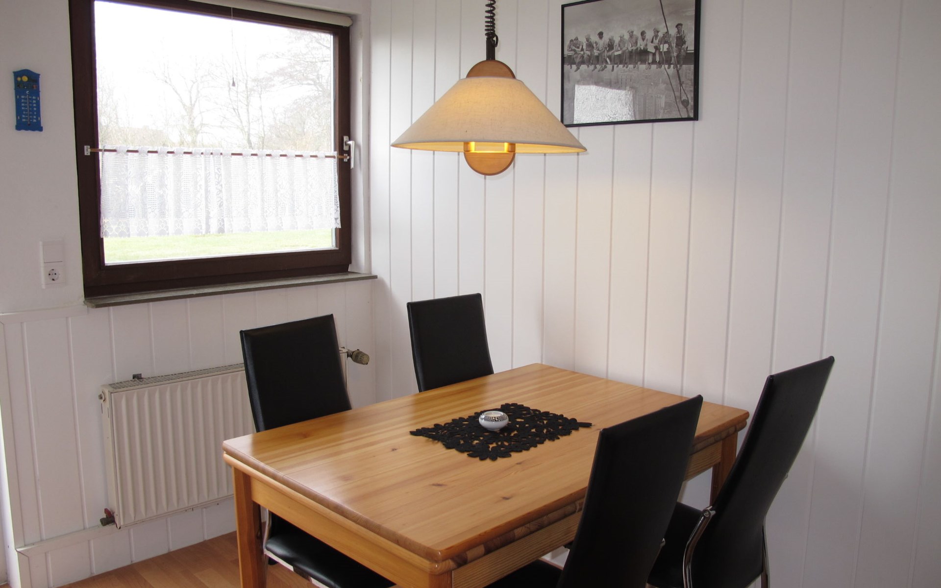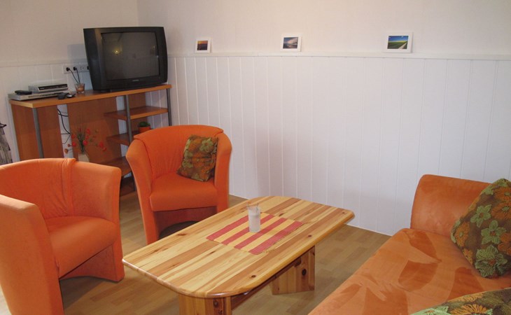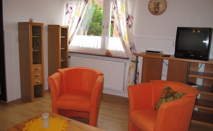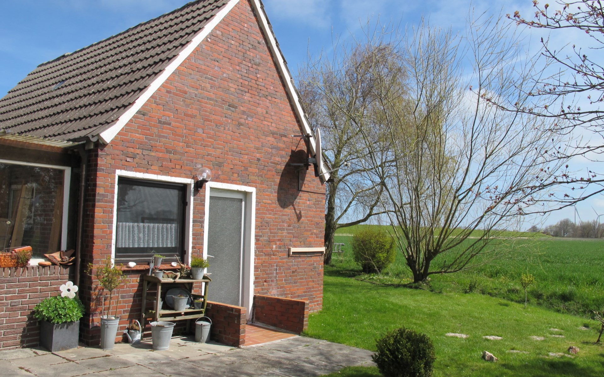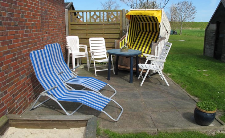 Small single-family house "Osterkamp". 150 m from the centre of Friederikensiel, on the outskirts, 4 km from the centre of Hohenkirchen, 8 km from the centre of Horumersiel, 2 km from the sea, in a cul-de-sac. For shared use: property, garden (not fenced) with lawn. In the house: central heating system. Parking at the house. Supermarket 4 km, bus stop 300 m, railway station "Jever" 15 km, sandy beach "Harlesiel" 9 km, outdoor swimming pool 9 km, indoor swimming pool 10 km. Golf course (18 hole) 32 km.