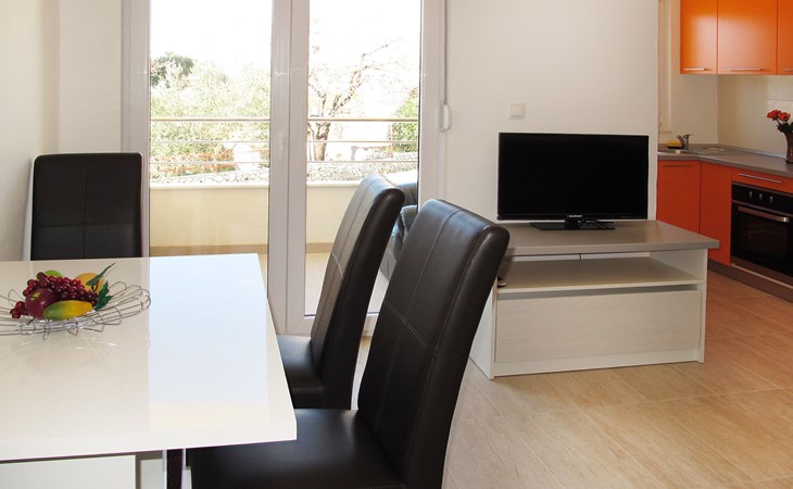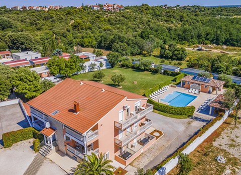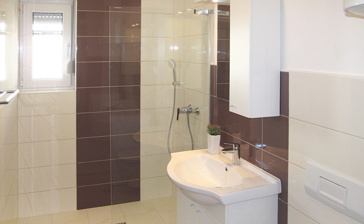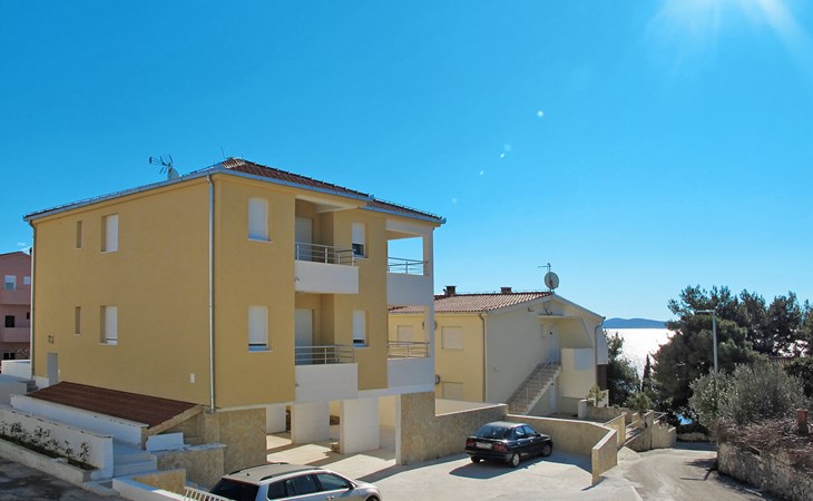 Okrug Gornji (Čiovo): Apartment house "Andjelka". 1 km from the centre of Okrug Gornji, 5 km from the centre of Trogir, on a slope, 200 m from the sea, 200 m from the beach. For shared use: property 600 m2. In the house: internet access. Parking on the premises. Shop 200 m, supermarket 1 km, bus stop 1.5 km, pebble beach, rocky beach 200 m.