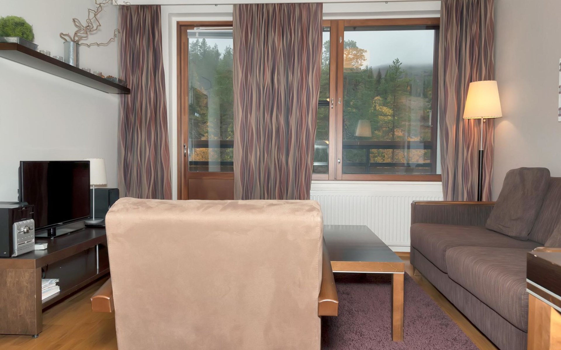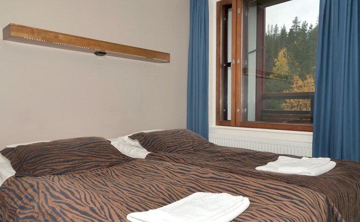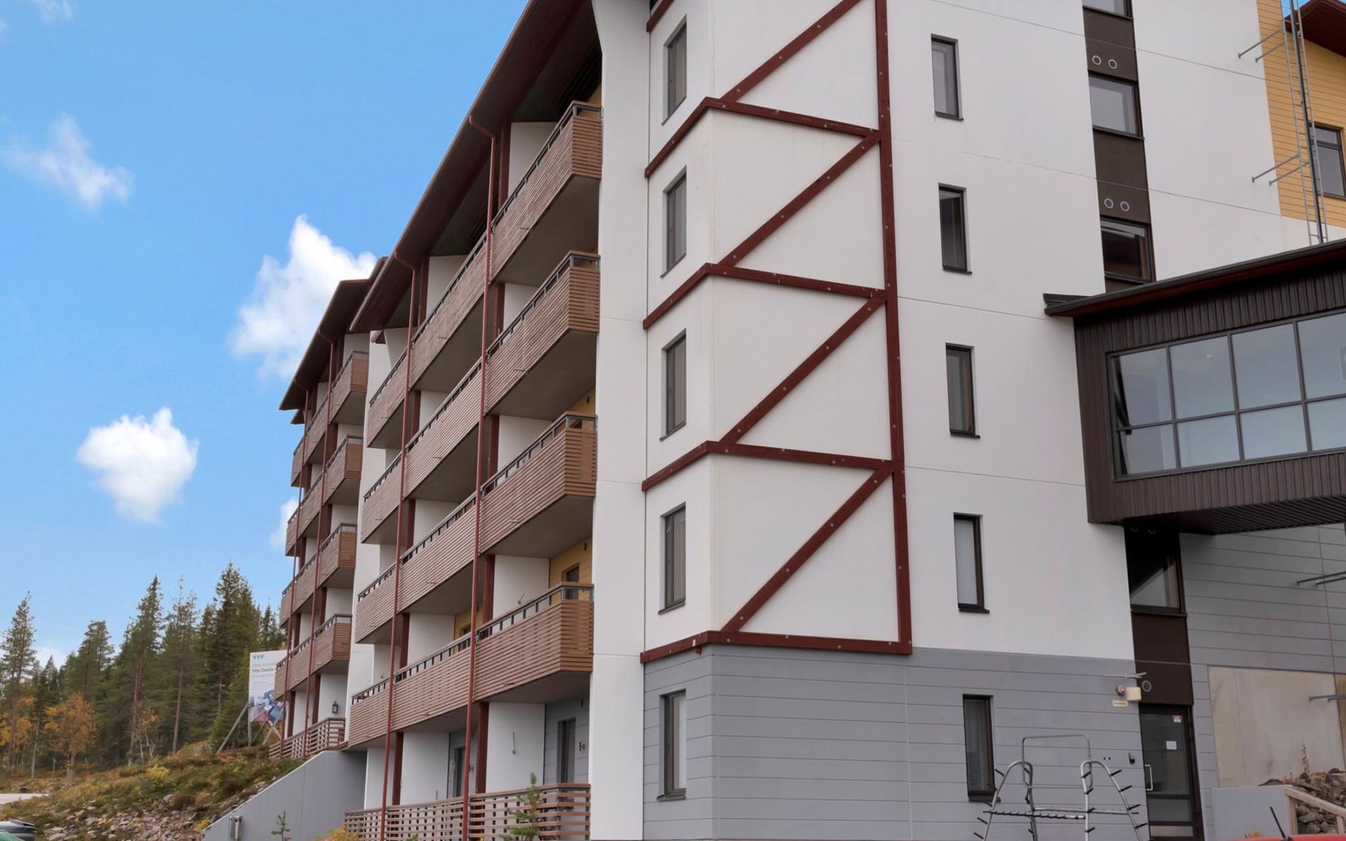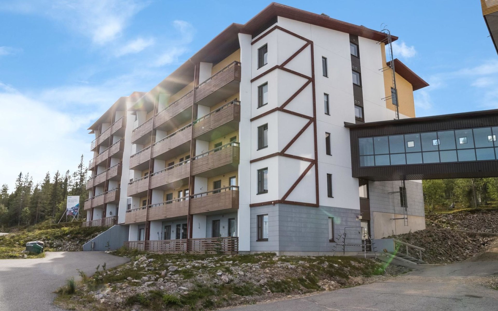 View of Ylläs fell, ski maintenance space, lockable ski storage.