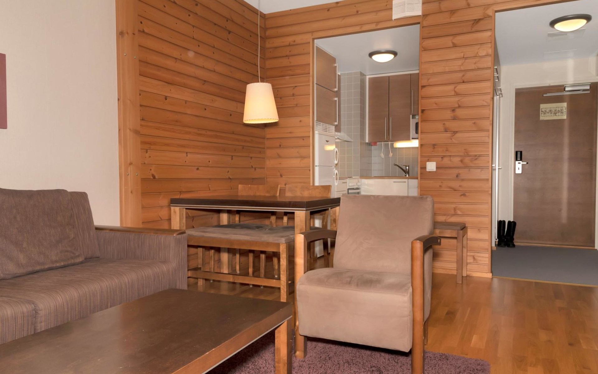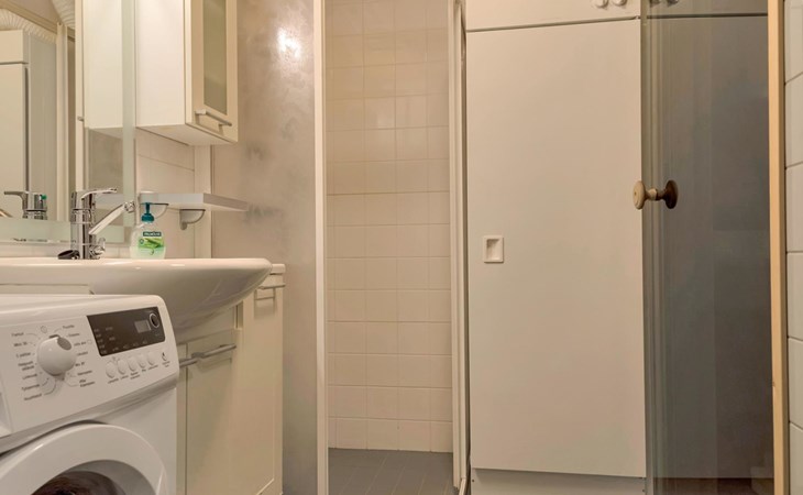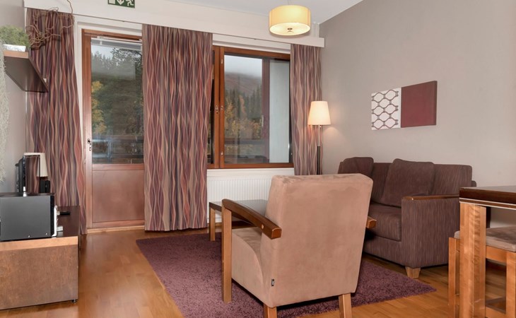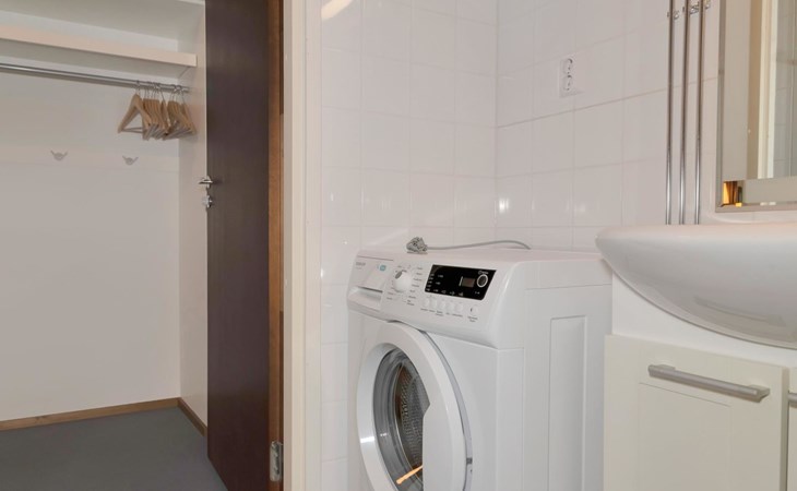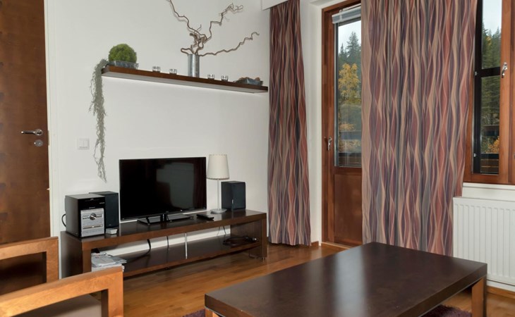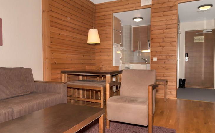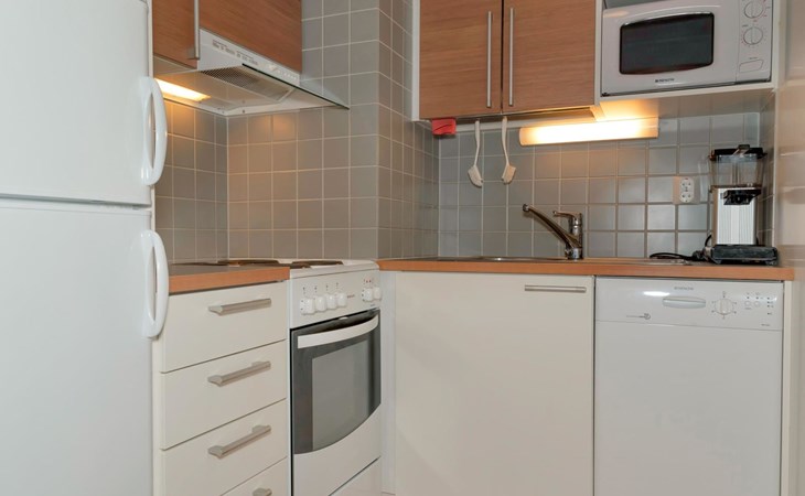 Livingroom/kitchen with a bed sofa, one bedroom with double bed. Table ware and table for four persons. Sauna, washingroom/toilet.