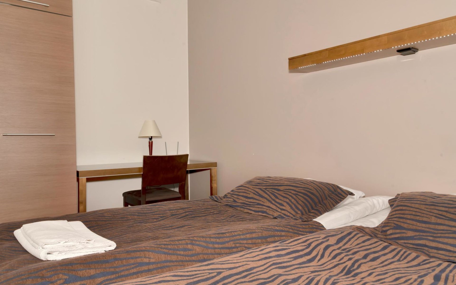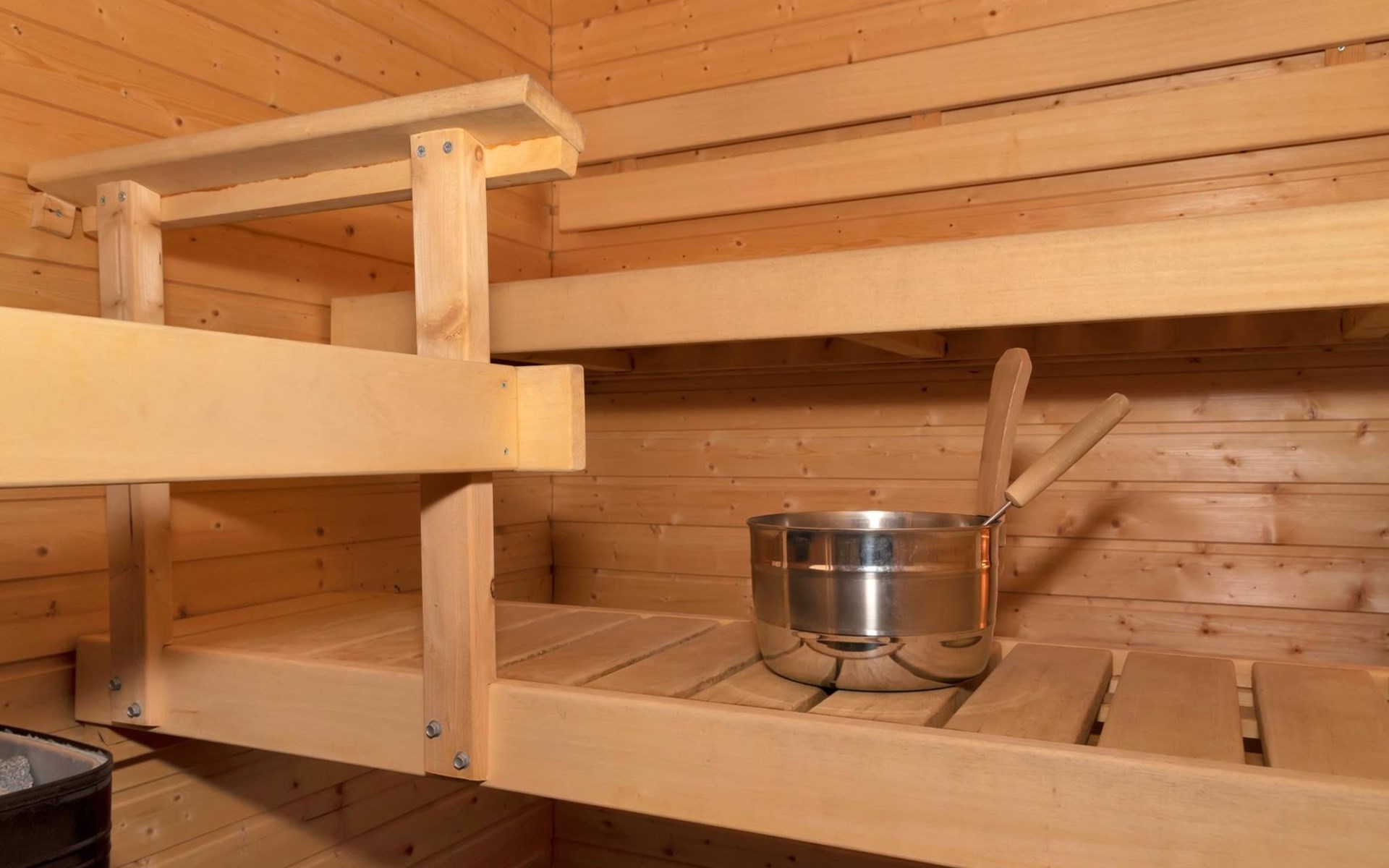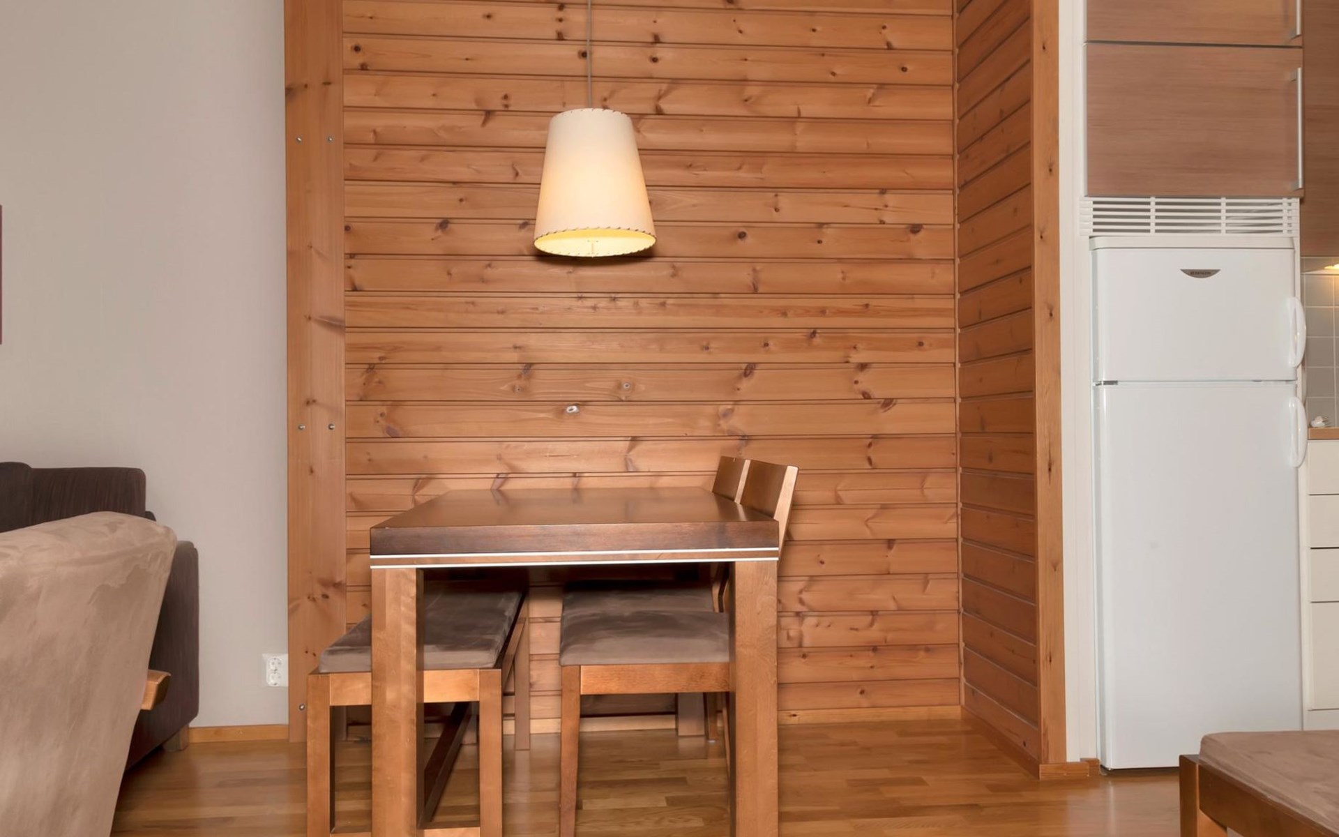 Livingroom/kitchen with a bed sofa, one bedroom with double bed. Table ware and table for four persons. Sauna, washingroom/toilet.