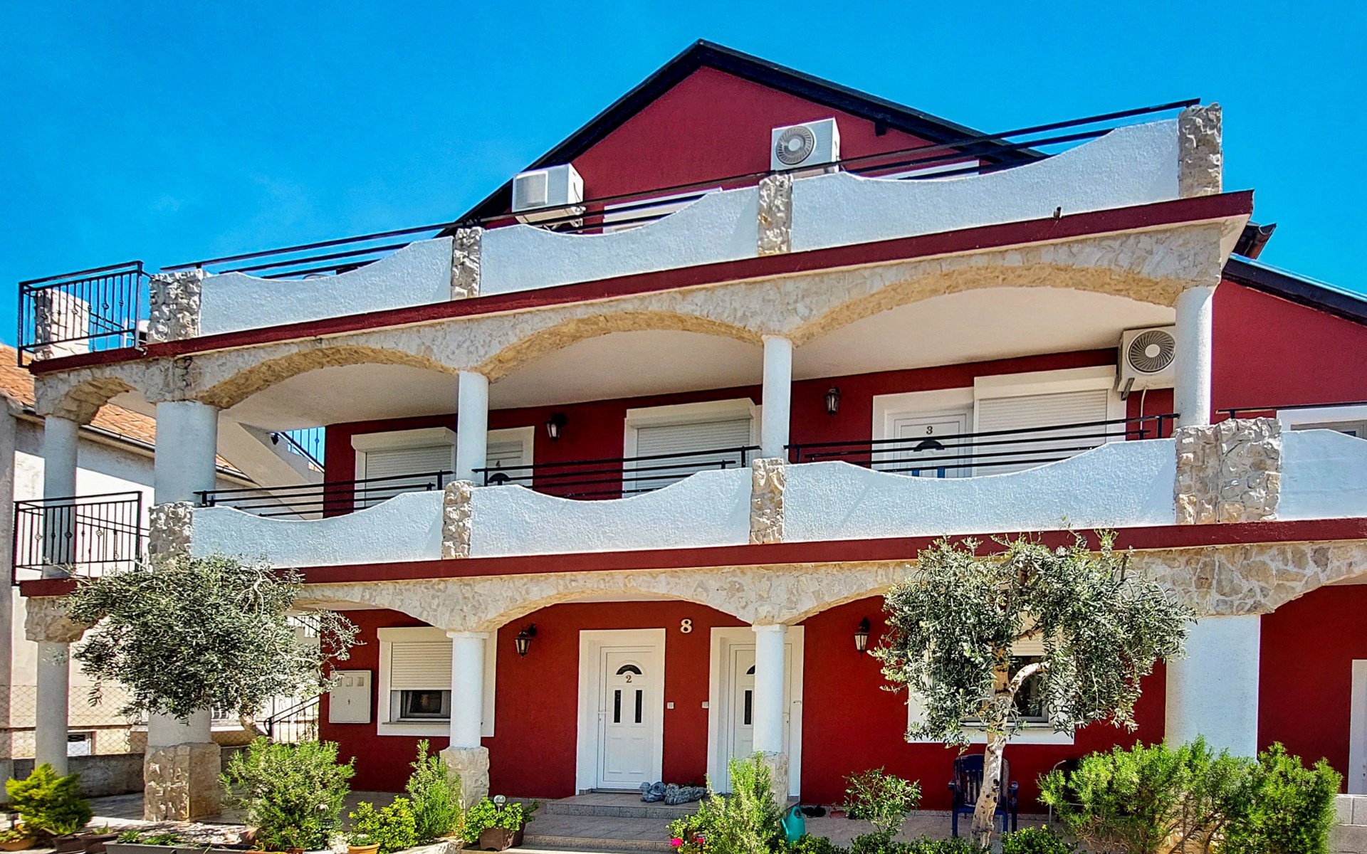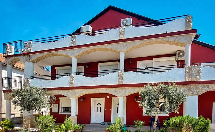 Apartment block "Josip". 2.5 km from the centre of Vodice, 700 m from the centre of Tribunj, 300 m from the sea, 300 m from the beach, in a cul-de-sac. For shared use: barbecue. In the house: internet access, washing machine (for shared use, extra). Parking at 250 m. Shop 400 m, supermarket 2.5 km, restaurant 3 km, bus stop "Tribunj" 700 m, pebble beach 300 m.