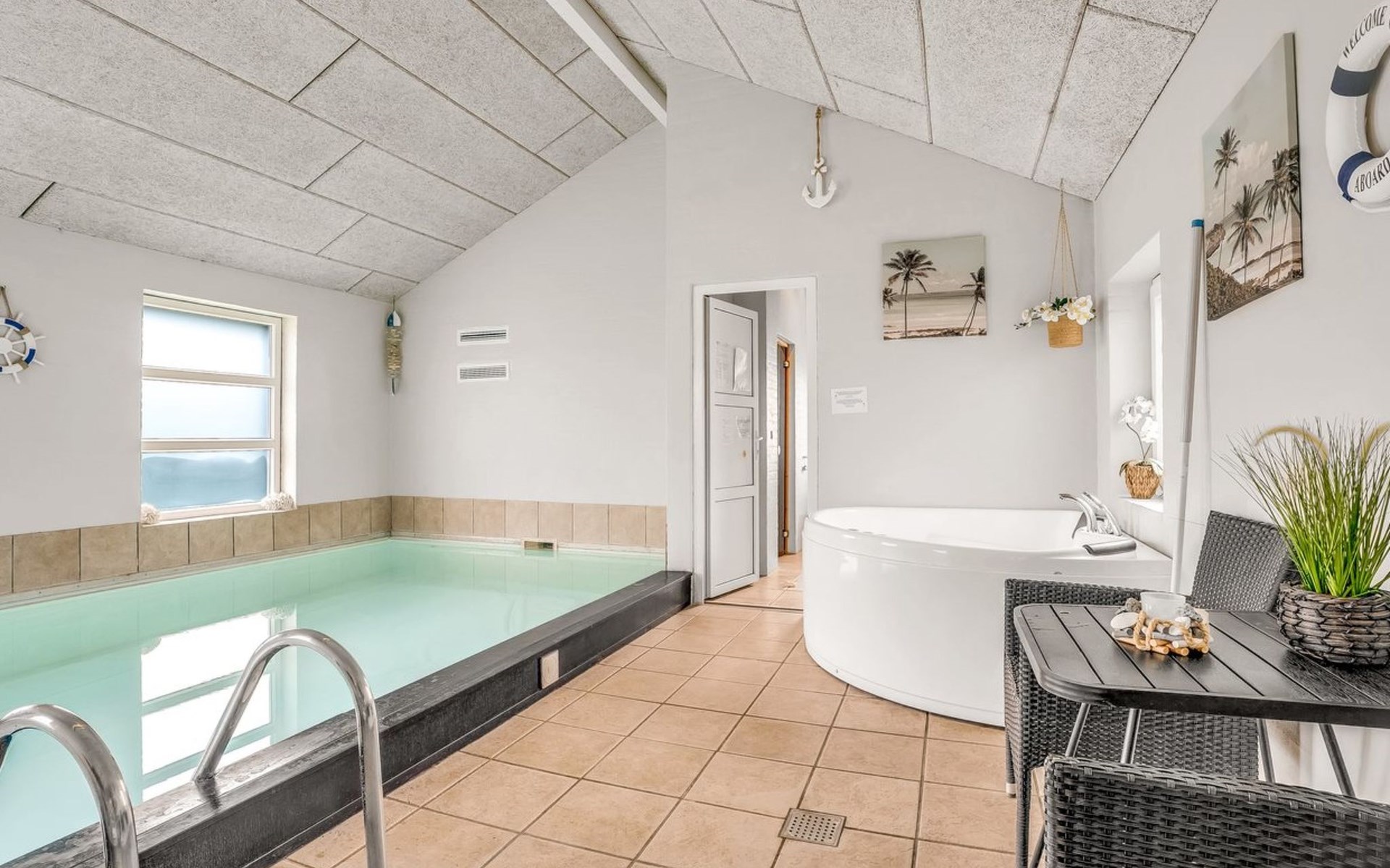 Single-family house, built in 1989. 800 m from the sea. For shared use: garden. Private: property 1'186 m2, well-kept garden (fenced), indoor pool (3 x 6 m, 18 m2, depth 135 - 135 cm). Barbecue, children's playground (swing). In the house: sauna, trampoline, washing machine, tumble dryer. Parking at the house. Grocery 1.2 km. Golf course 3 km. The owner does not accept any youth groups.