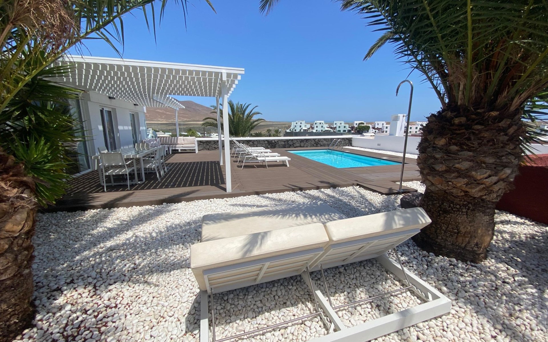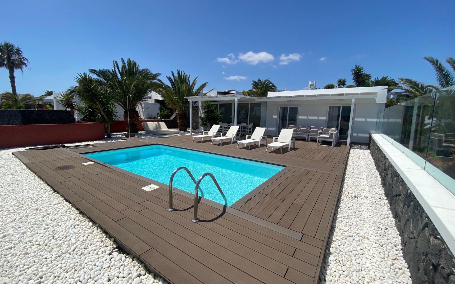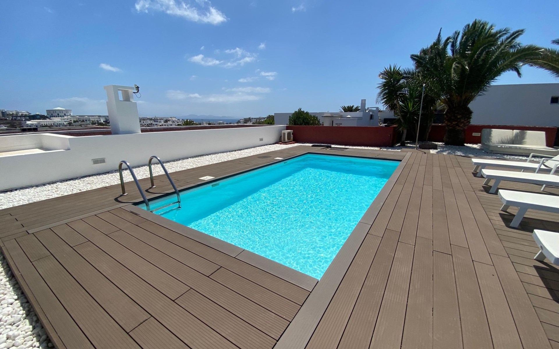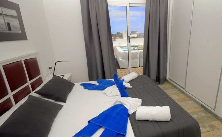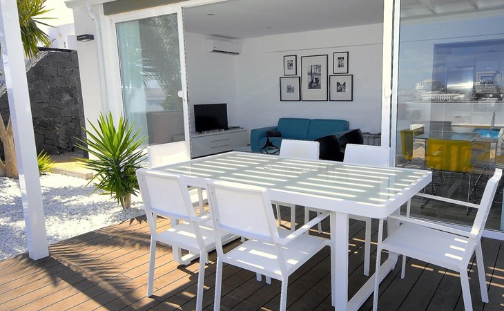 Beautiful terraced house "Maria". 450 m from the sea, 450 m from the beach. Private: property 100 m2, swimming pool angular, heated (5 x 3 m, seasonal availability: 01.Jan. - 31.Dec.). Barbecue. Stepped path (14 steps) to the house. Supermarket 350 m, bus stop "Las Coloradas" 75 m, sandy beach "Playa Blanca" 450 m. Nearby attractions: Paque acĂșatico Agualava 650 m. Please note: car recommended.