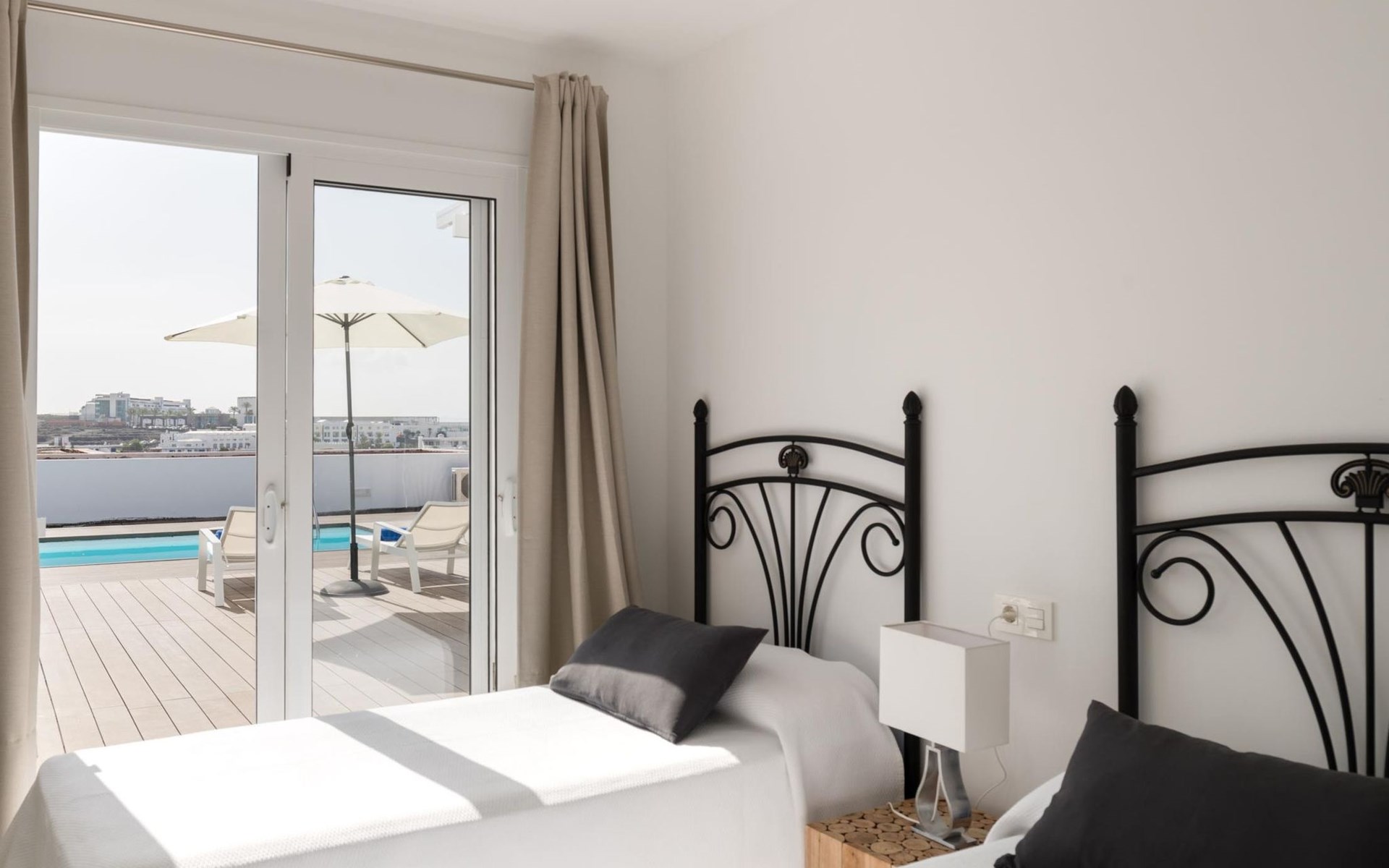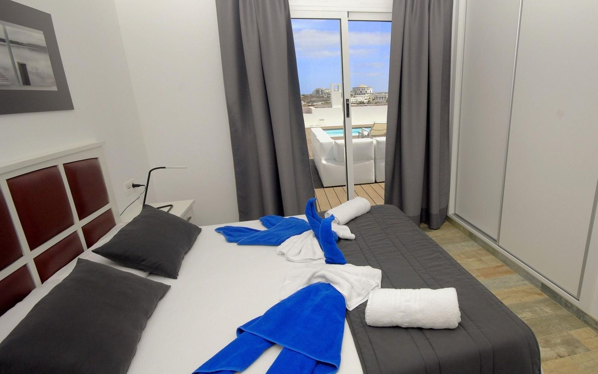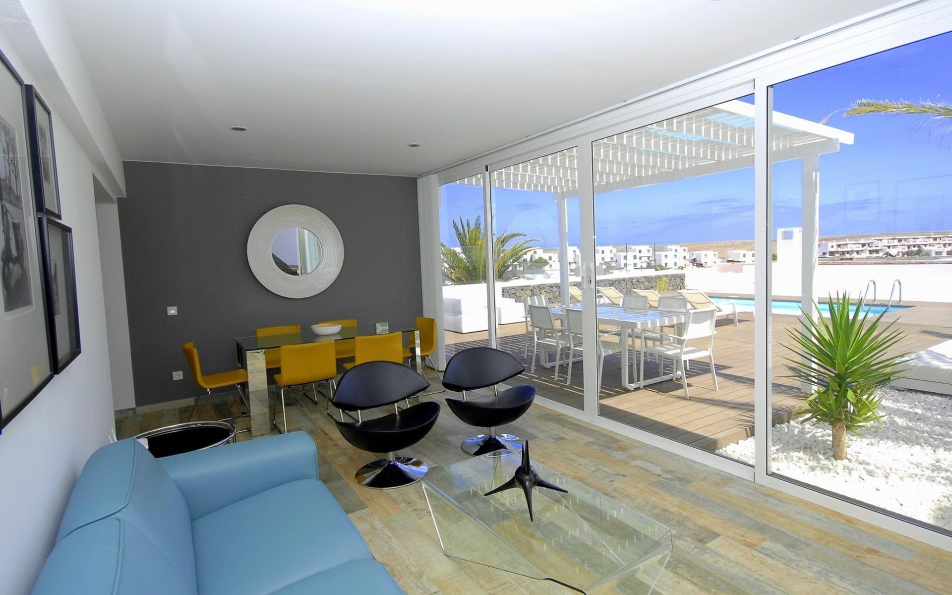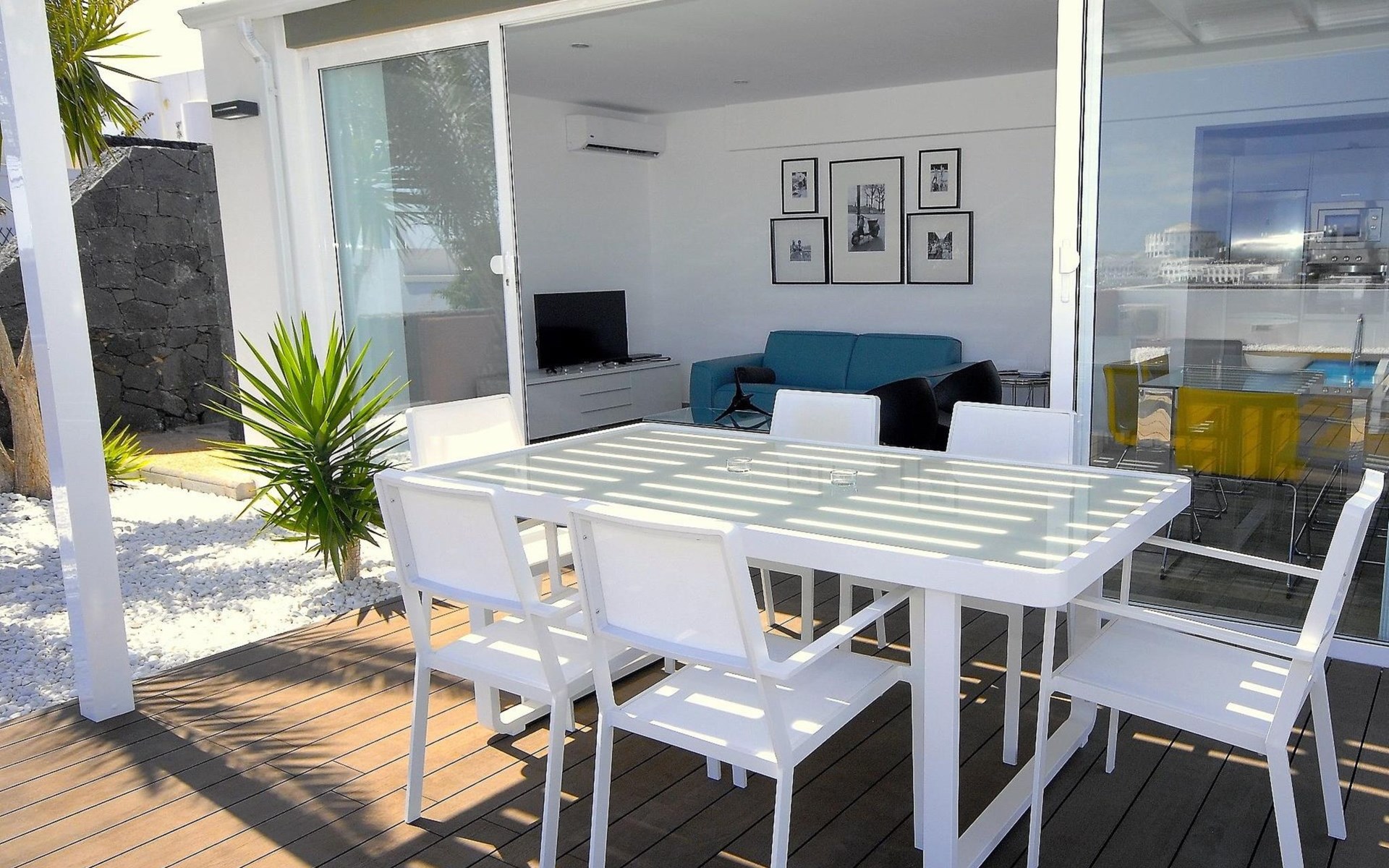 Beautiful terraced house "Maria". 450 m from the sea, 450 m from the beach. Private: property 100 m2, swimming pool angular, heated (5 x 3 m, seasonal availability: 01.Jan. - 31.Dec.). Barbecue. Stepped path (14 steps) to the house. Supermarket 350 m, bus stop "Las Coloradas" 75 m, sandy beach "Playa Blanca" 450 m. Nearby attractions: Paque acĂșatico Agualava 650 m. Please note: car recommended.