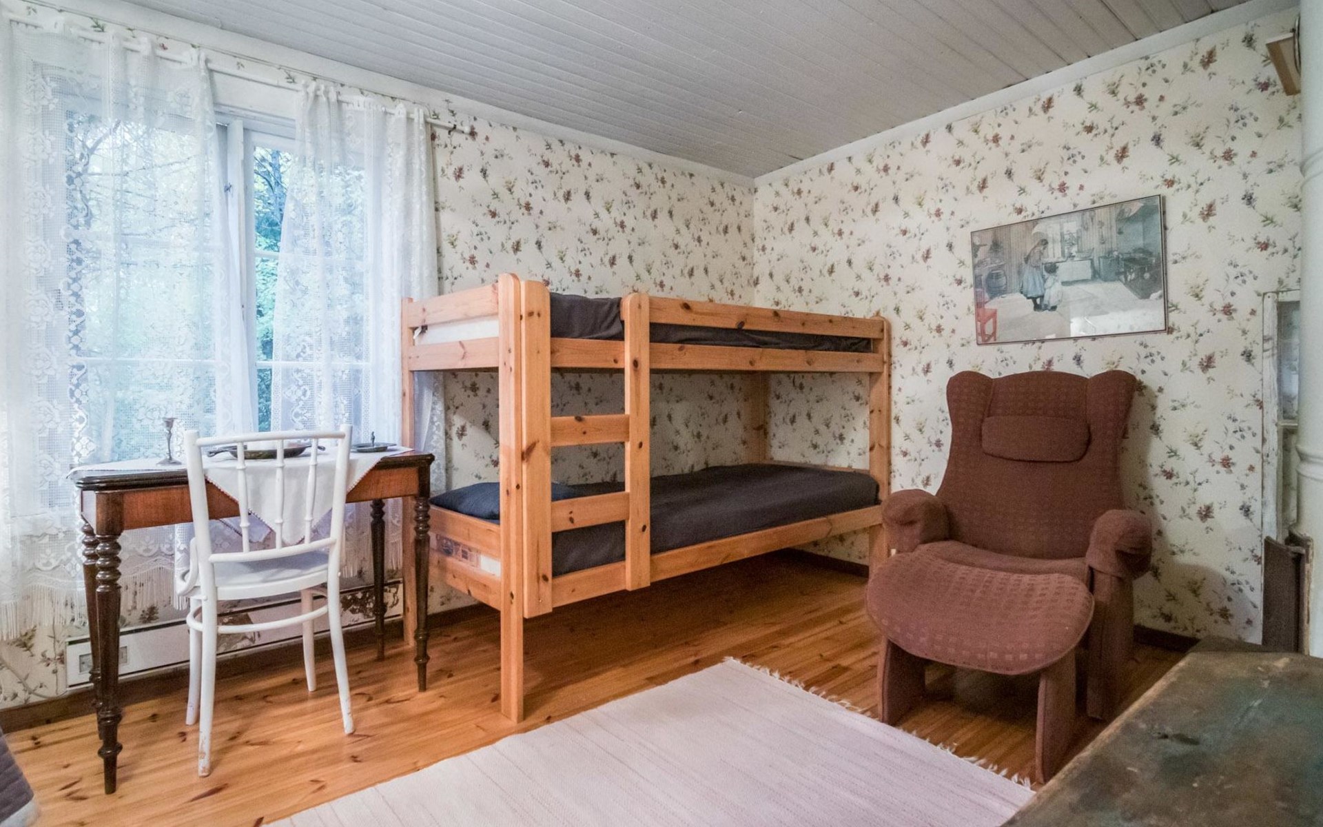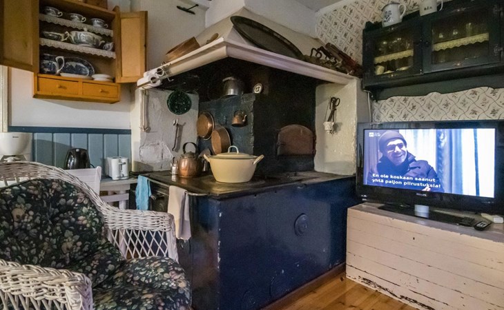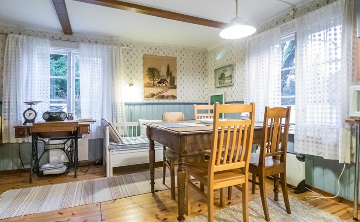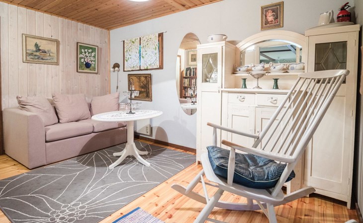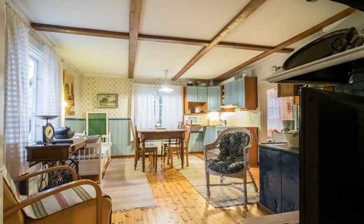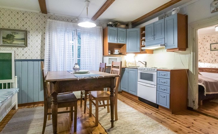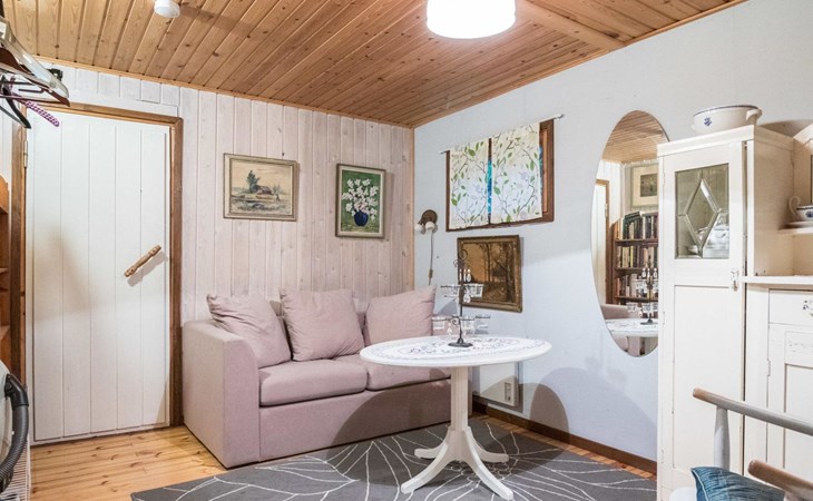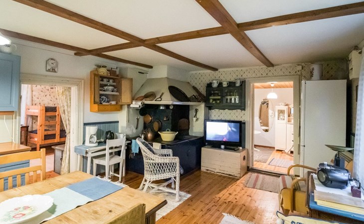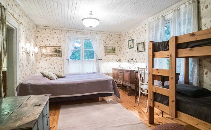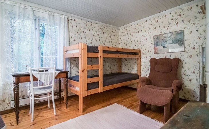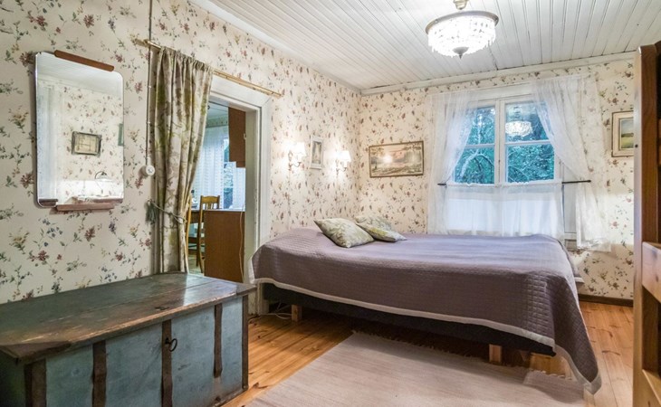 Log cottage 1890, renovated 2005, living room/kitchen 1 extra bed, bedroom 1 bed and a bunk, hall room 2 extra beds, sauna (electric stove), dressing room, glazed porch.