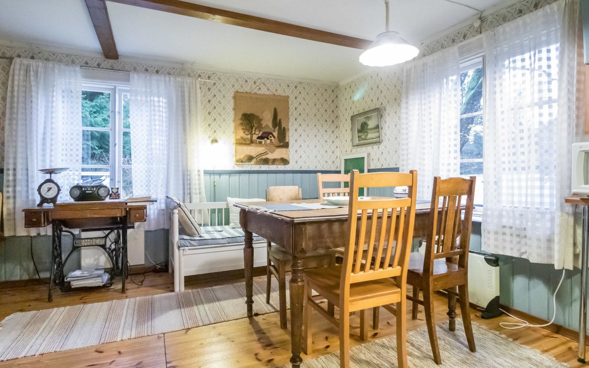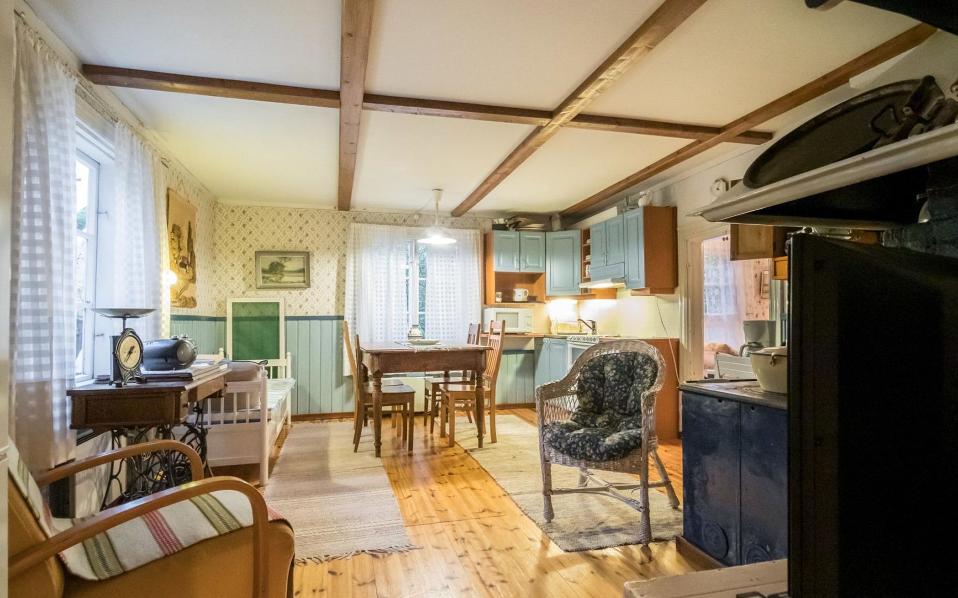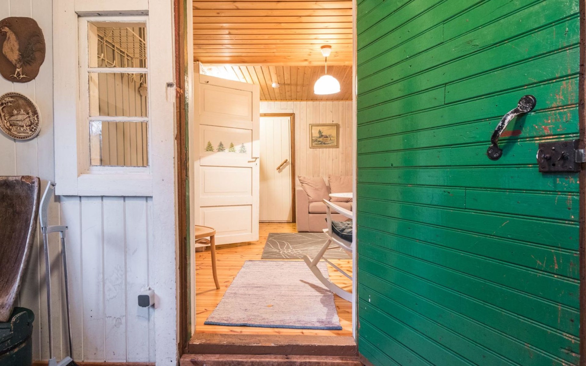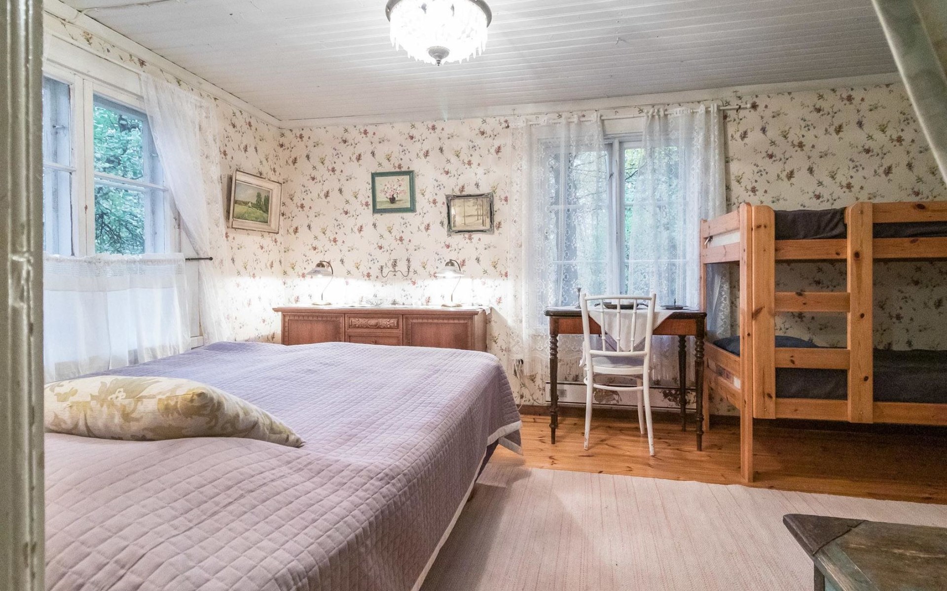 Log cottage 1890, renovated 2005, living room/kitchen 1 extra bed, bedroom 1 bed and a bunk, hall room 2 extra beds, sauna (electric stove), dressing room, glazed porch.