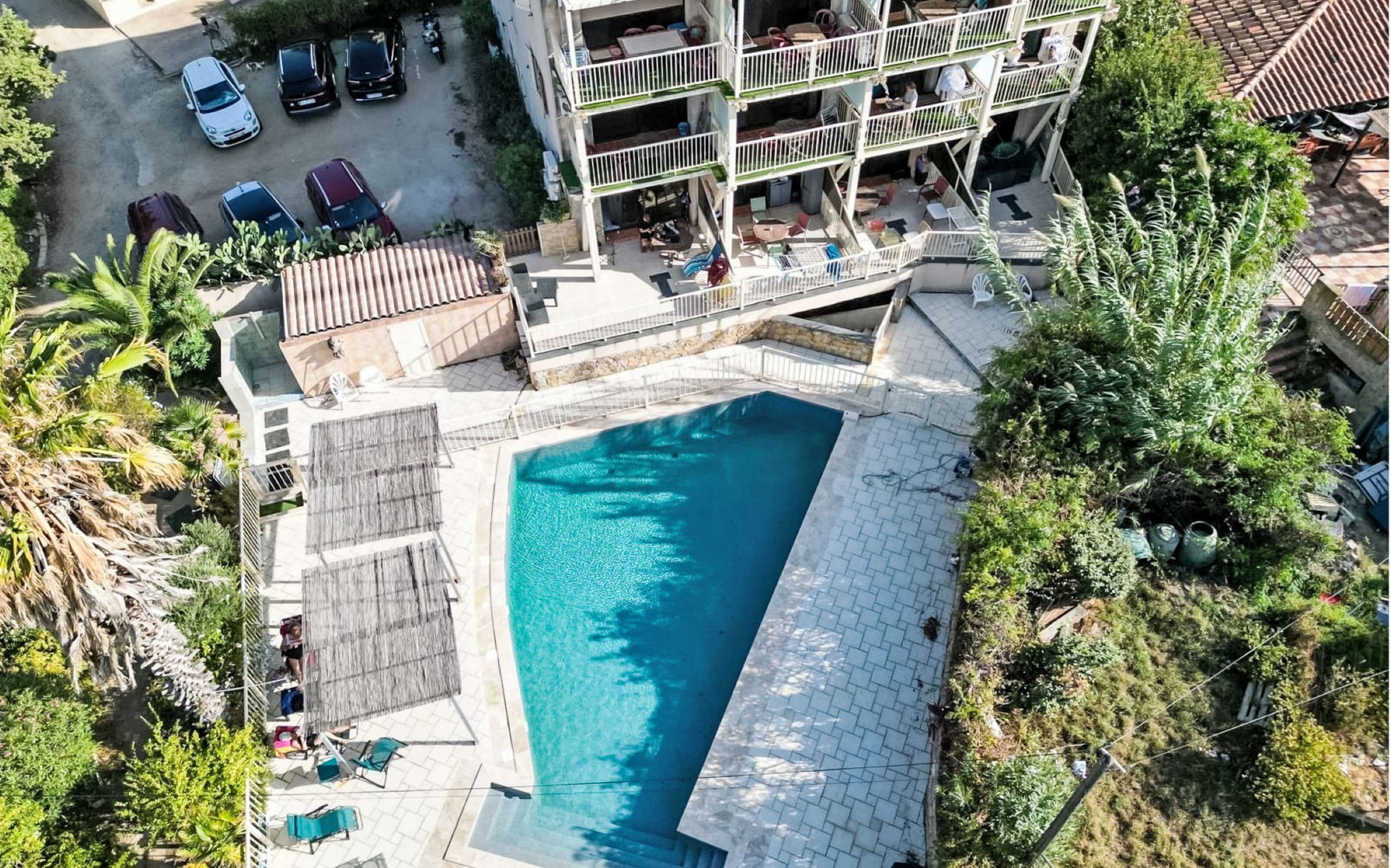 Simple residence "Résidence Posidonie", 3 storeys. 2 houses in the residence. 13 apartments in the residence. 500 m from the centre of L´Ile Rousse, 24 km from the centre of Calvi, 68 km from the centre of Bastia, in the residential district, 50 m from the sea, 50 m from the beach, direct access to the beach. For shared use: property with trees, swimming pool fenced (11 x 6 m, seasonal availability: 08.Apr. - 07.Oct.). Outdoor shower, parking (limited number of spaces) on the premises. Shop 500 m, supermarket 2 km, restaurant, café 500 m, bus stop 600 m, railway station 1.5 km, sandy beach "L'Ile Rousse" 50 m. Please note: car recommended. The owner lives on the same property. Railway line 15 m from the property.