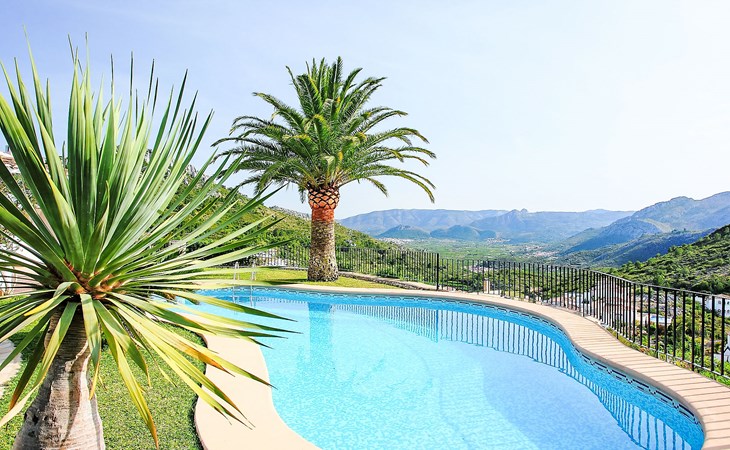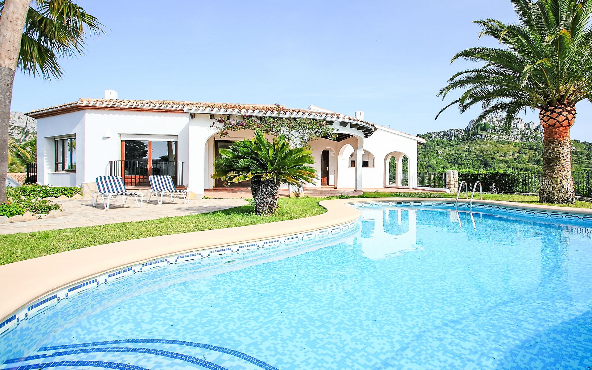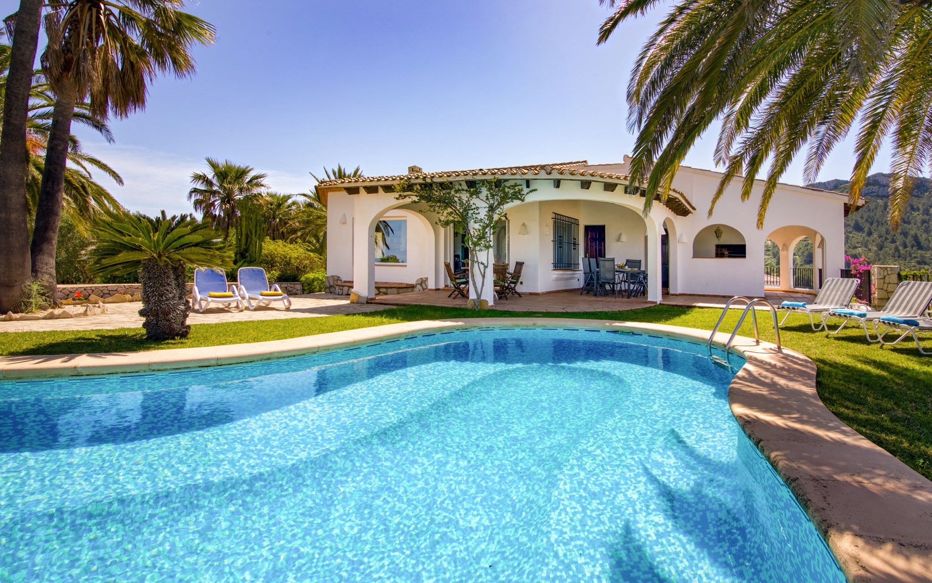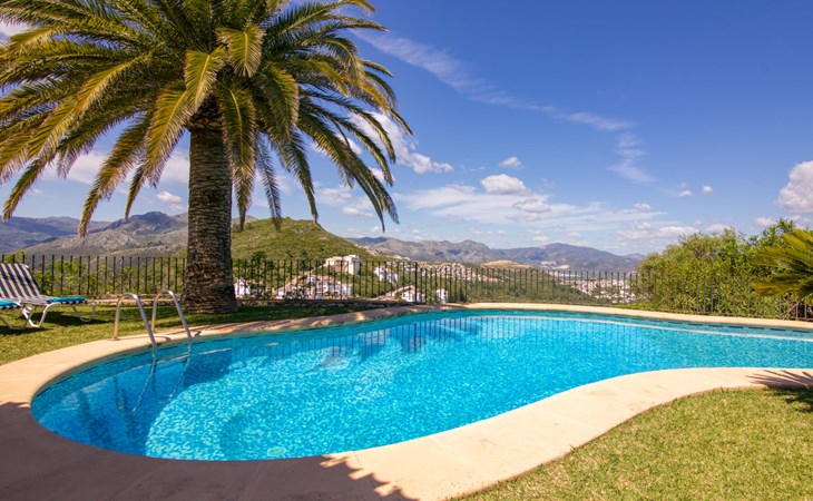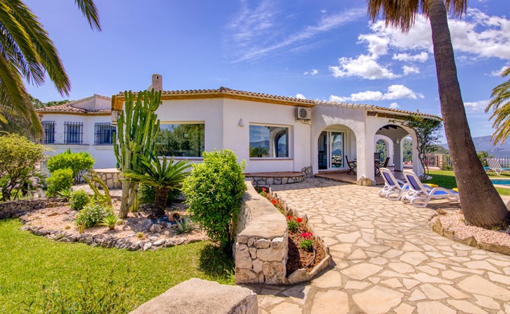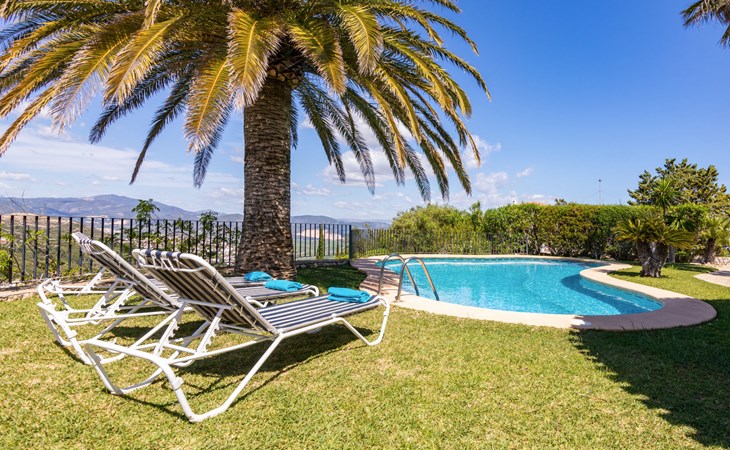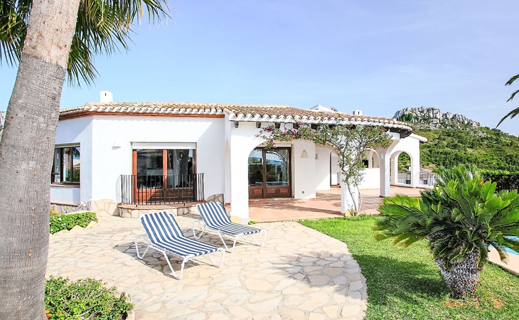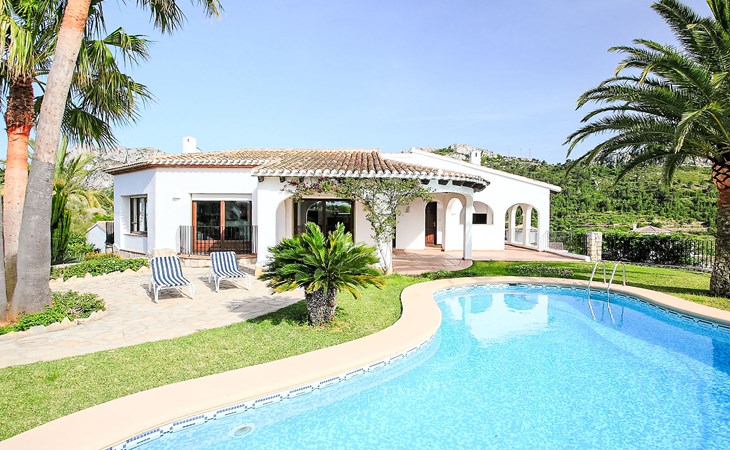 Very beautiful, cosy villa "Paraje De Libertad". In the district of Monte Pego, in a quiet, sunny position on top of a hill, 8 km from the sea, in a cul-de-sac. Private: large, beautiful, well-kept garden (fenced) with lawn 3'500 m2 flowers, swimming pool with privacy (5 x 10 m, seasonal availability: 01.Jan. - 31.Dec.) with internal staircase. Outdoor shower. In the house: central heating system. Stepped path (22 steps) to the house. Parking on the premises. Shop 5 km, supermarket 5 km, shopping centre 12 km, restaurant 1 km, café 500 m, bus stop 9 km, sandy beach 8 km. Golf course (18 hole) 12 km, tennis 1 km. The owner does not accept any youth groups.