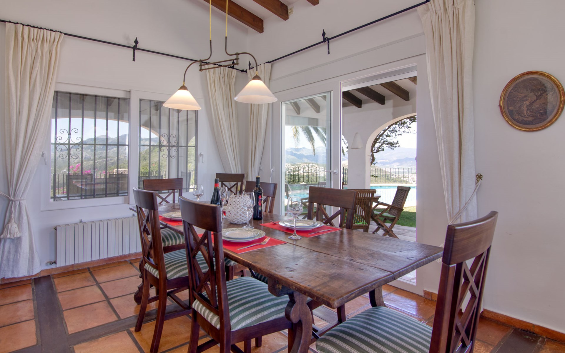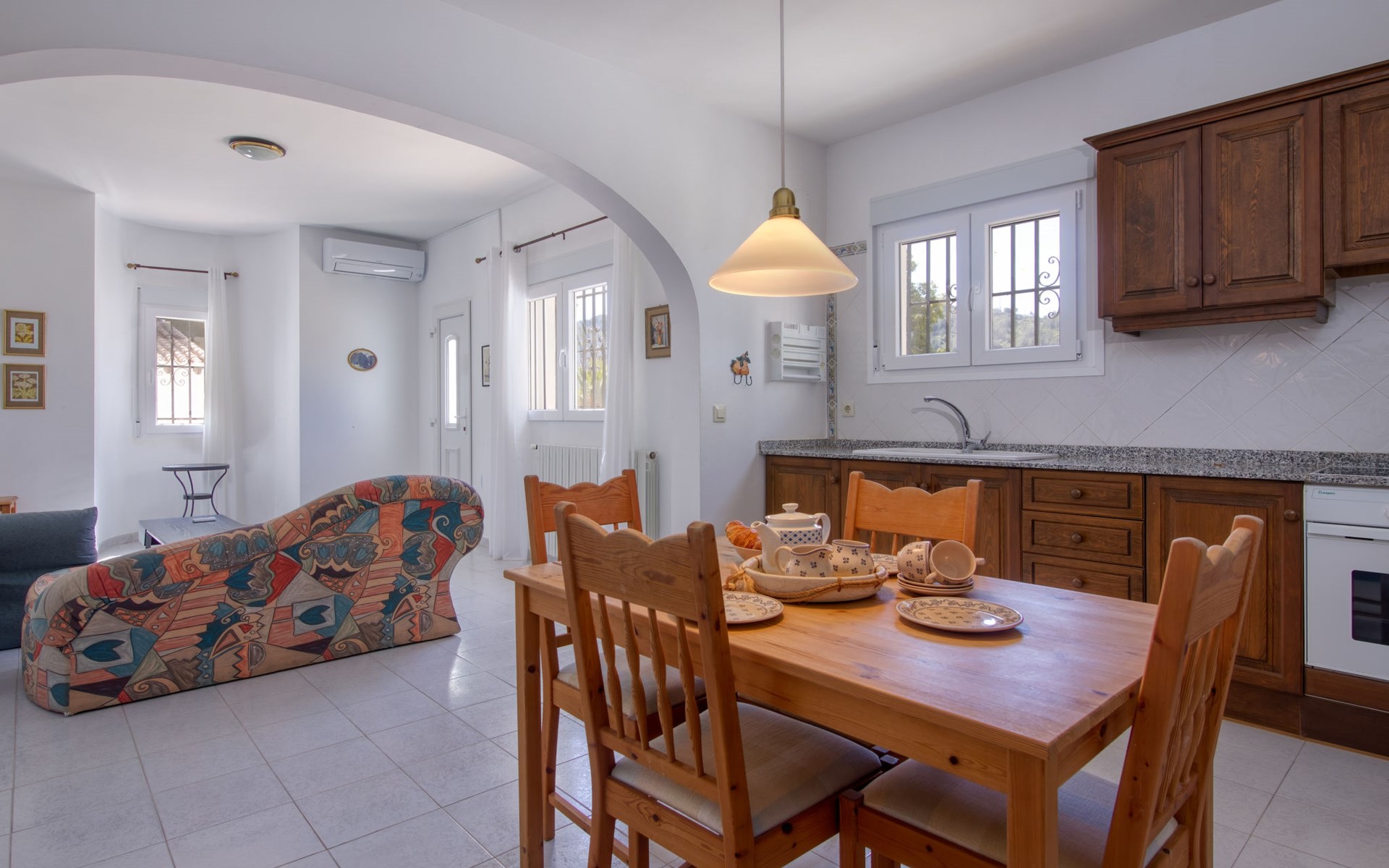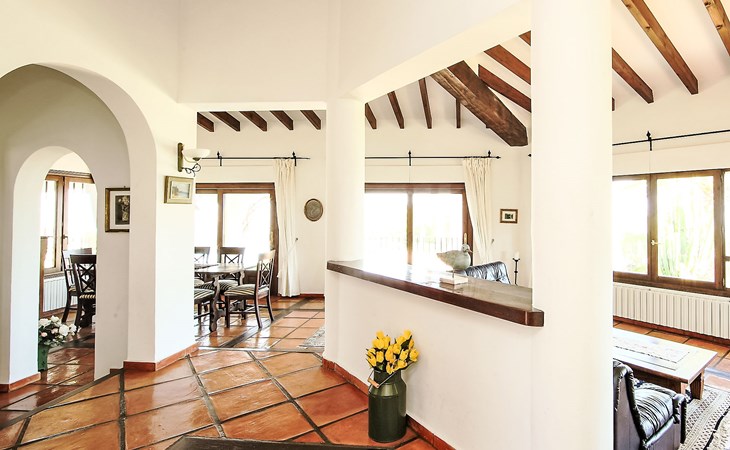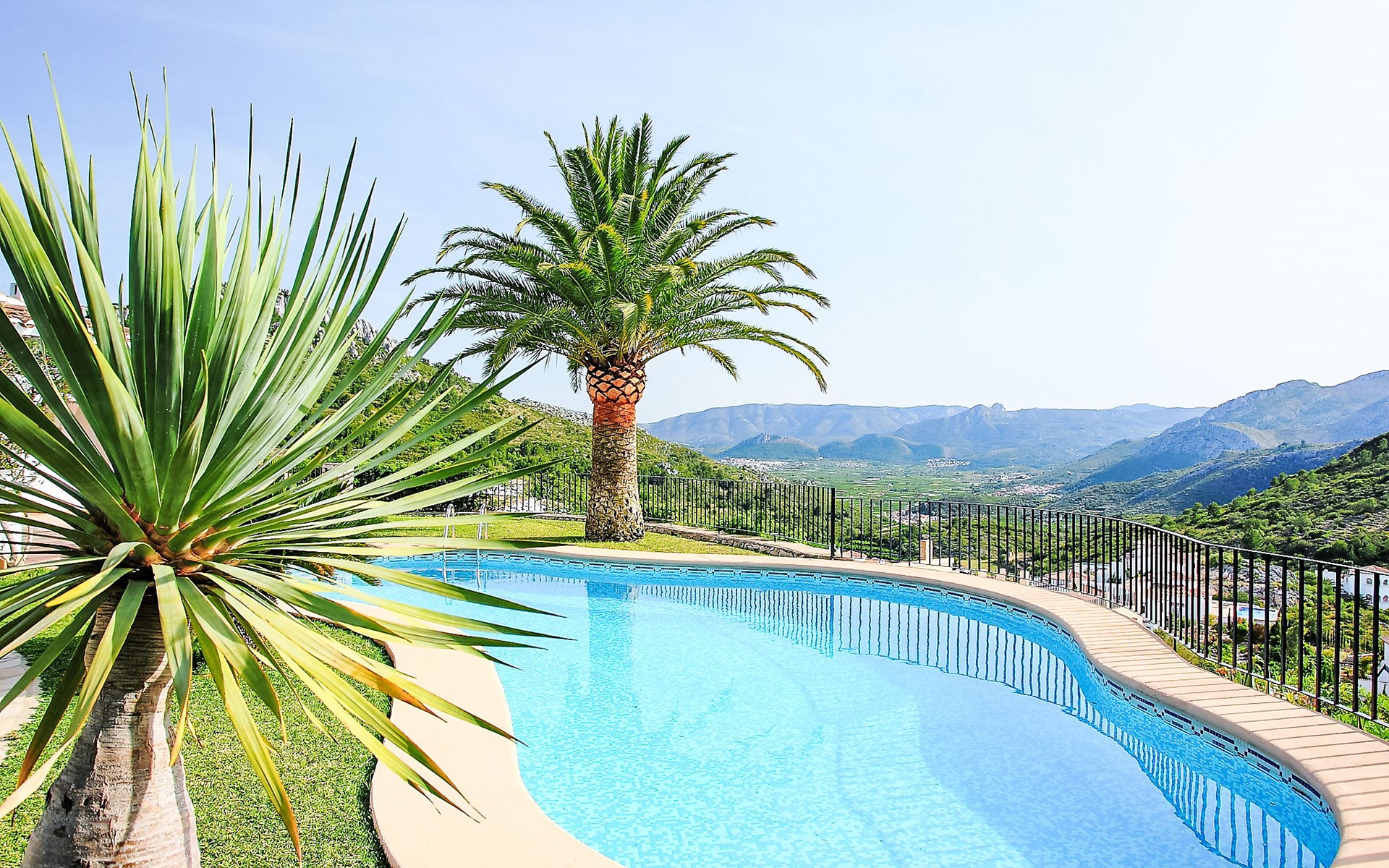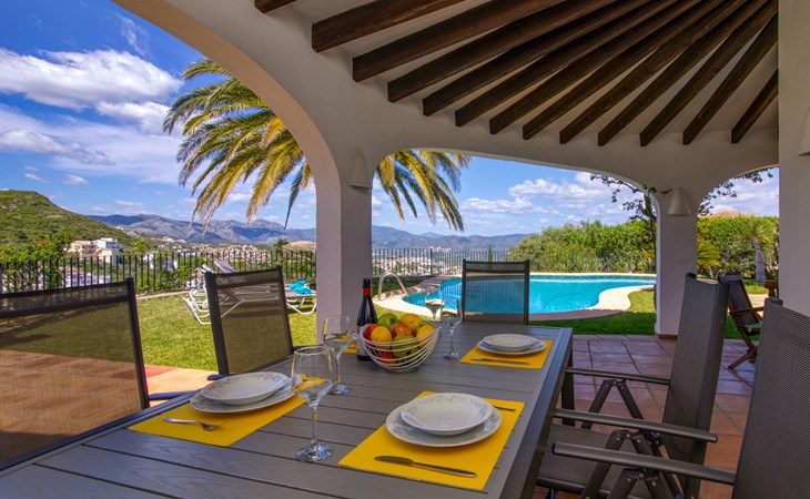 Very beautiful, cosy villa "Paraje De Libertad". In the district of Monte Pego, in a quiet, sunny position on top of a hill, 8 km from the sea, in a cul-de-sac. Private: large, beautiful, well-kept garden (fenced) with lawn 3'500 m2 flowers, swimming pool with privacy (5 x 10 m, seasonal availability: 01.Jan. - 31.Dec.) with internal staircase. Outdoor shower. In the house: central heating system. Stepped path (22 steps) to the house. Parking on the premises. Shop 5 km, supermarket 5 km, shopping centre 12 km, restaurant 1 km, café 500 m, bus stop 9 km, sandy beach 8 km. Golf course (18 hole) 12 km, tennis 1 km. The owner does not accept any youth groups.