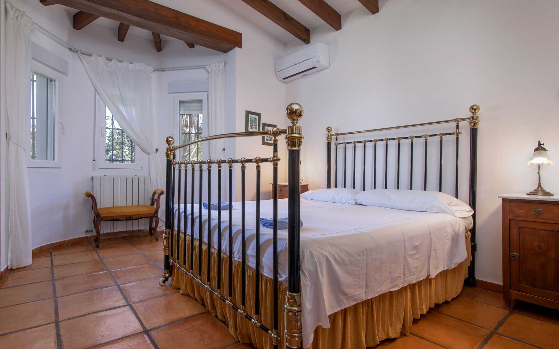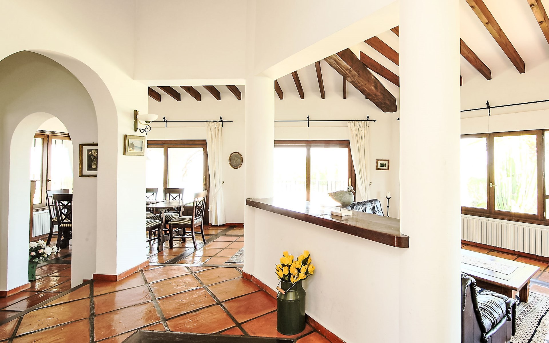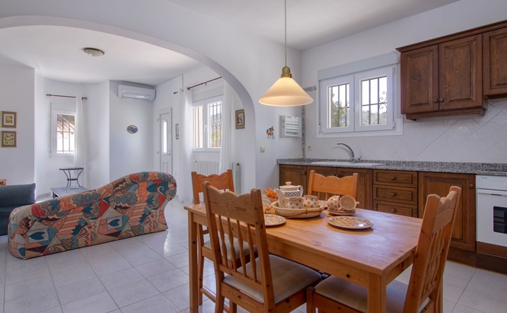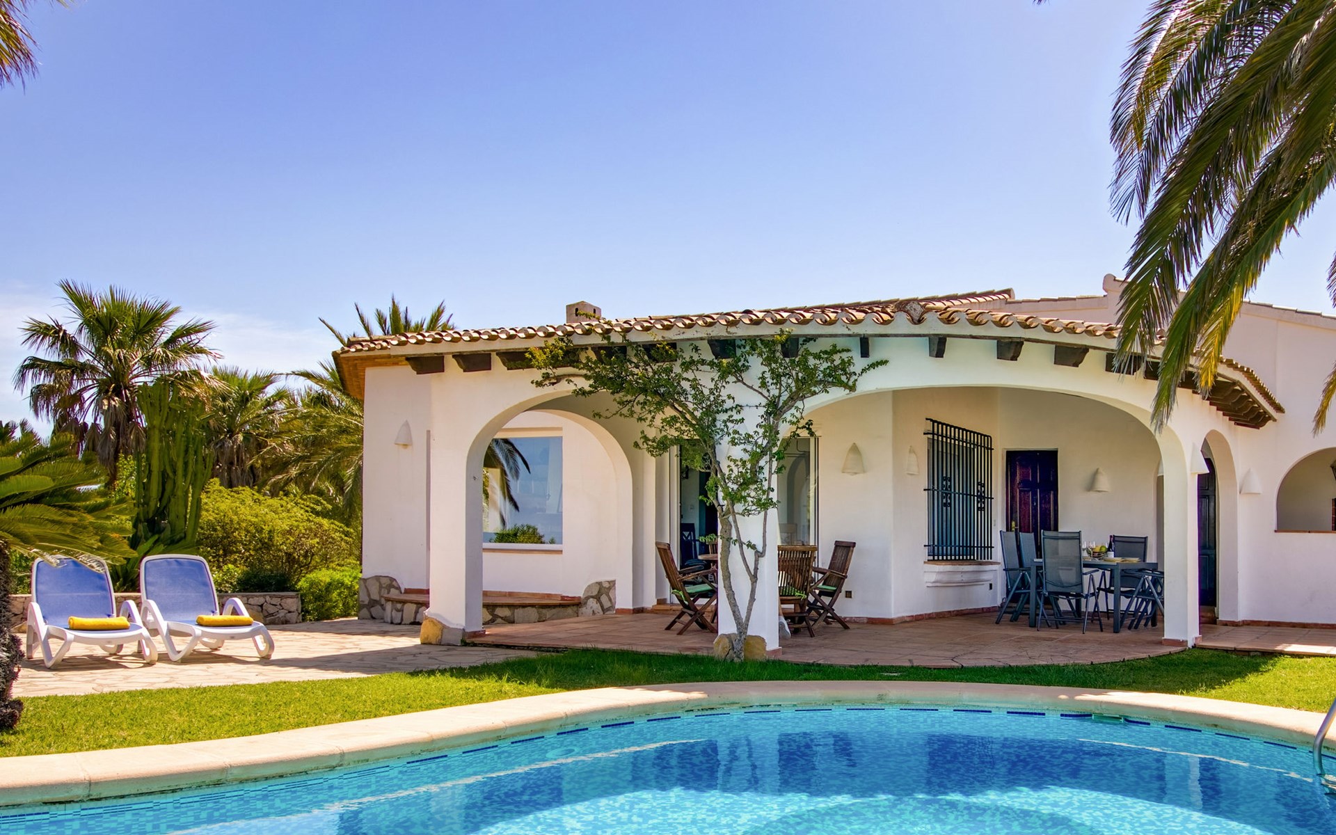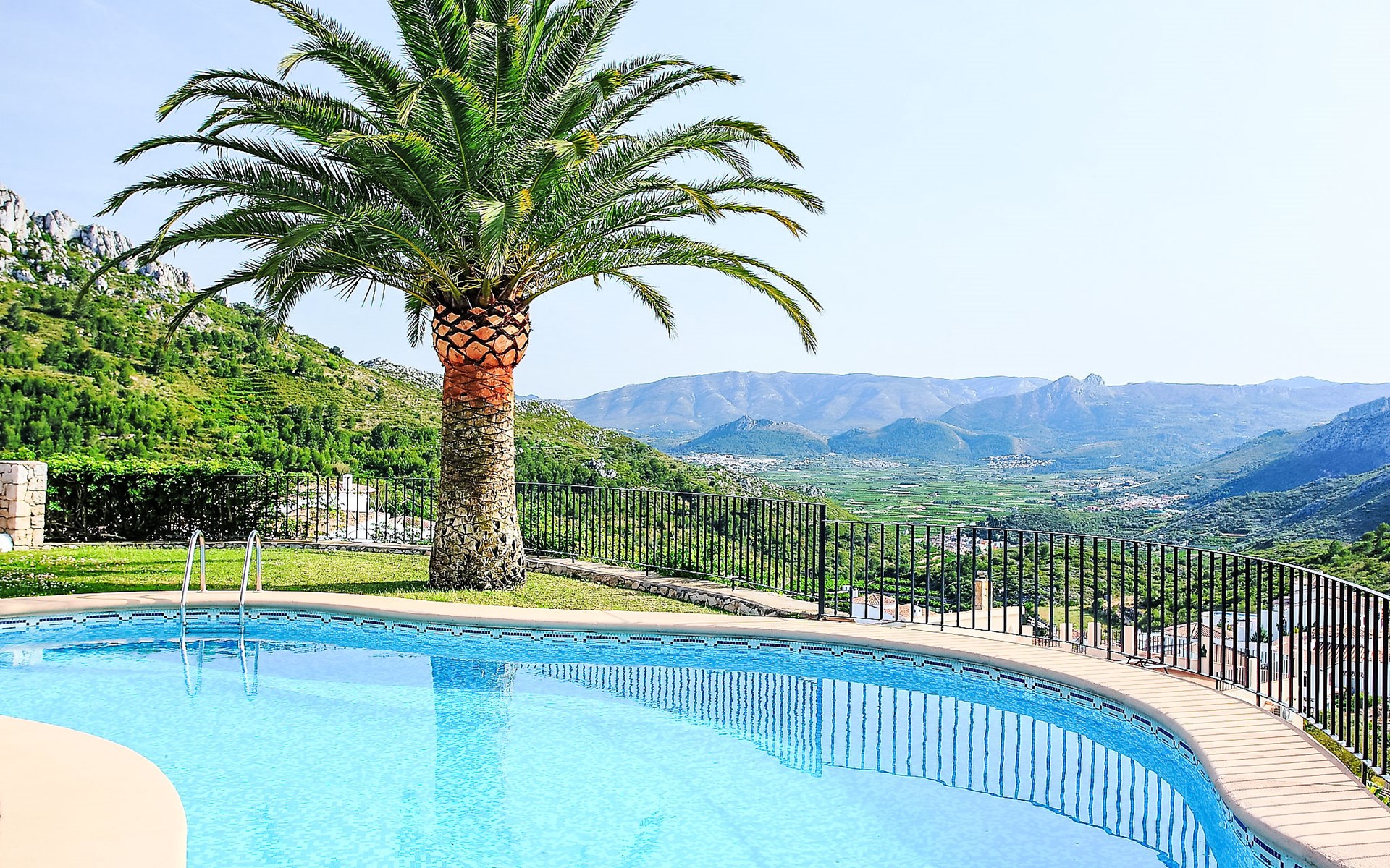 Very beautiful, cosy villa "Paraje De Libertad". In the district of Monte Pego, in a quiet, sunny position on top of a hill, 8 km from the sea, in a cul-de-sac. Private: large, beautiful, well-kept garden (fenced) with lawn 3'500 m2 flowers, swimming pool with privacy (5 x 10 m, seasonal availability: 01.Jan. - 31.Dec.) with internal staircase. Outdoor shower. In the house: central heating system. Stepped path (22 steps) to the house. Parking on the premises. Shop 5 km, supermarket 5 km, shopping centre 12 km, restaurant 1 km, café 500 m, bus stop 9 km, sandy beach 8 km. Golf course (18 hole) 12 km, tennis 1 km. The owner does not accept any youth groups.
