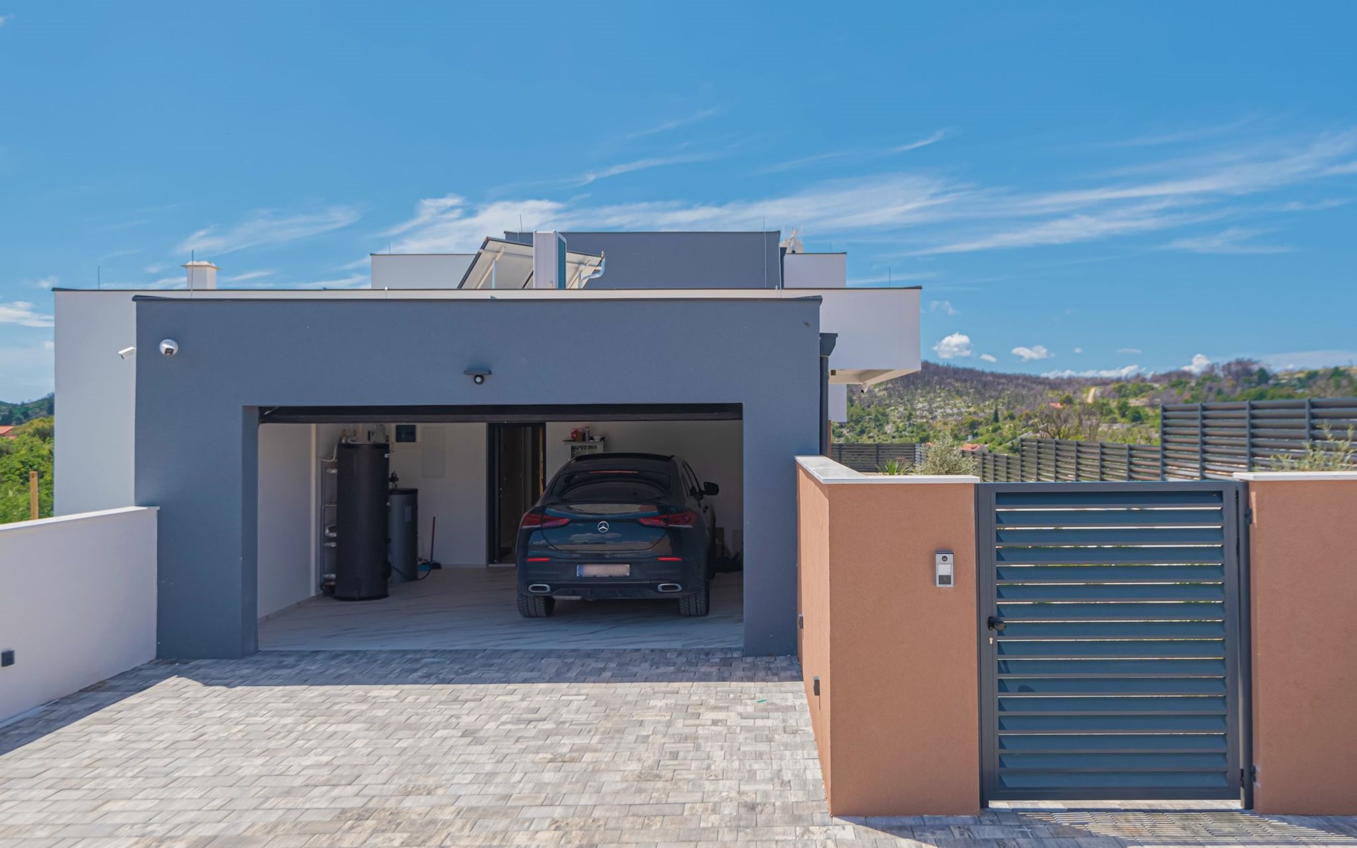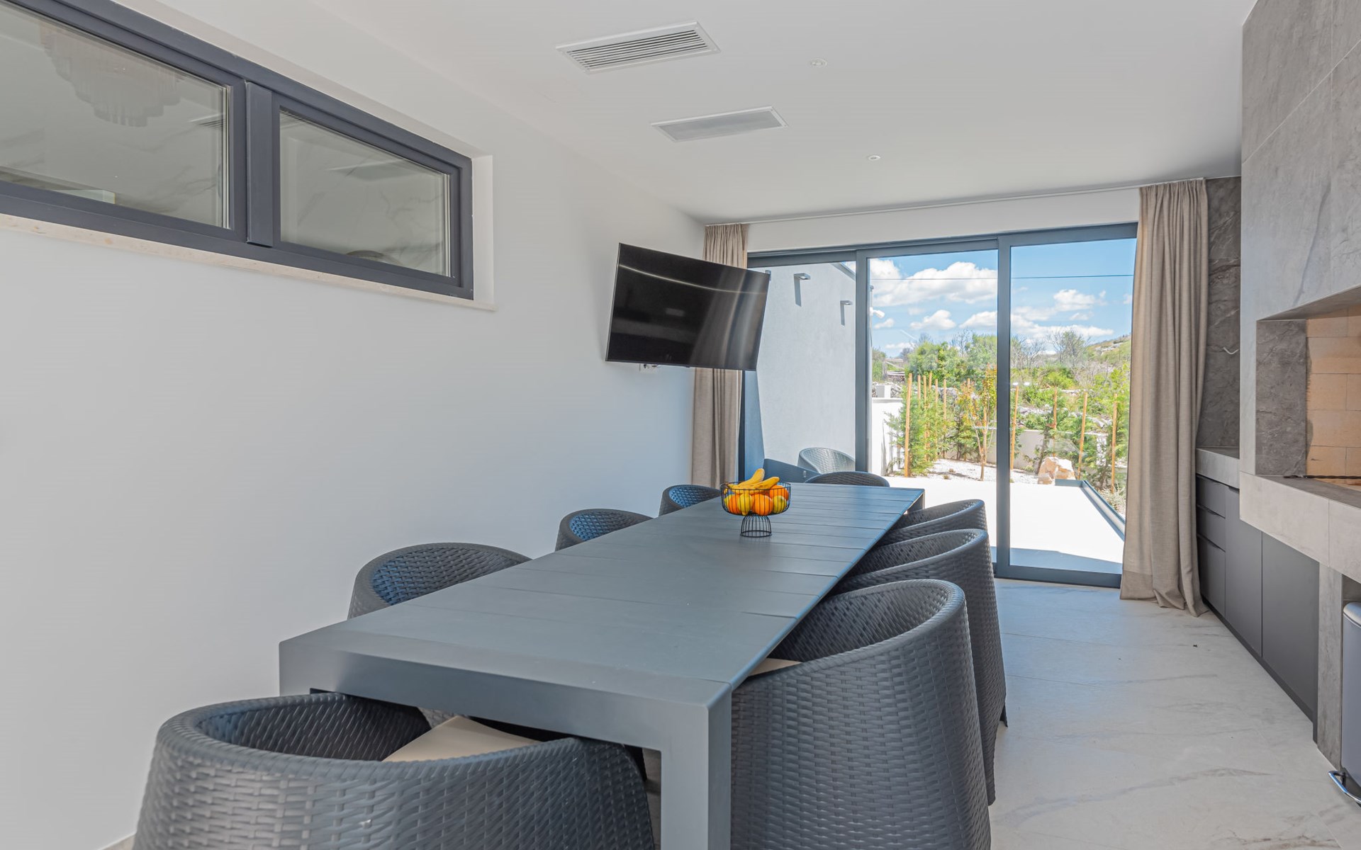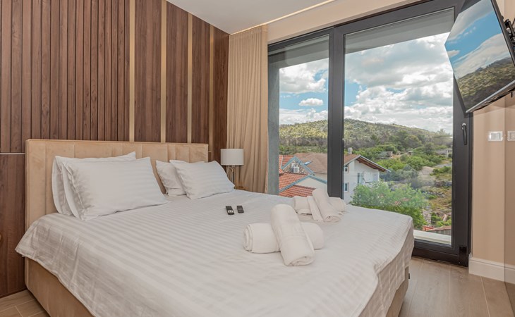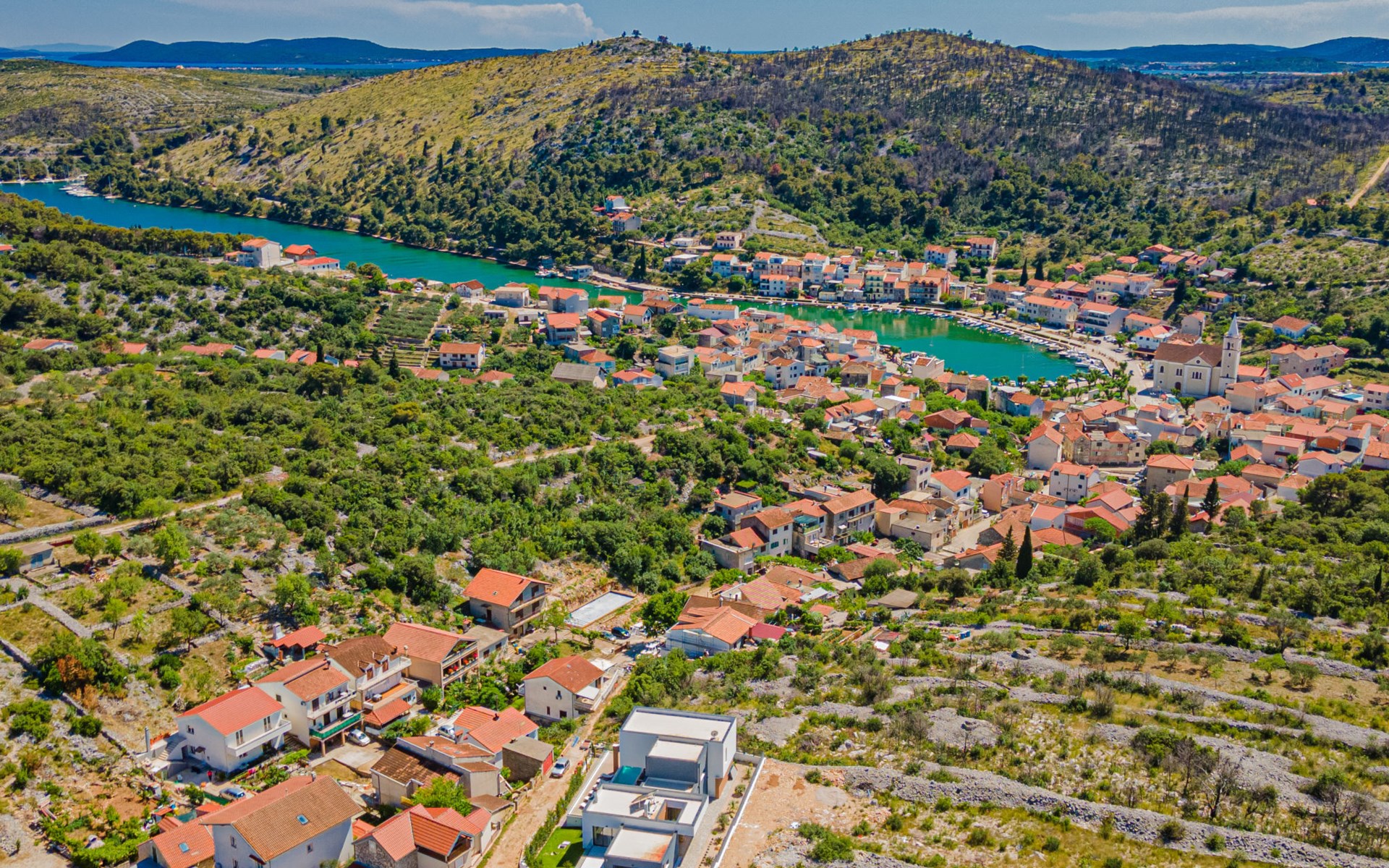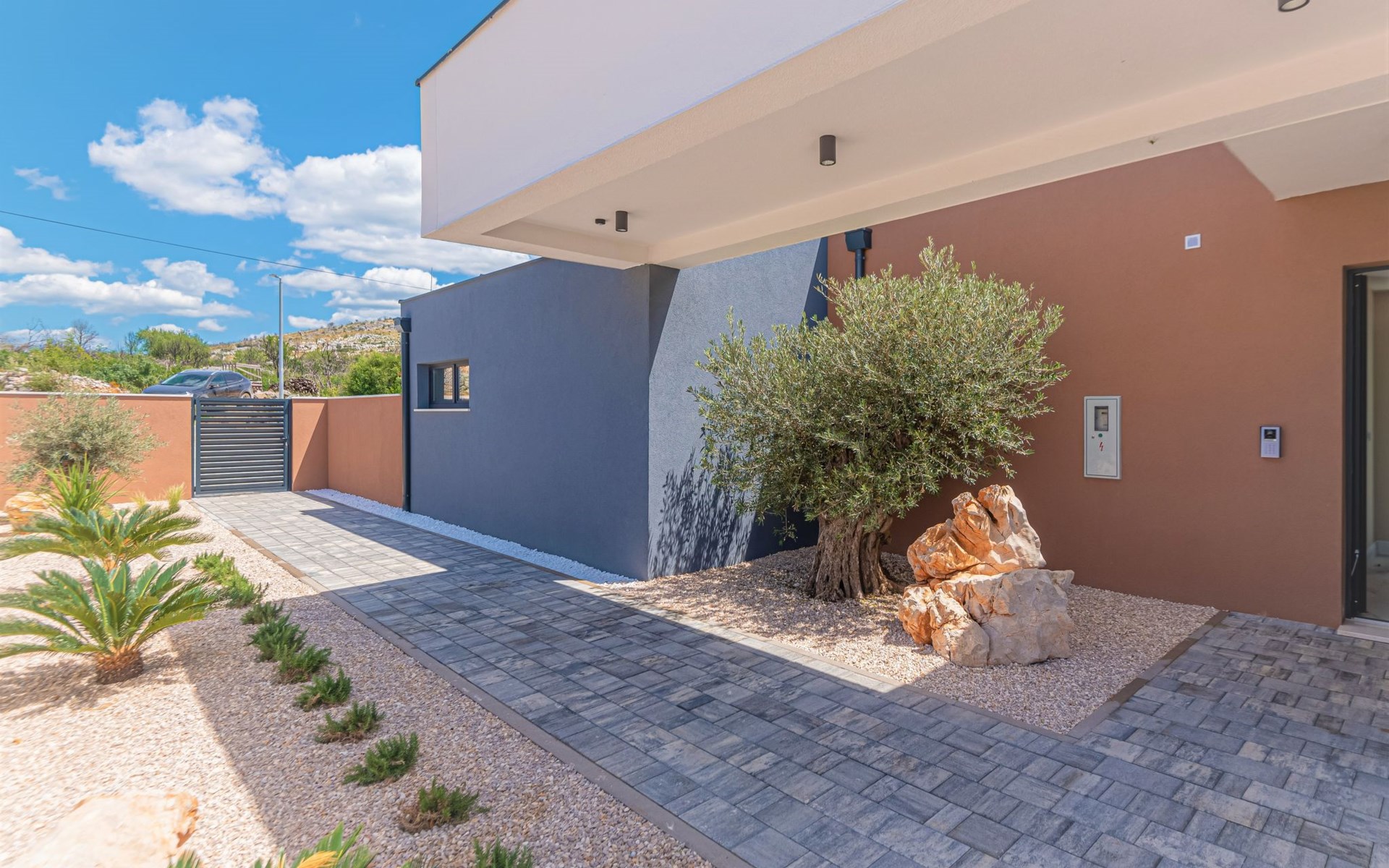 Luxurious villa "Šimun", built in 2024. In a quiet, sunny position, 500 m from the sea, 1.5 km from the beach. Private: property 850 m2 (fenced), swimming pool angular (13 x 3 m, depth 150 cm, seasonal availability: 15.May. - 01.Nov.) with internal staircase. Outdoor shower, hot tub, terrace (50 m2), garden furniture, barbecue. In the house: internet access, sauna, washing machine, tumble dryer. Parking (for 2 cars) at the house on the premises. Shop, restaurant, café 500 m, bus stop 350 m, pebble beach 2 km, concrete beach 1.5 km. Marina 2 km. Nearby attractions: Aquapark 15 km, NP Krka 20 km. The owner does not accept any youth groups.