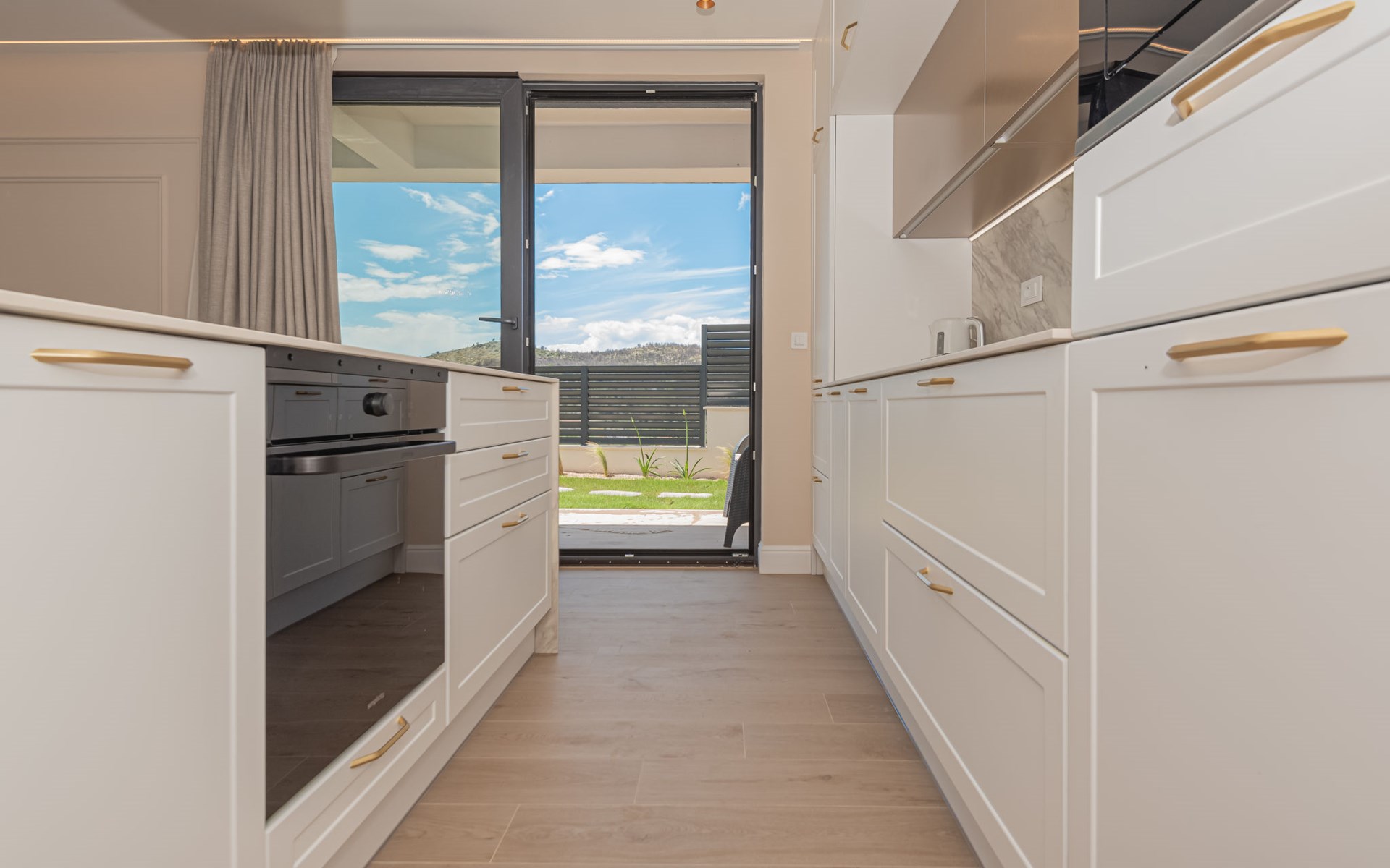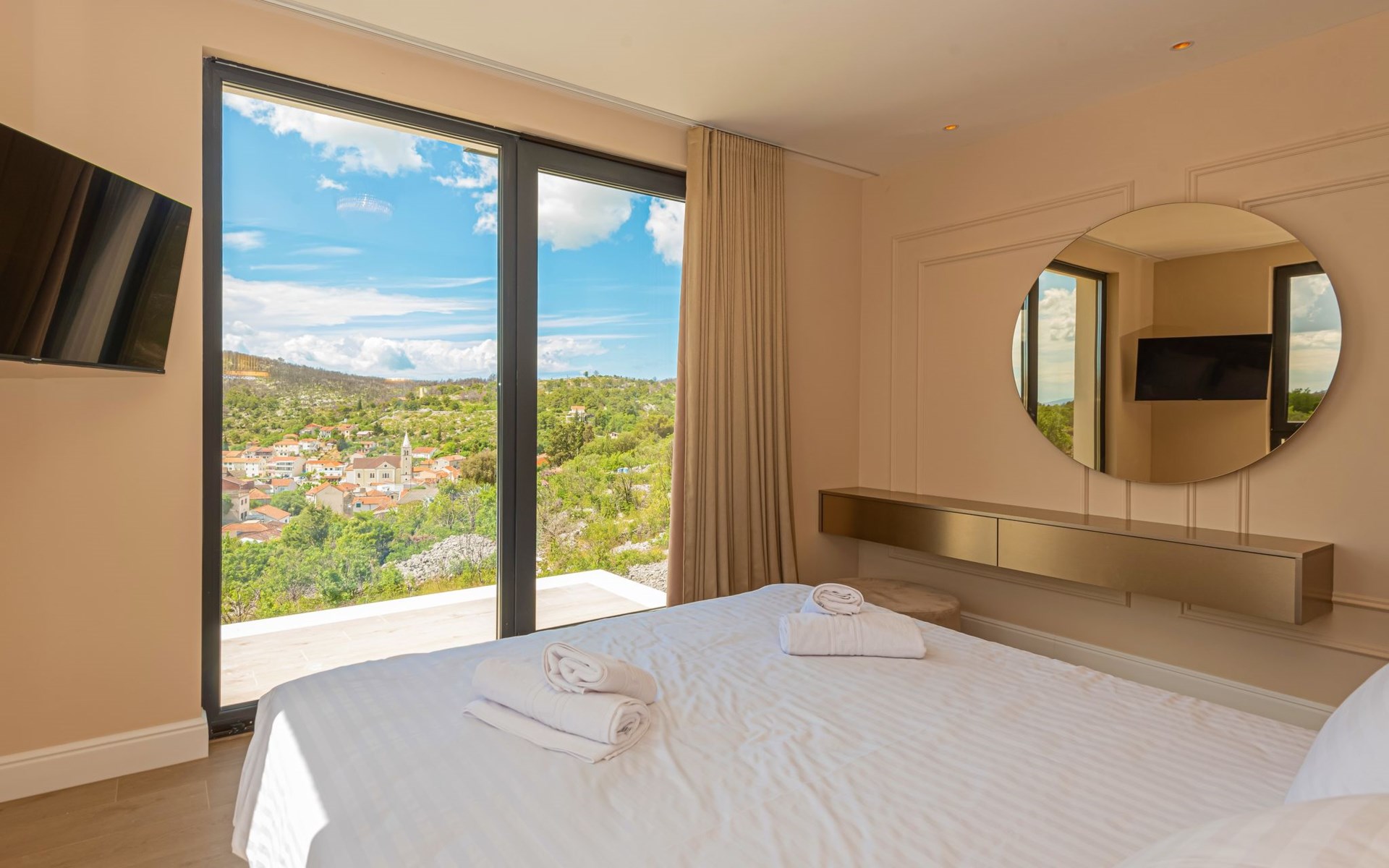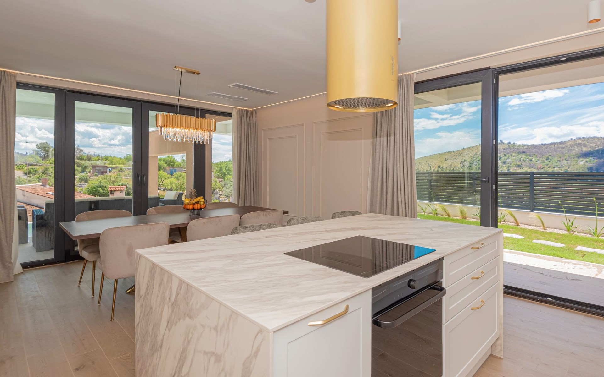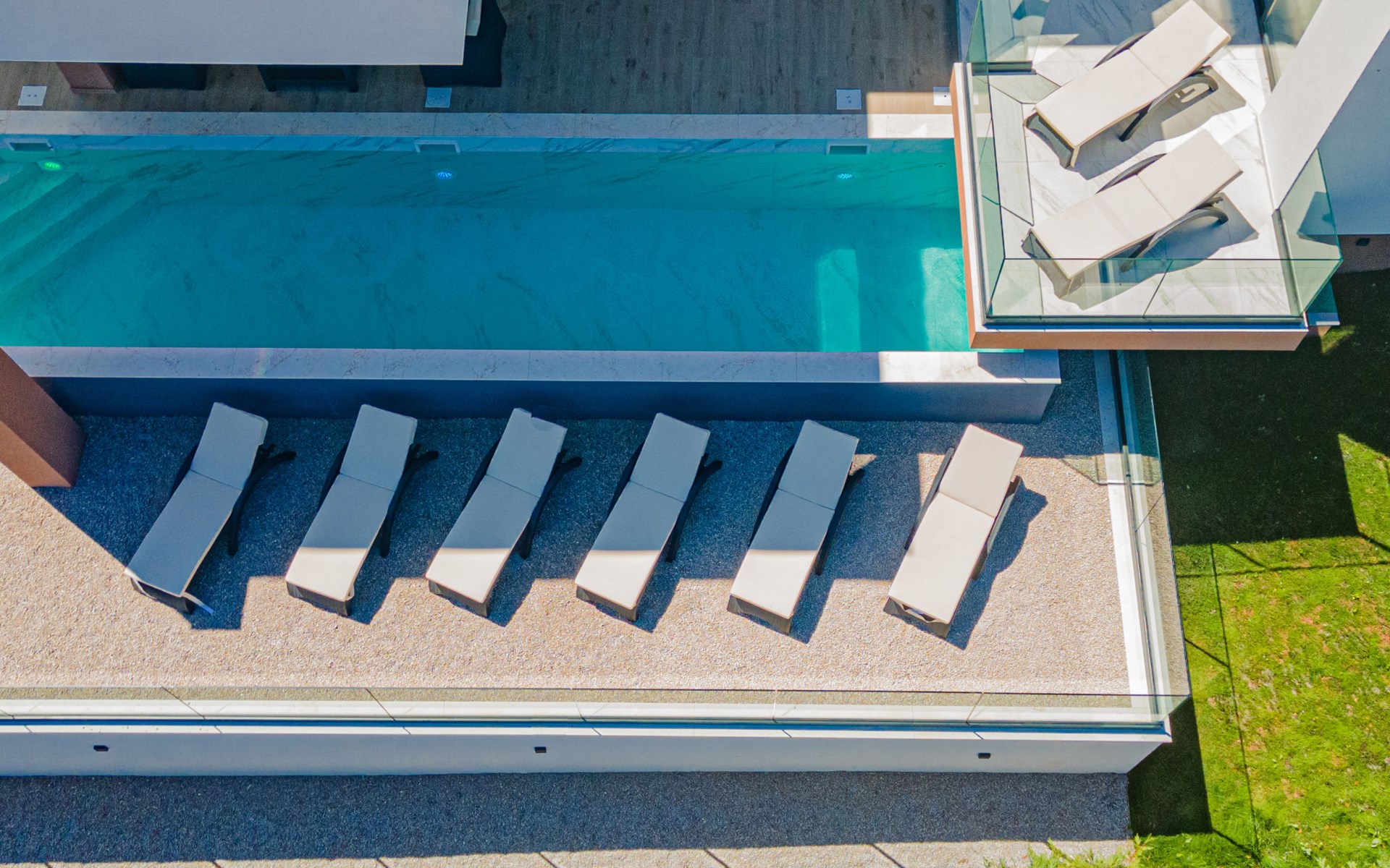 Luxurious villa "Šimun", built in 2024. In a quiet, sunny position, 500 m from the sea, 1.5 km from the beach. Private: property 850 m2 (fenced), swimming pool angular (13 x 3 m, depth 150 cm, seasonal availability: 15.May. - 01.Nov.) with internal staircase. Outdoor shower, hot tub, terrace (50 m2), garden furniture, barbecue. In the house: internet access, sauna, washing machine, tumble dryer. Parking (for 2 cars) at the house on the premises. Shop, restaurant, café 500 m, bus stop 350 m, pebble beach 2 km, concrete beach 1.5 km. Marina 2 km. Nearby attractions: Aquapark 15 km, NP Krka 20 km. The owner does not accept any youth groups.