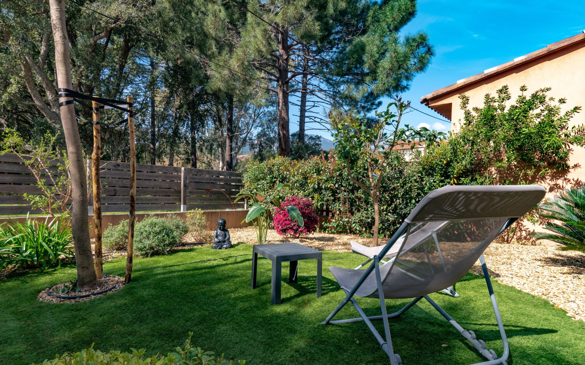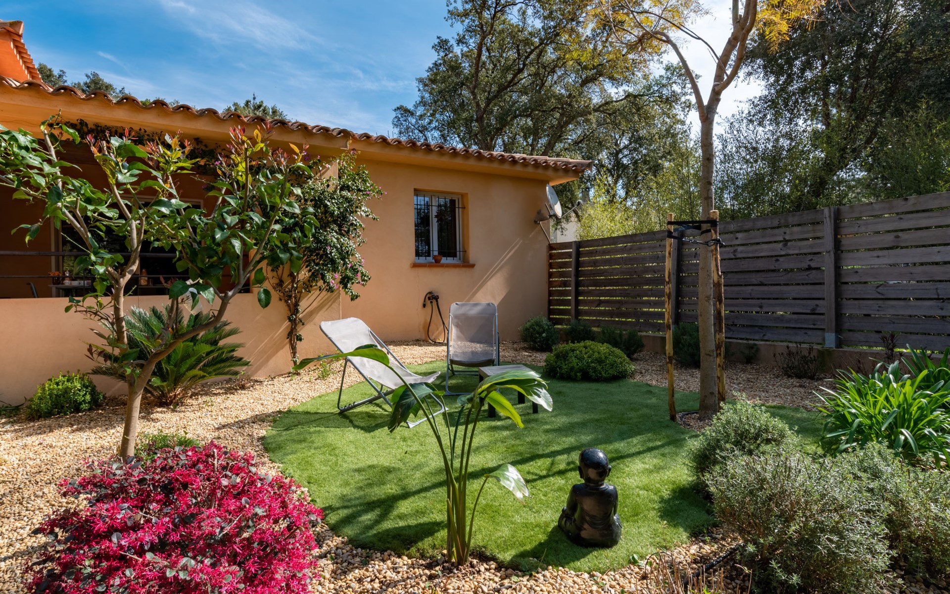 Small terraced house "Brigitte". In the centre of Sainte Lucie De Porto-Vecchio, in a quiet position, 3.8 km from the sea, 3.8 km from the beach, 7 km from the river. Private: property 211 m2 (fenced), garden 80 m2 (fenced), parking on the premises. Supermarket 450 m, bakery 180 m, café, bus stop 80 m, sandy beach "pinarello" 3.8 km. Nearby attractions: Piscine naturelle de Cavu 7 km, Porto-Vecchio 15 km, Santa Giulia 23 km. Hiking paths: Bavella 53 km. Please note: car recommended.
