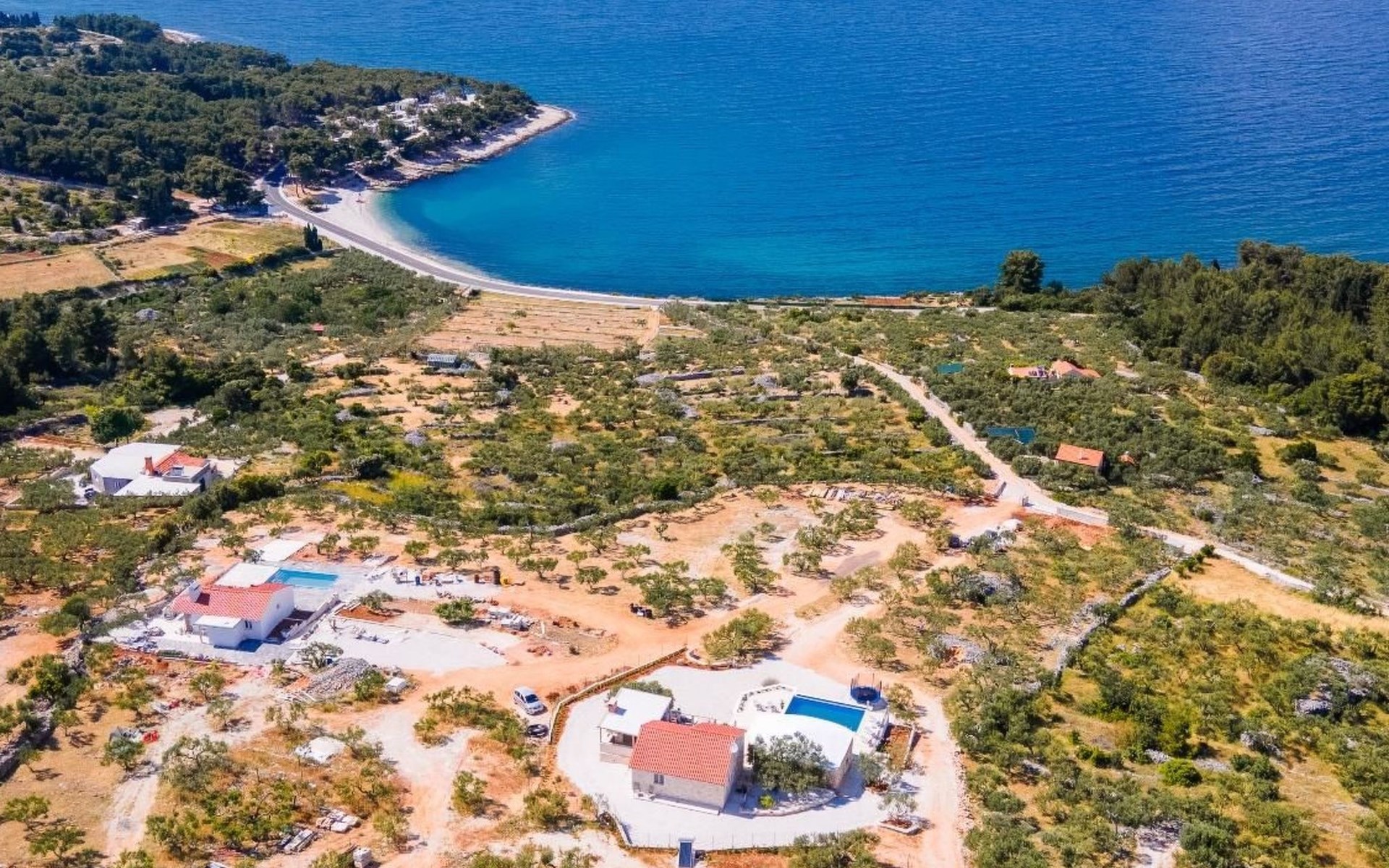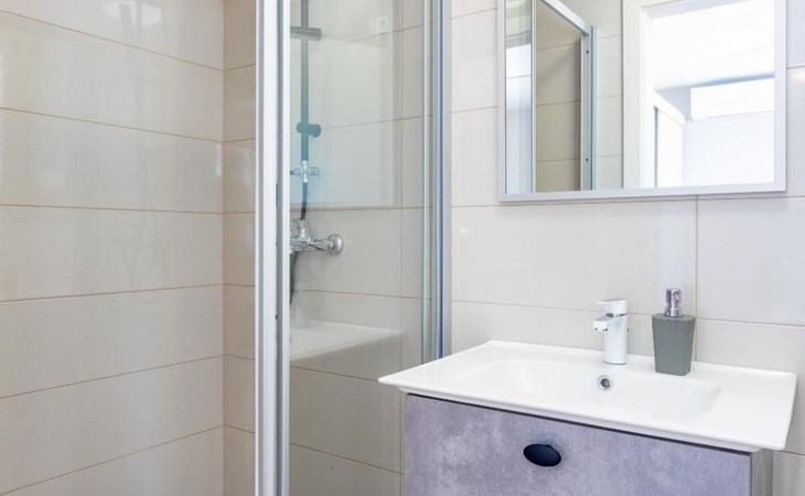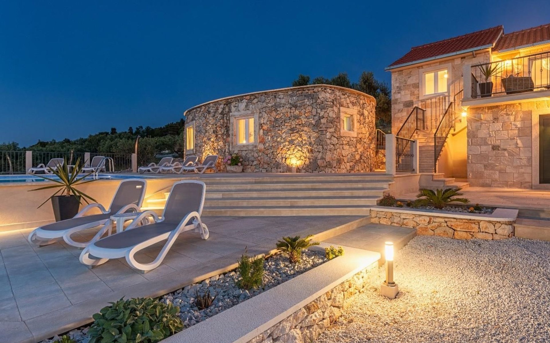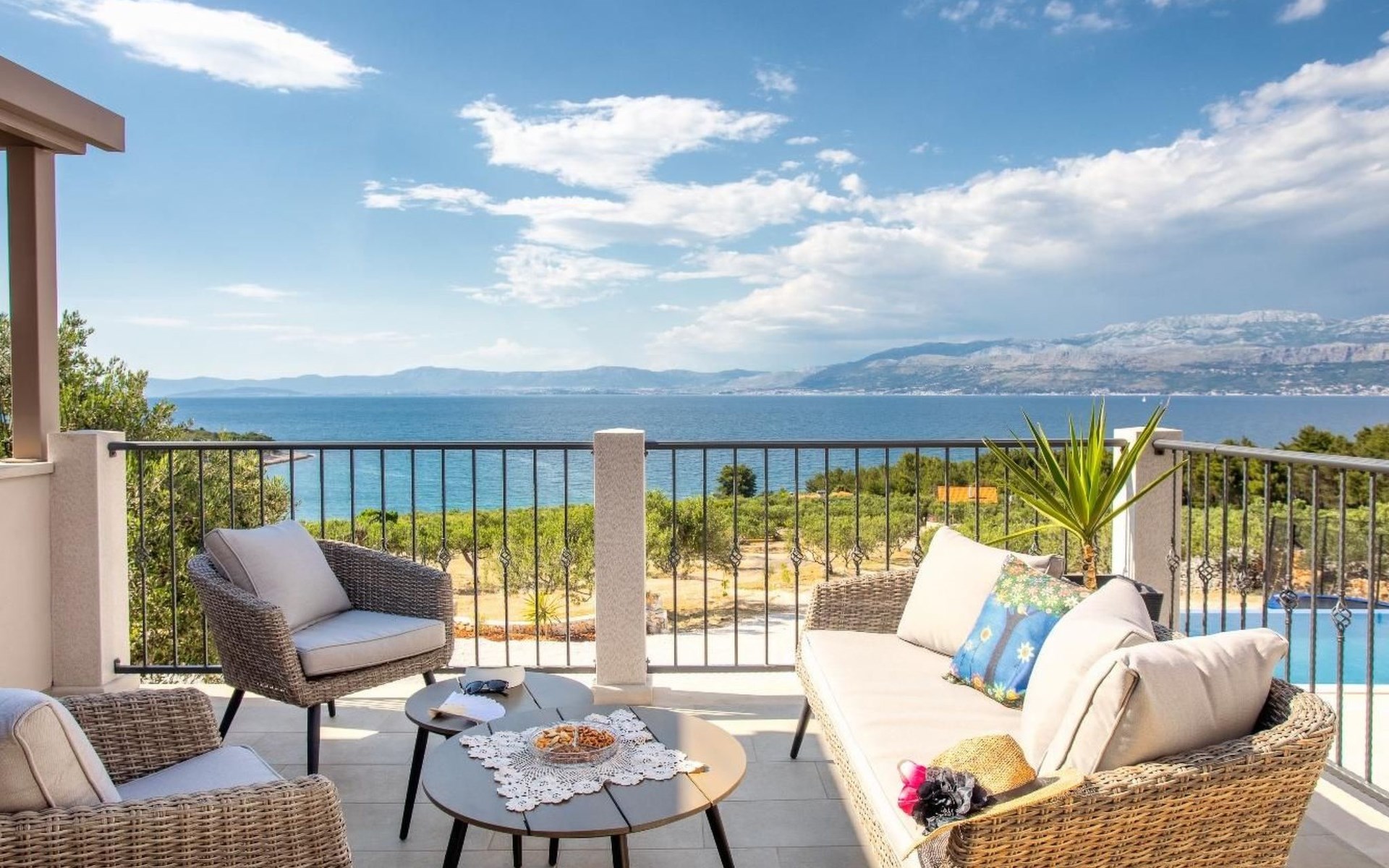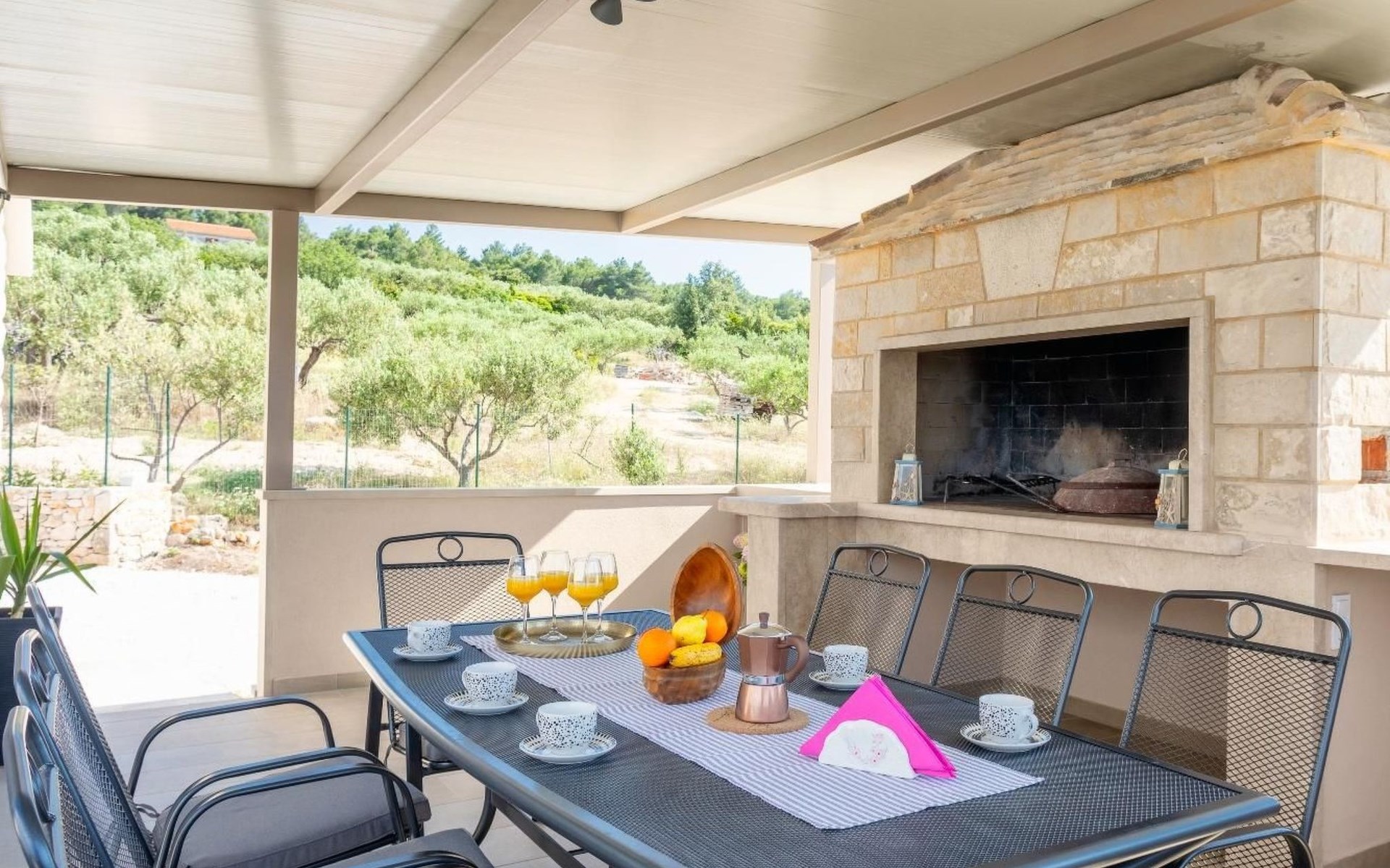 The outside area is not only filled with so many things, but also beautiful to look at. The entire villa is finished with stone cladding, which is very typical for the island of Brač, which is famous for its natural stone production. A pool is waiting for you if you don't feel like a beach holiday. There is no great pool without loungers and parasols, and there is even an outdoor shower here.