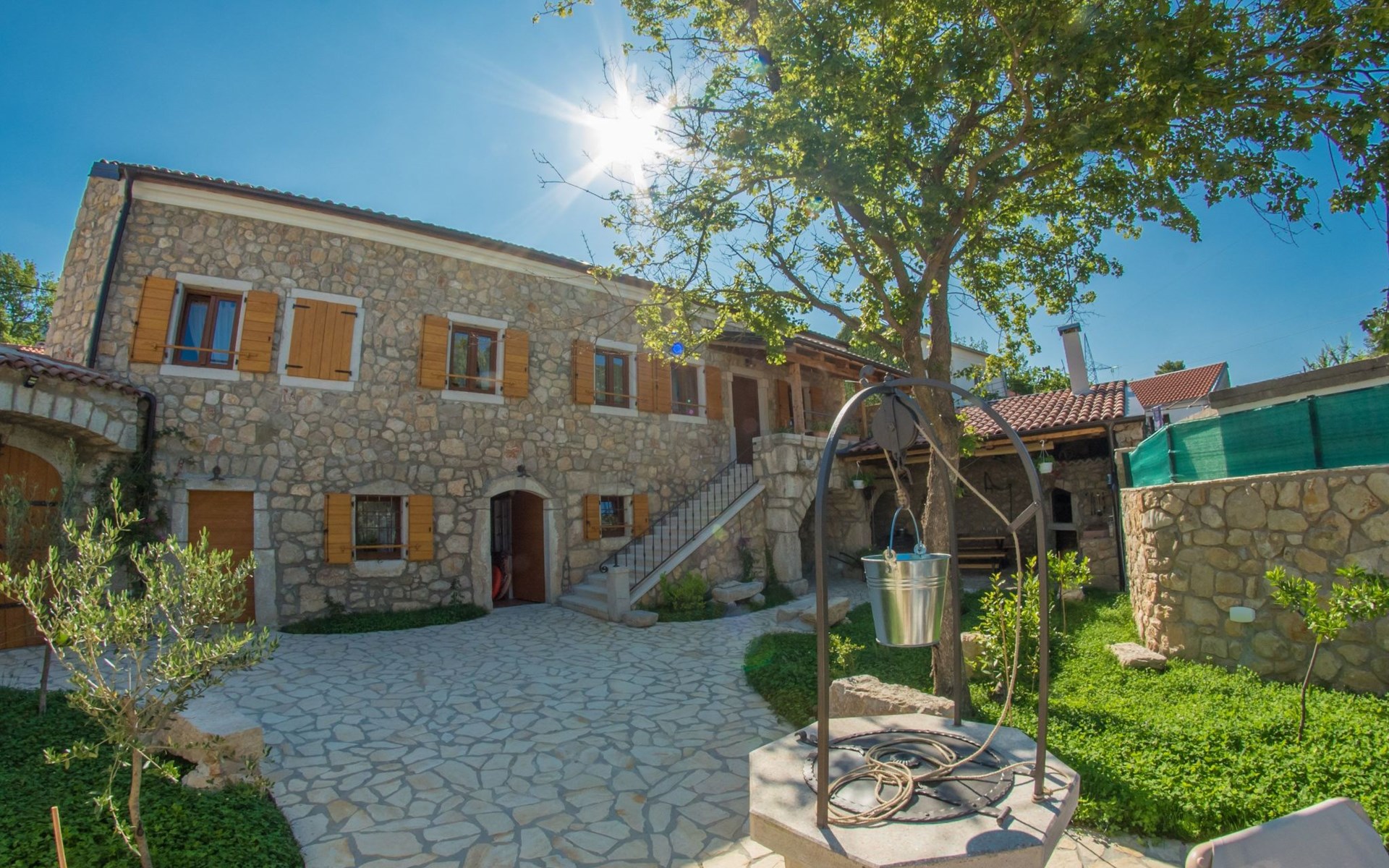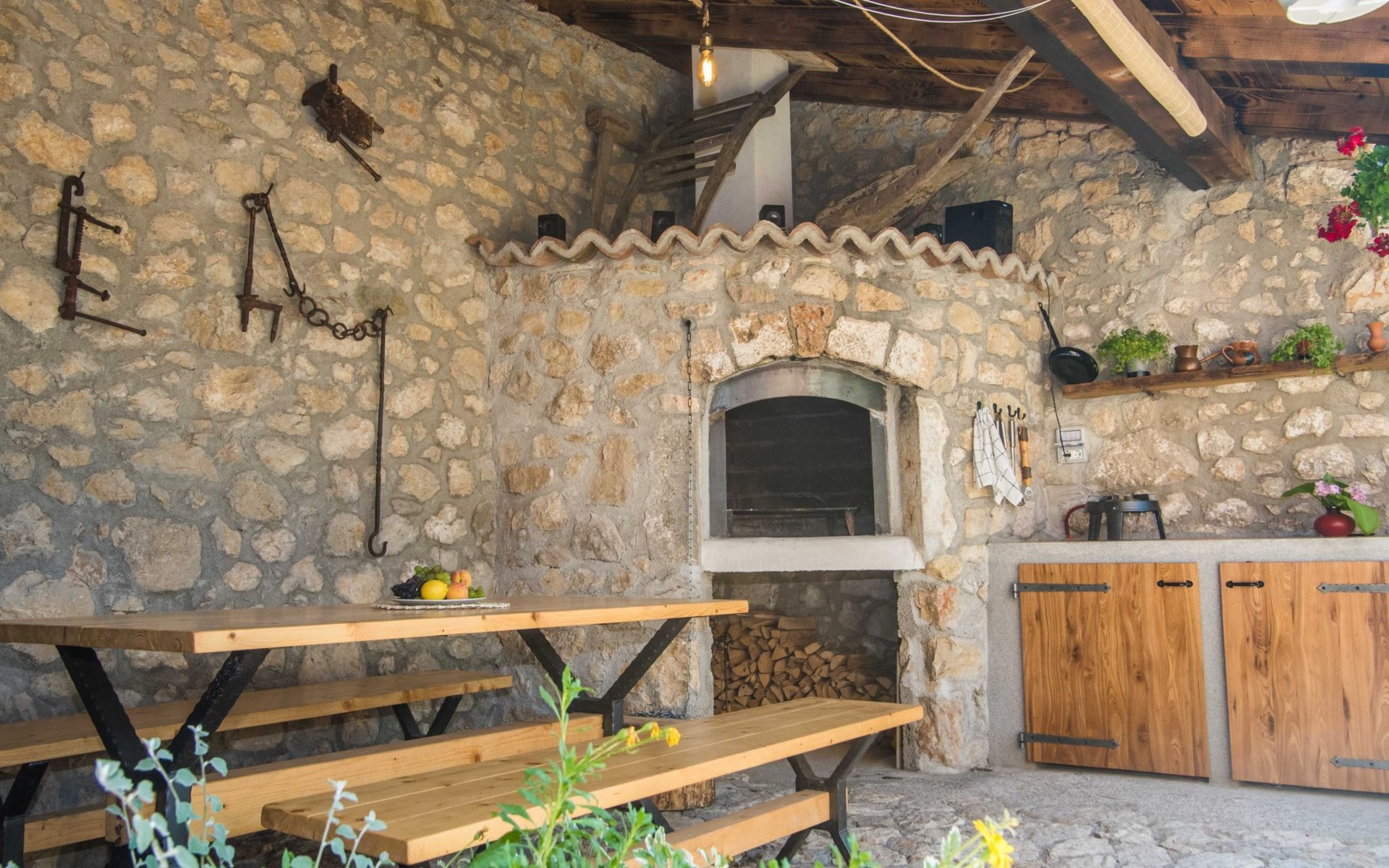 Outdoors you will find a covered terrace with outdoor kitchen, barbecue and dining area.This is the perfect place to spend the summer nights. Also, the villa has Jacuzzi to enjoy in the middle of the garden under the old chub tree.