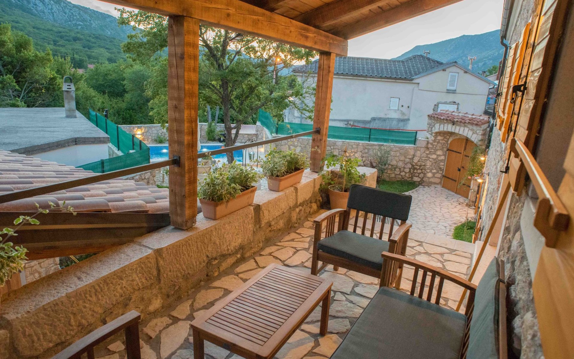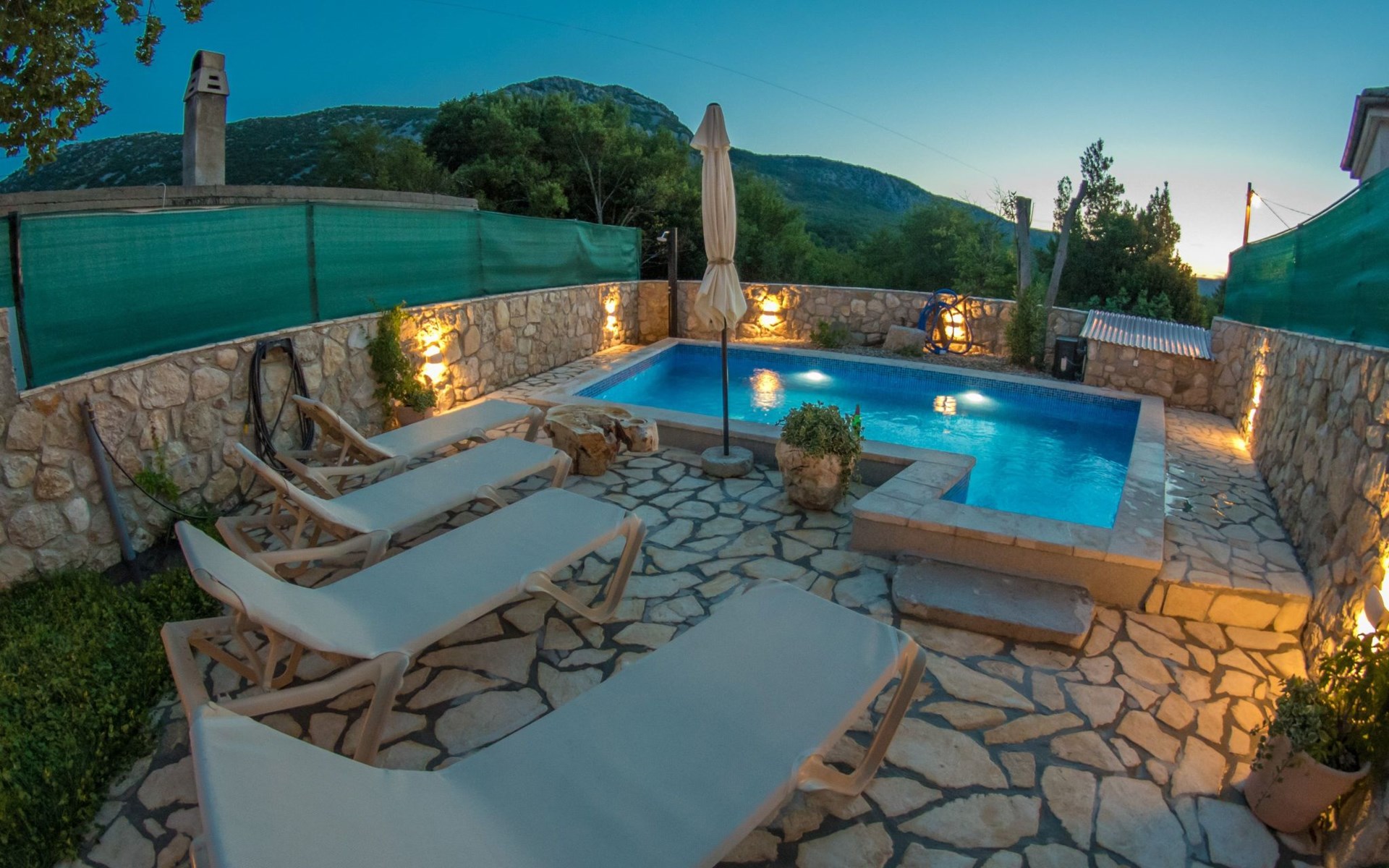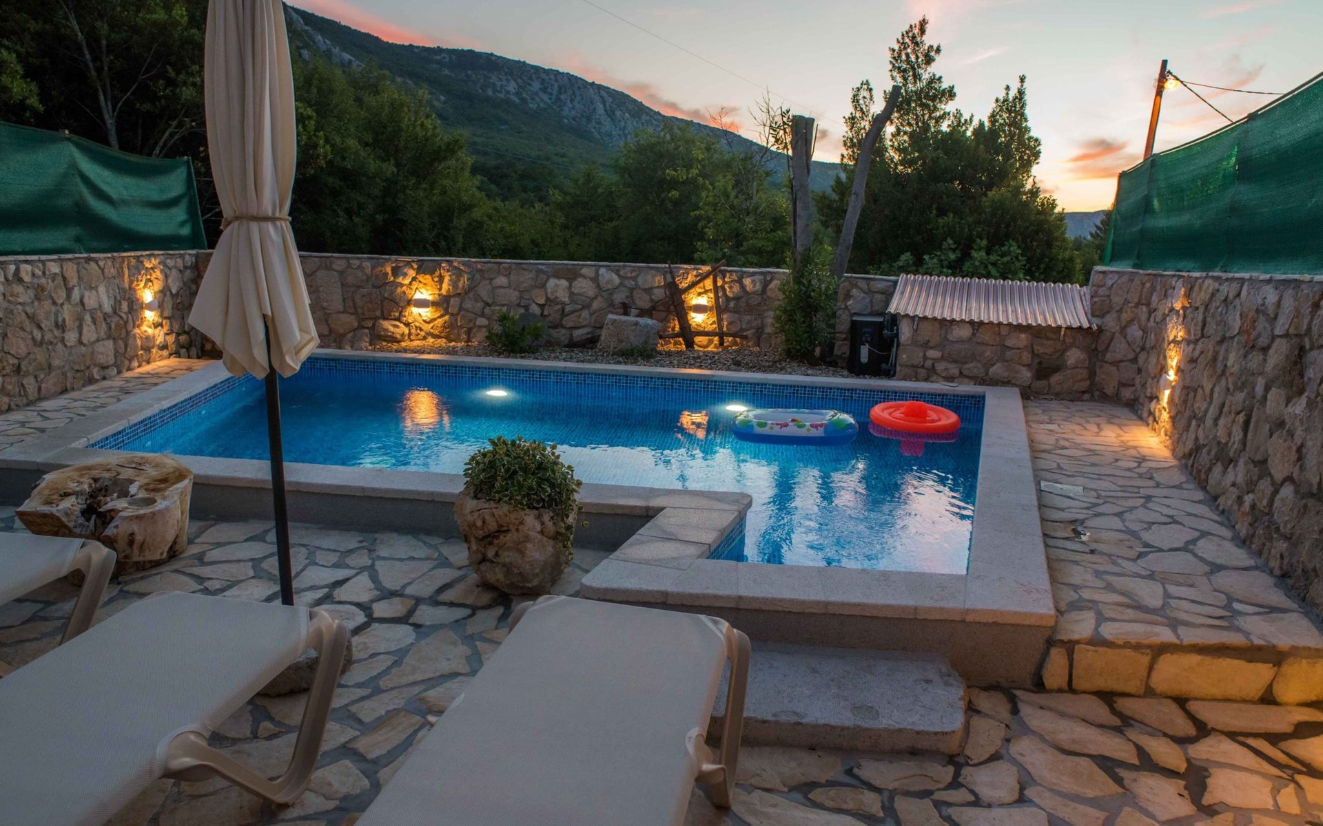 There is a beautiful completely enclosed and private garden with a private pool and an outside dining area for you to enjoy.