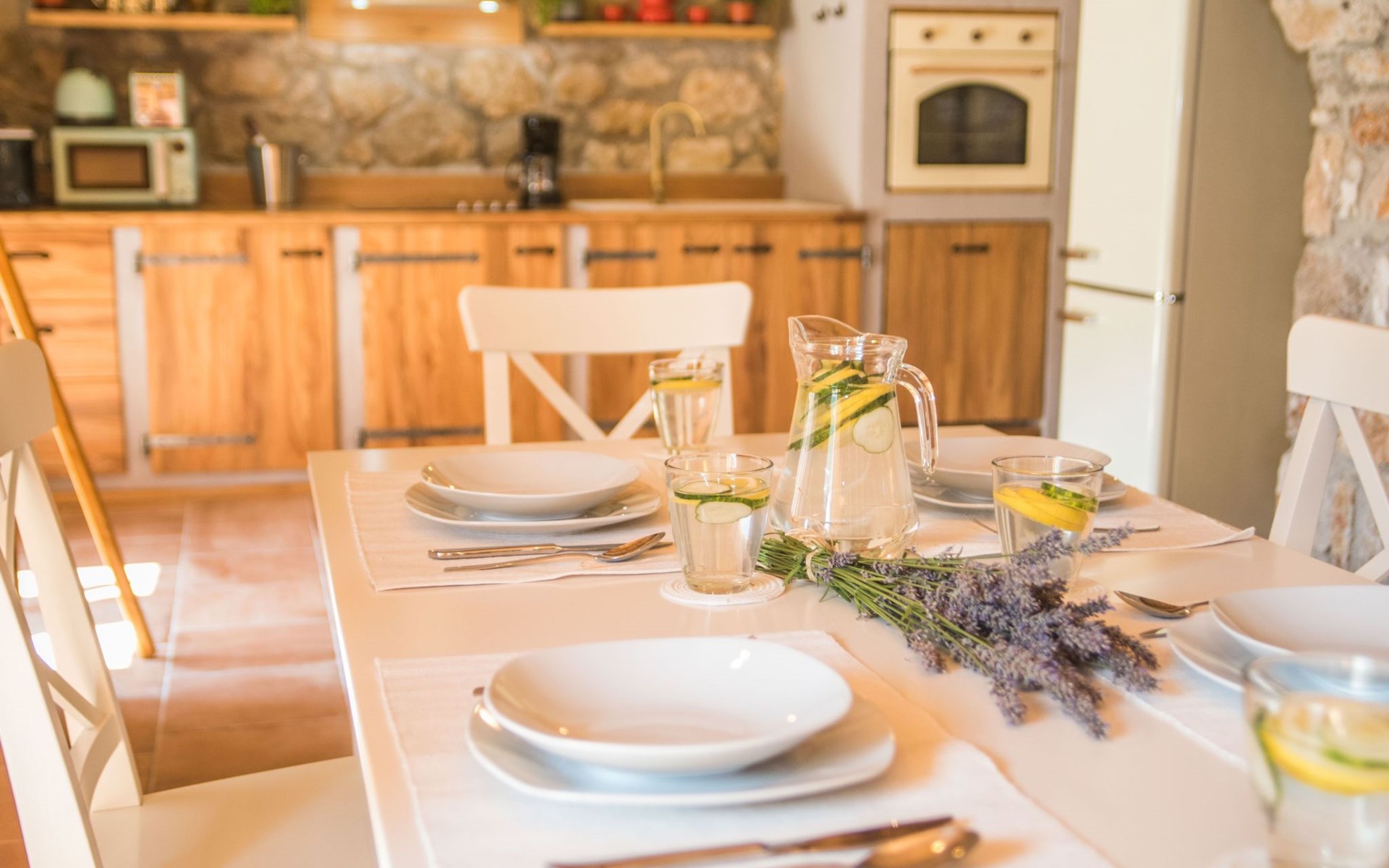 On the groundfloor there is fully equipped kitchen at your disposal with a dining area.