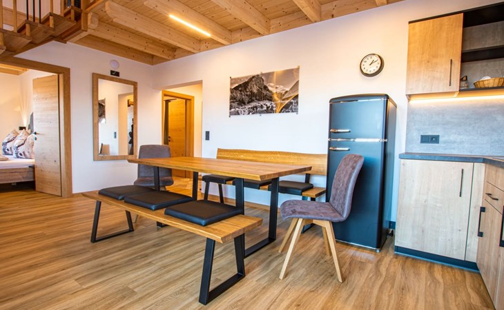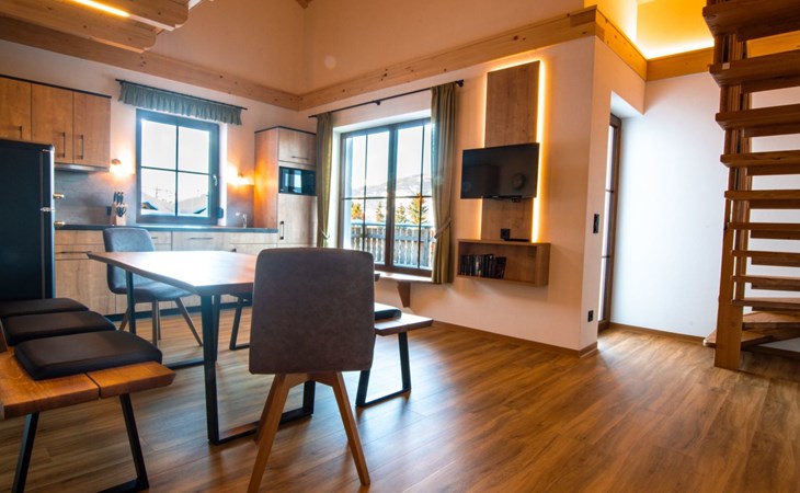 After a long day of vacation, you can relax in our new 105 m² chalet. Enjoy your perfect holiday feeling Enjoy the quiet location and the spacious living area in our holiday home and relax in the sleeping loft furnished with old wood. This is based on an alpine hut in which it smells of freshly built wood. Marvel at the view of the Carinthian mountains from the panoramic window. Quiet evenings on the terrace with a glass of wine while the children romp about in the playground. Barbecue evenings with the family in the middle of nature and much more make the family holiday with us perfect and unforgettable.