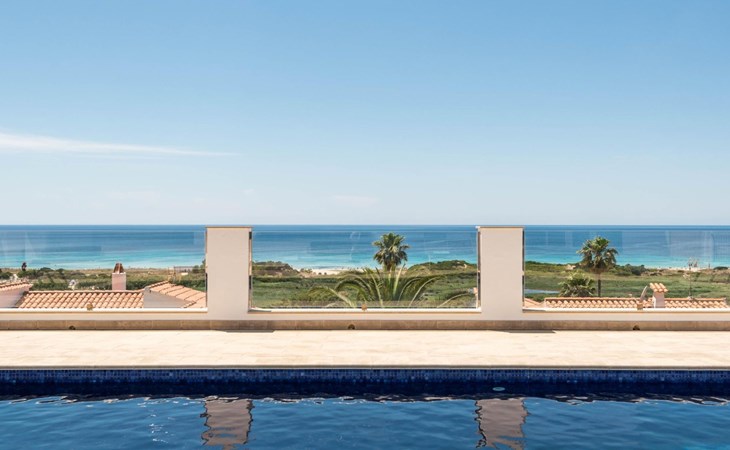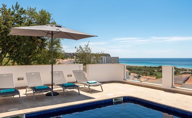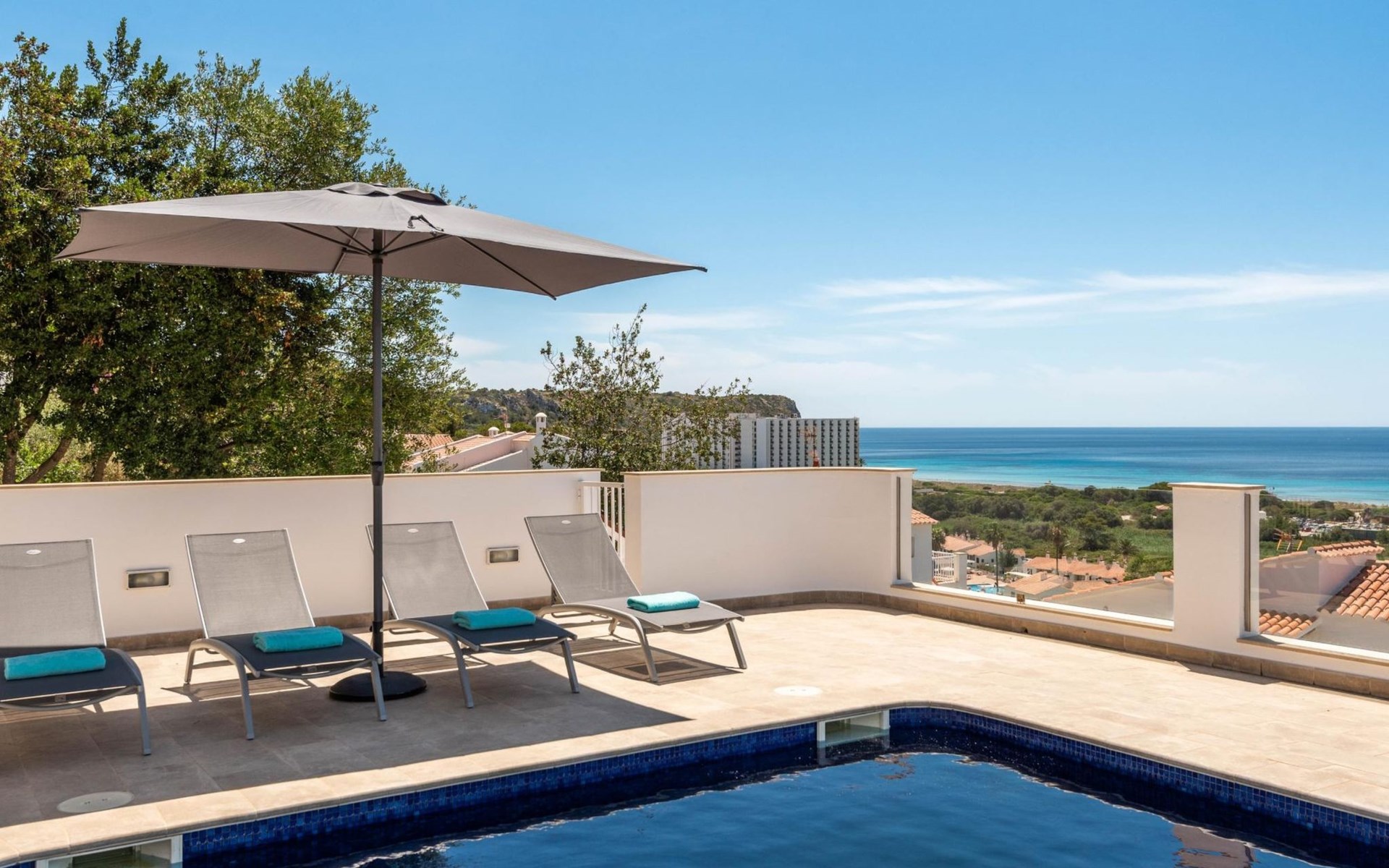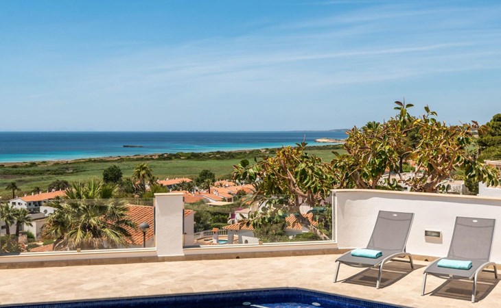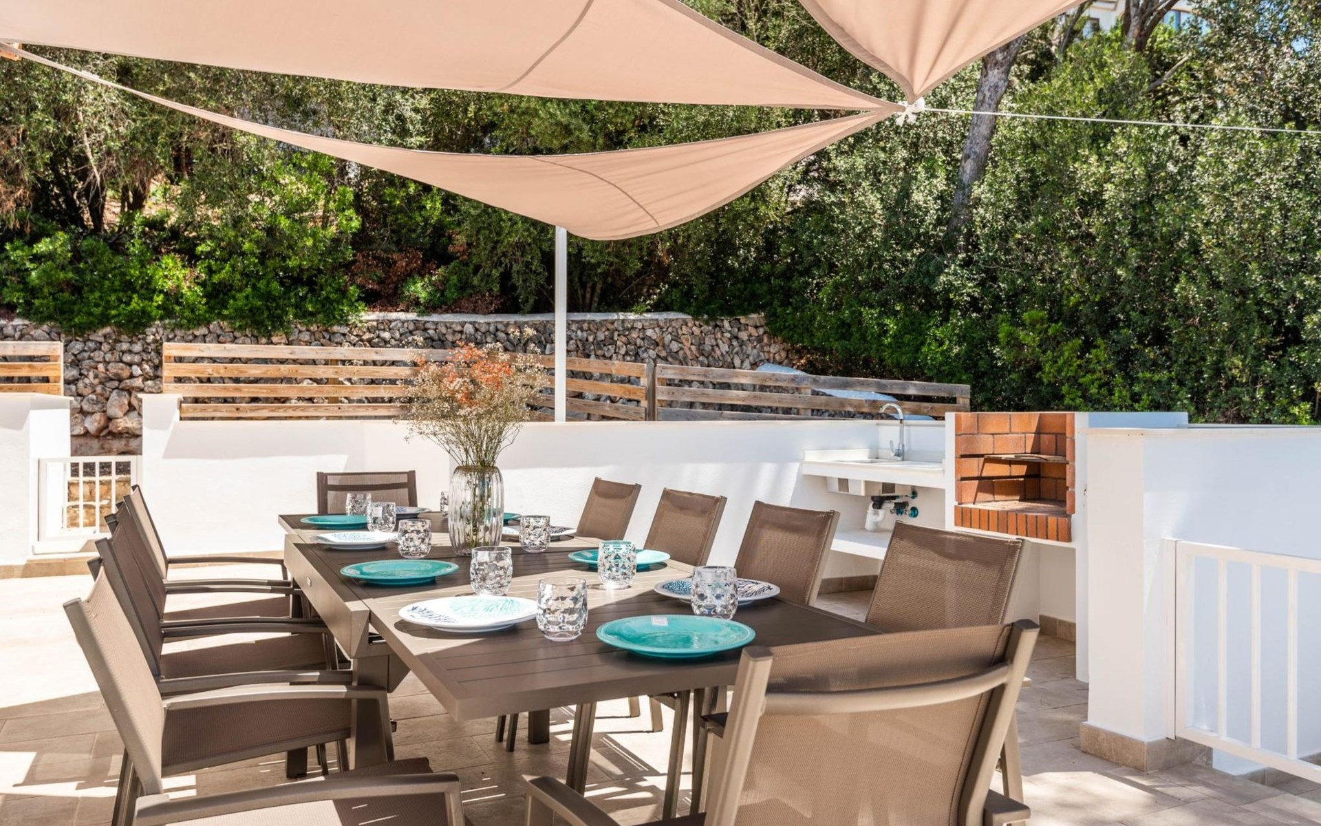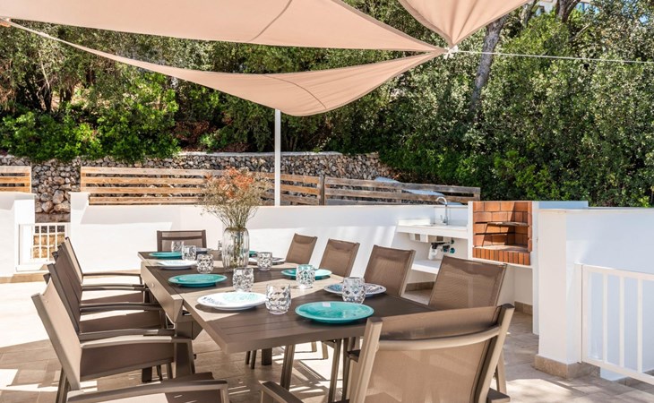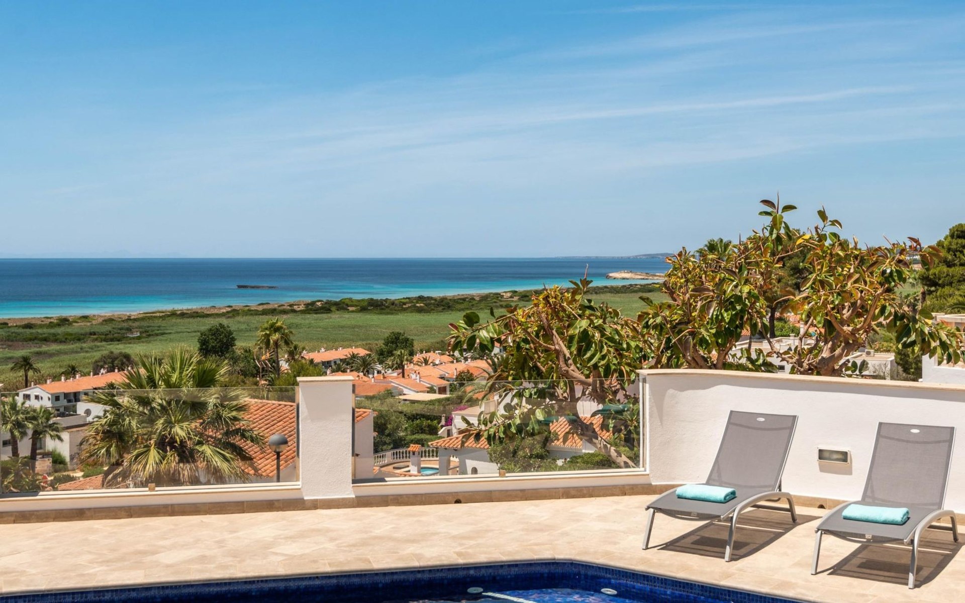 Son Bou: Very modern, beautiful villa "Villa Atalis", renovated in 2022. In the centre of San Jaime, 700 m from the sea. Private: property 782 m2, swimming pool (8 x 4 m, seasonal availability: 20.Apr. - 01.Nov.). Outdoor shower, barbecue. In the house: internet access, WiFi, washing machine. Parking on the premises. Shop 700 m, grocery 800 m, restaurant 600 m, bus stop "Son Bou" 450 m, sandy beach 700 m. Please note: car recommended. Baby equipment on request. Groups of teenagers on request only. Loading and unloading of baggage is possible at the holiday house. Main road 300 m from the property. Airfield 20 km from the property.